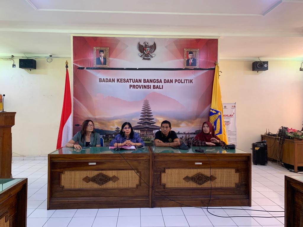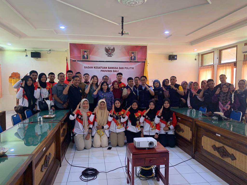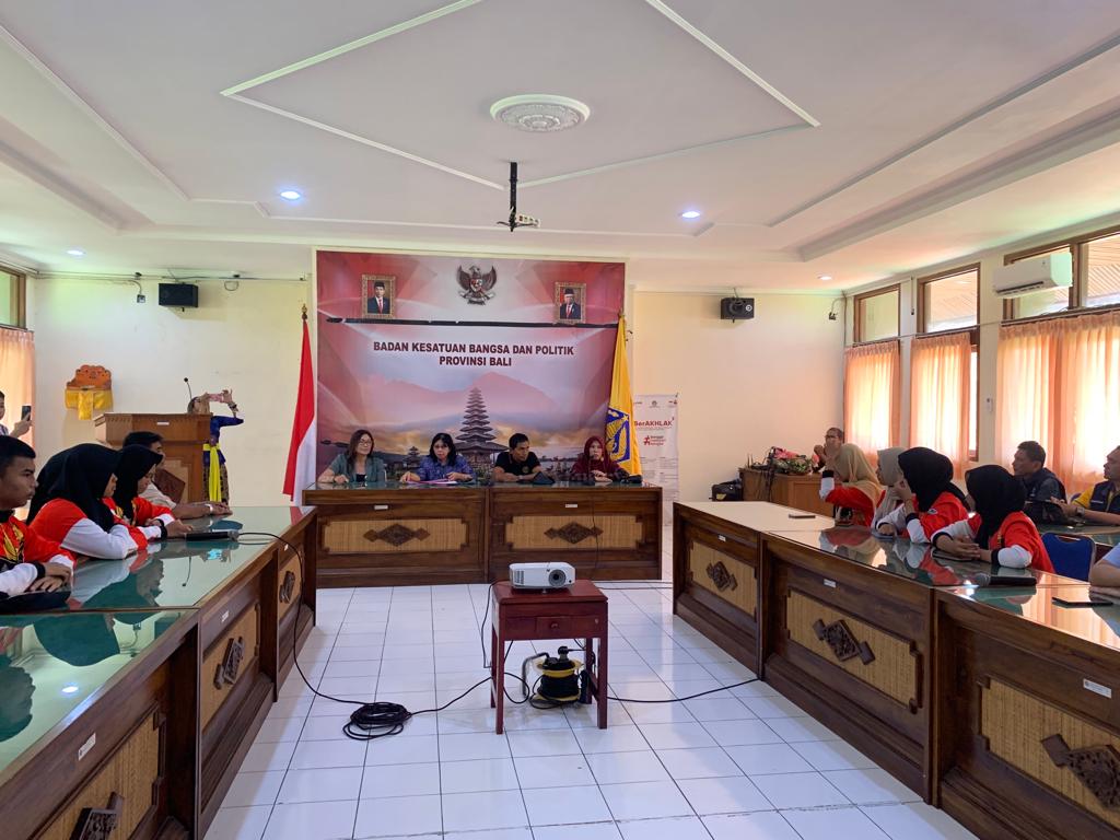 17 November 2023. Badan Kesatuan Bangsa dan Politik (Kesbangpol) Provinsi Bali menerima kunjungan dari Badan Kesbangpol Sulawesi Selatan dan Paskibraka Sulawesi Selatan. Kunjungan diterima oleh Ibu Kepala Bidang Ketahanan Ekonomi, Sosial Budaya, Agama dan Organisasi Kemasyarakatan, Dra. Gusti Nyoman Ramiasih,MH. dan didampingi Analis Kebijakan Ahli Muda, Ni Putu Artani, SE.,M.SI.