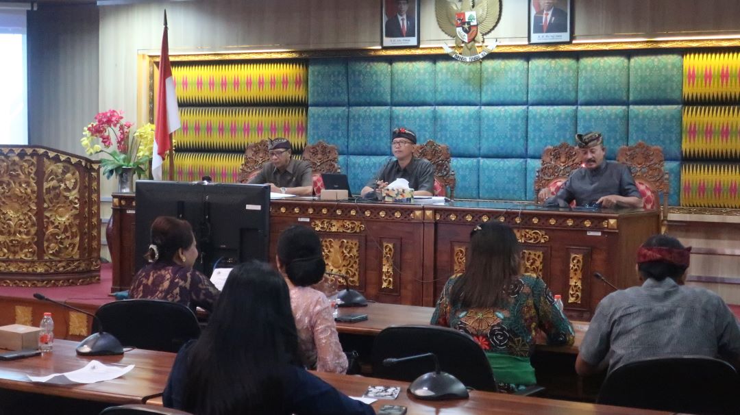 Pertemuan dilakukan melalui diskusi terkait pembahasan RPJPD Provinsi Bali di tingkat Pansus DPRD Provinsi Bali, substansi apa saja yang mendapat penekanan dalam pembahasannya, sinkronisasi dengan Perda Haluan Pembangunan Bali Masa Depan, 100 Tahun Bali Era Baru 2025-2125, serta terkait baseline data, penentuan target capaian lima tahunan, hasil kajian Badan Riset dan Inovasi Daerah, prioritas dan kebijakan pembangunan daerah Provinsi yang sebaiknya diakomodir pada RPJPD Kabupaten.