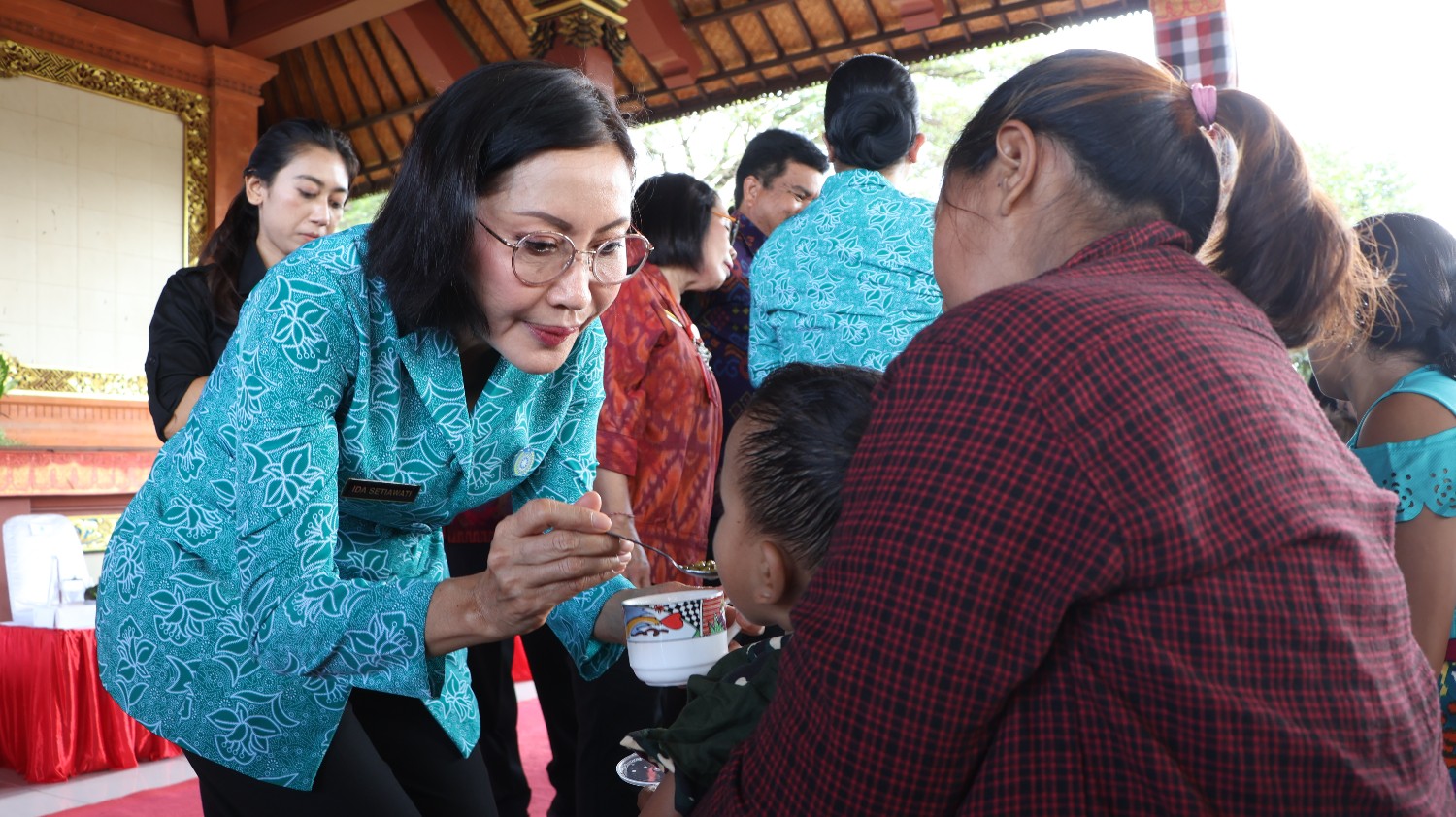 Ketua Tim Penggerak PKK Kabupaten Tabanan Ny. Rai Wahyuni Sanjaya menyampaikan Kabupaten Tabanan yang mampu meraih predikat Duta Orangtua Hebat di tingkat nasional melalui program Semara Ratih mampu menurunkan kasus stunting dari 8,2% (pada tahun 2022) menjadi 5% (pada tahun 2023) bahkan tahun 2024 ini mencatat kasus stunting di Tabanan menjadi 3,23%.