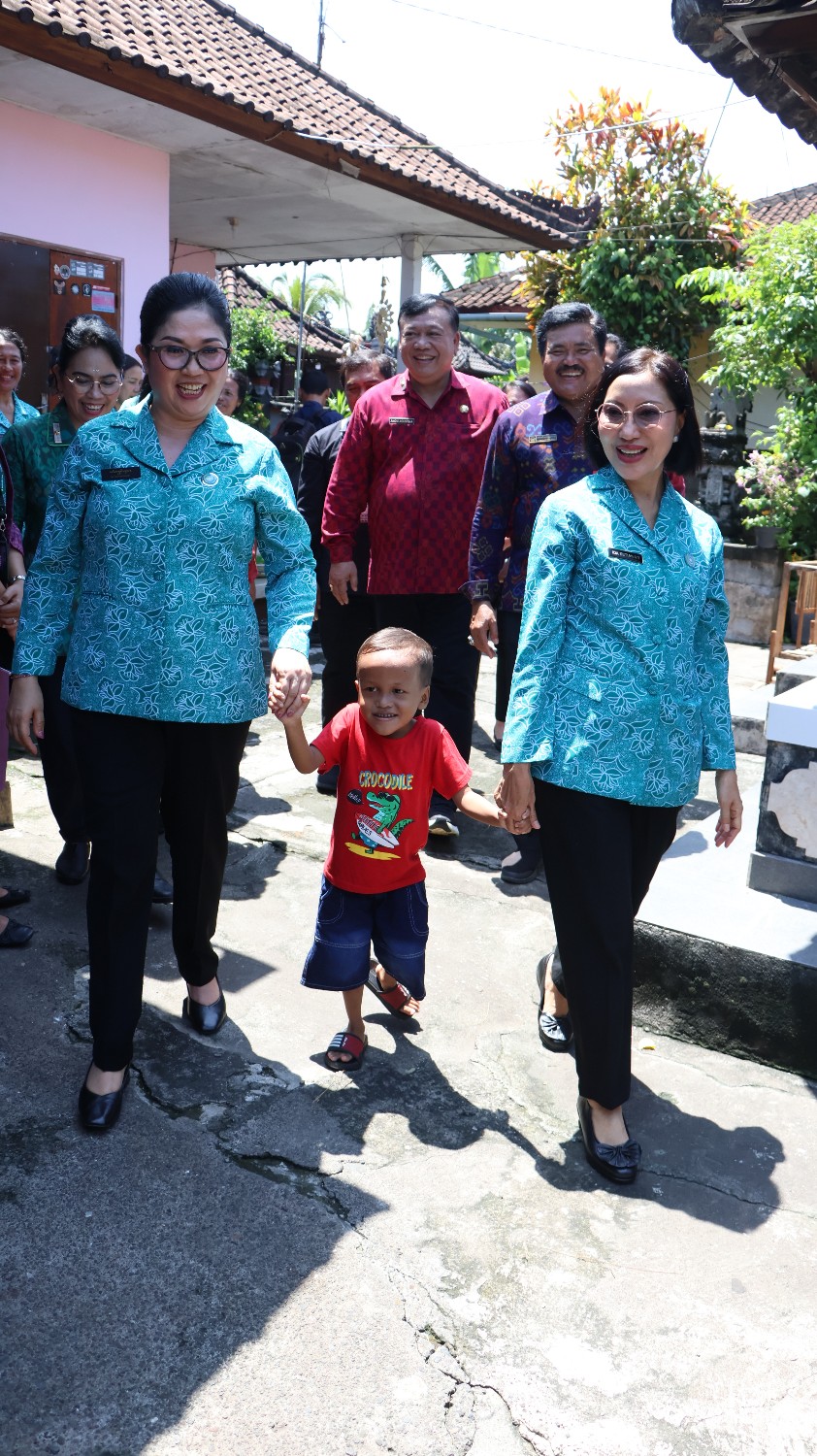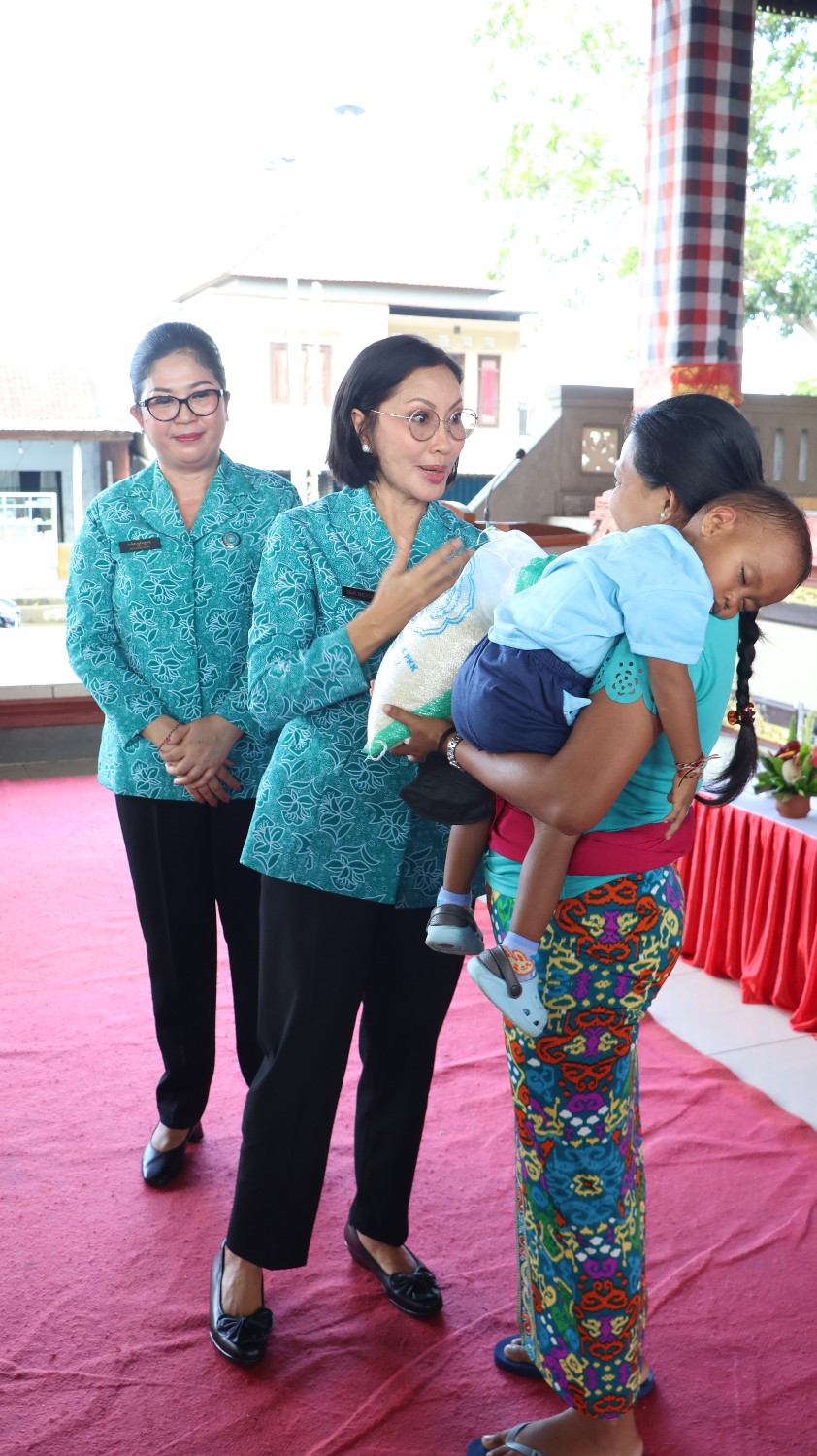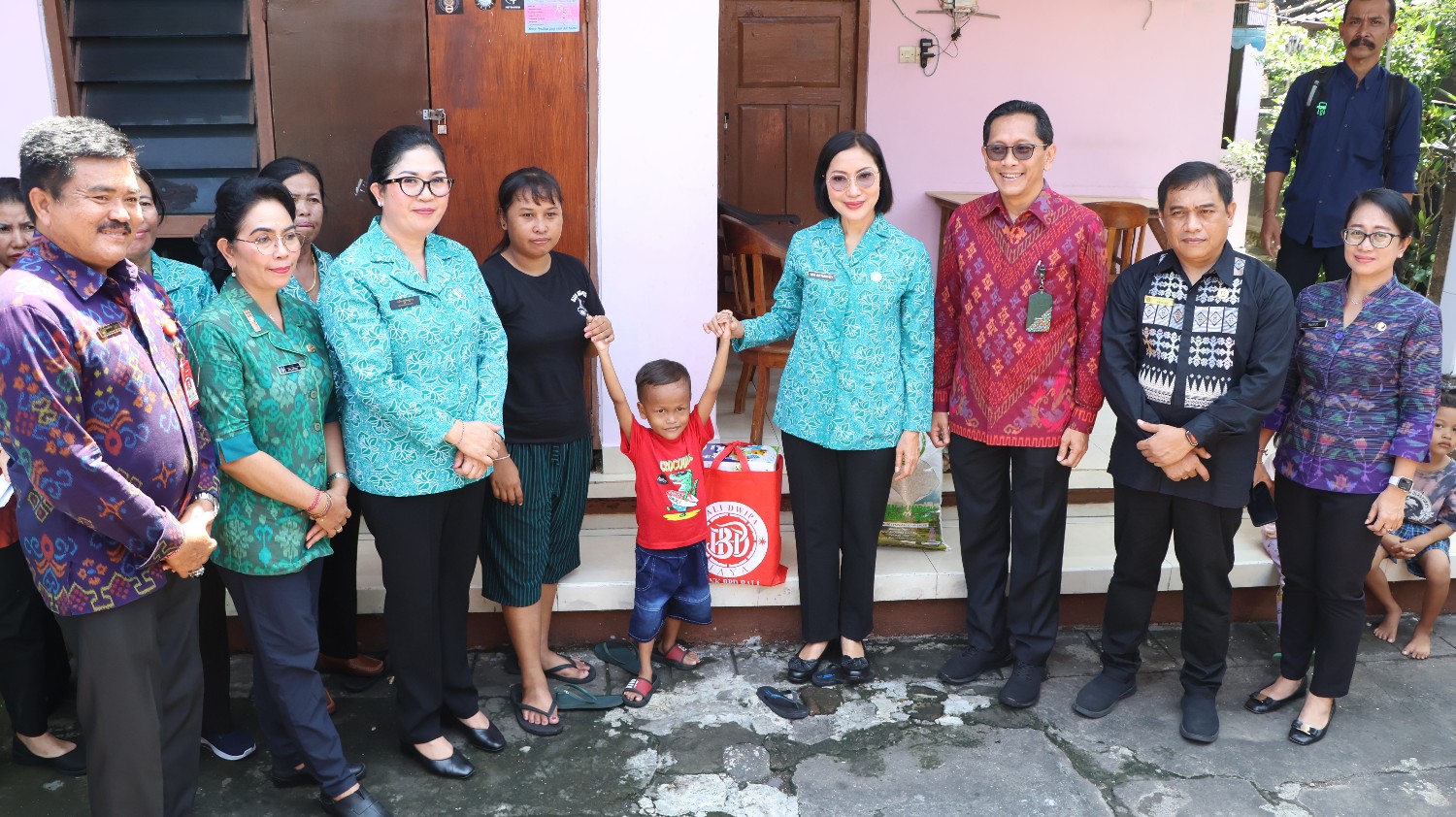 Setelah menyerahkan bantuan kepada masyarakat, Ny. drg. Ida Mahendra Jaya dan rombongan juga mendatangi langsung 4 balita terindikasi stunting, yakni G.A Bima Kusuma Putra (4), Rania Renita Putri (2), Made Satria Putra (3), dan I Putu Gede Bajra Suastika (4).
