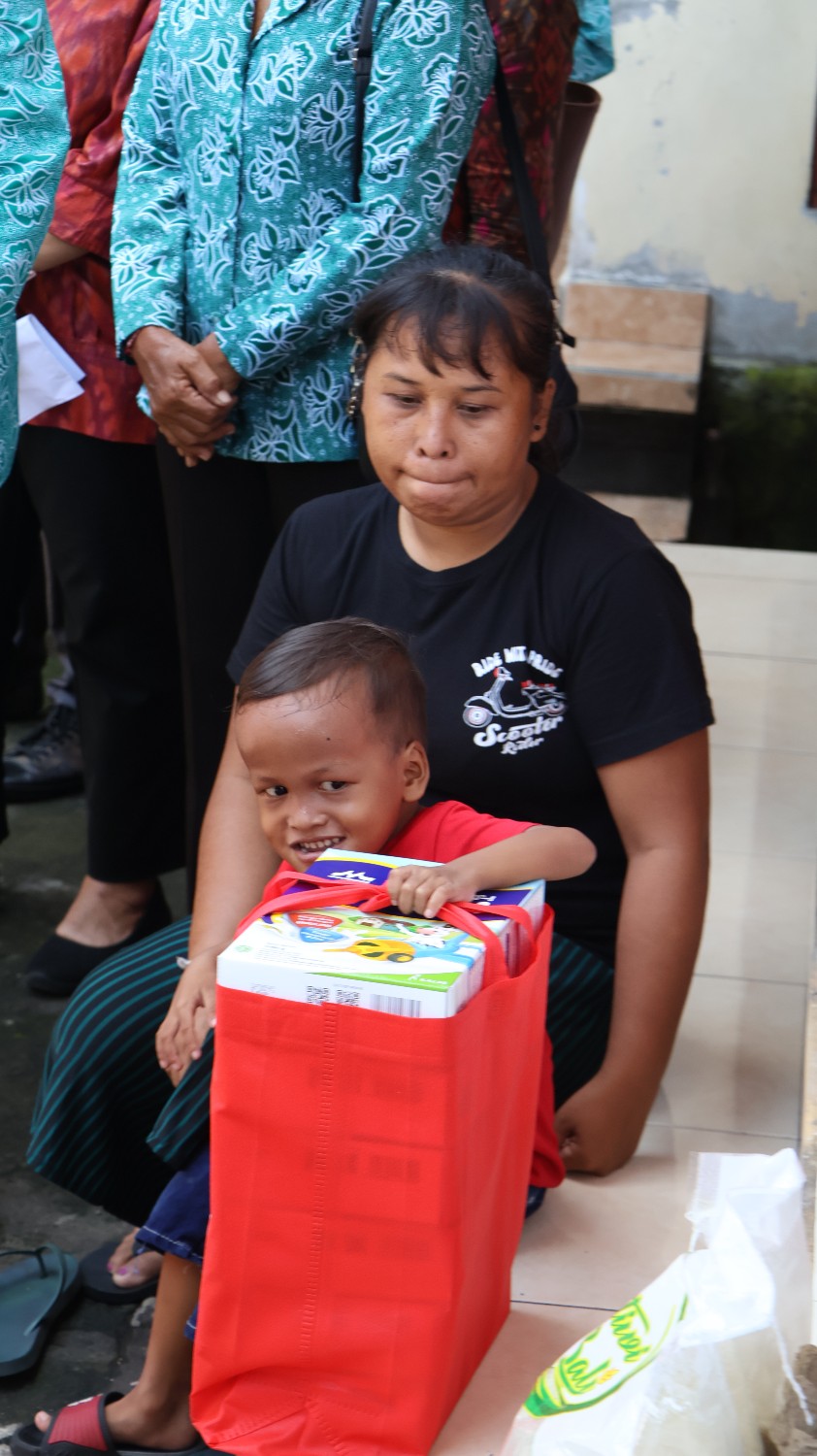 Dilakukan juga penyerahan 10 paket bantuan kebutuhan Balita (yang berisi popok sekali pakai, susu, snack bayi dan minyak urut bayi) oleh Kepala Dinas Sosial, Pemberdayaan Perempuan dan Perlindungan Anak Provinsi Bali dan