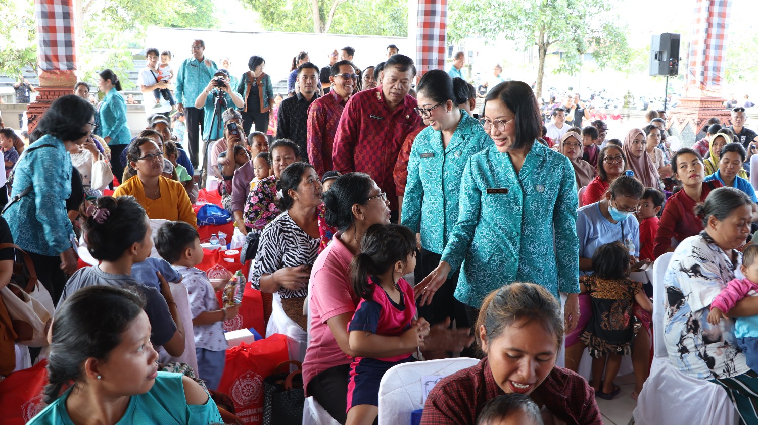 TABANAN - Serahkan bantuan CSR dari PT. Bank BPD Bali dan Perangkat Daerah terkait, Penjabat (Pj.) Ketua Tim Penggerak PKK Provinsi Bali Ny. drg. Ida Mahendra Jaya mengajak kader PKK sukseskan program pengentasan stunting sebagai salah satu upaya membangun generasi sehat, kuat, cerdas dan berkualitas. Hal ini disampaikannya pada acara kunjungan kerja Tim Penggerak PKK Provinsi Bali yang dirangkai dalam kegiatan "Berkunjung dan Berbagi", yang dilaksanakan di Wantilan Banjar Bedha, Desa Bongan, Tabanan, Jumat (22/3).