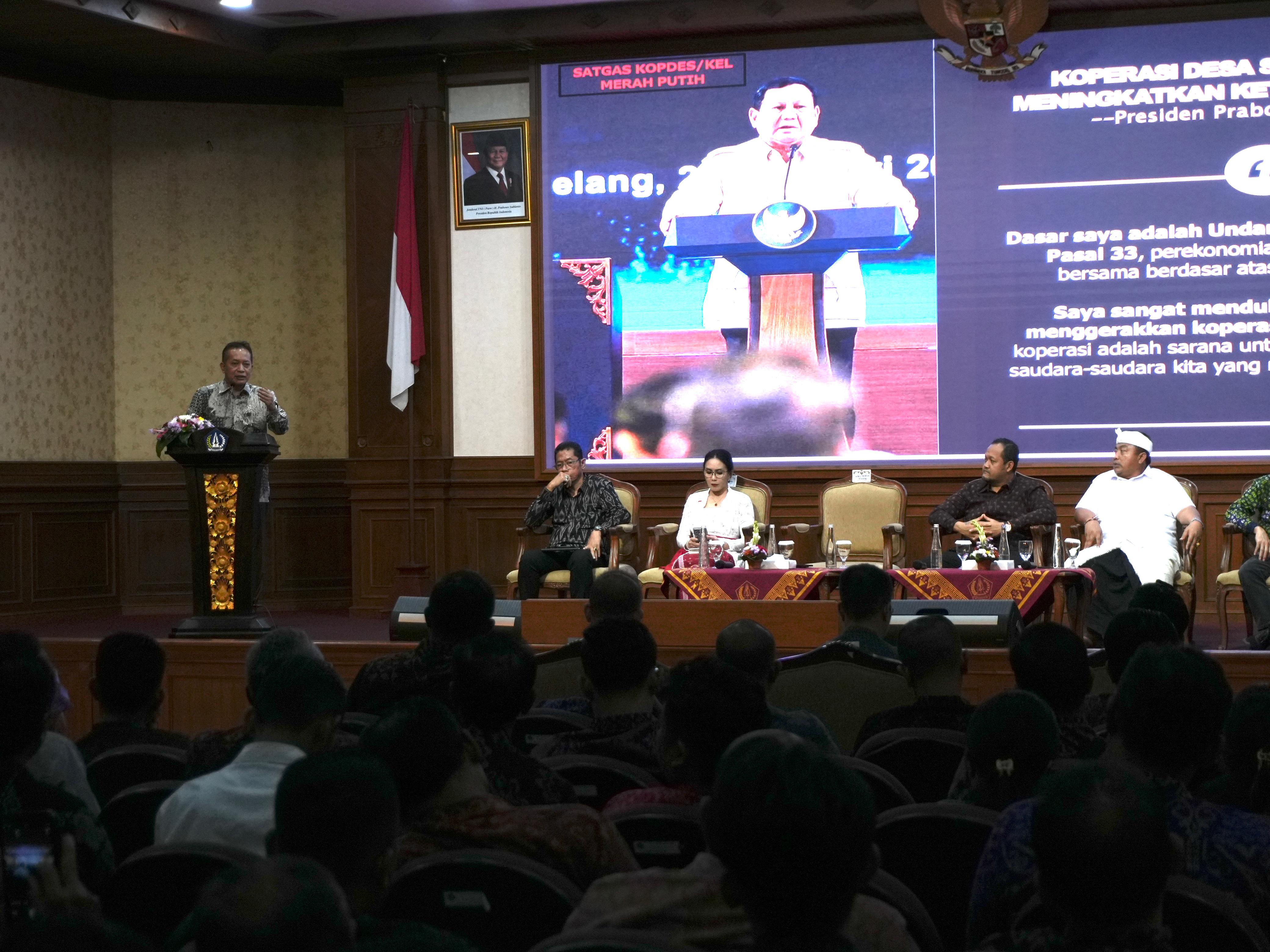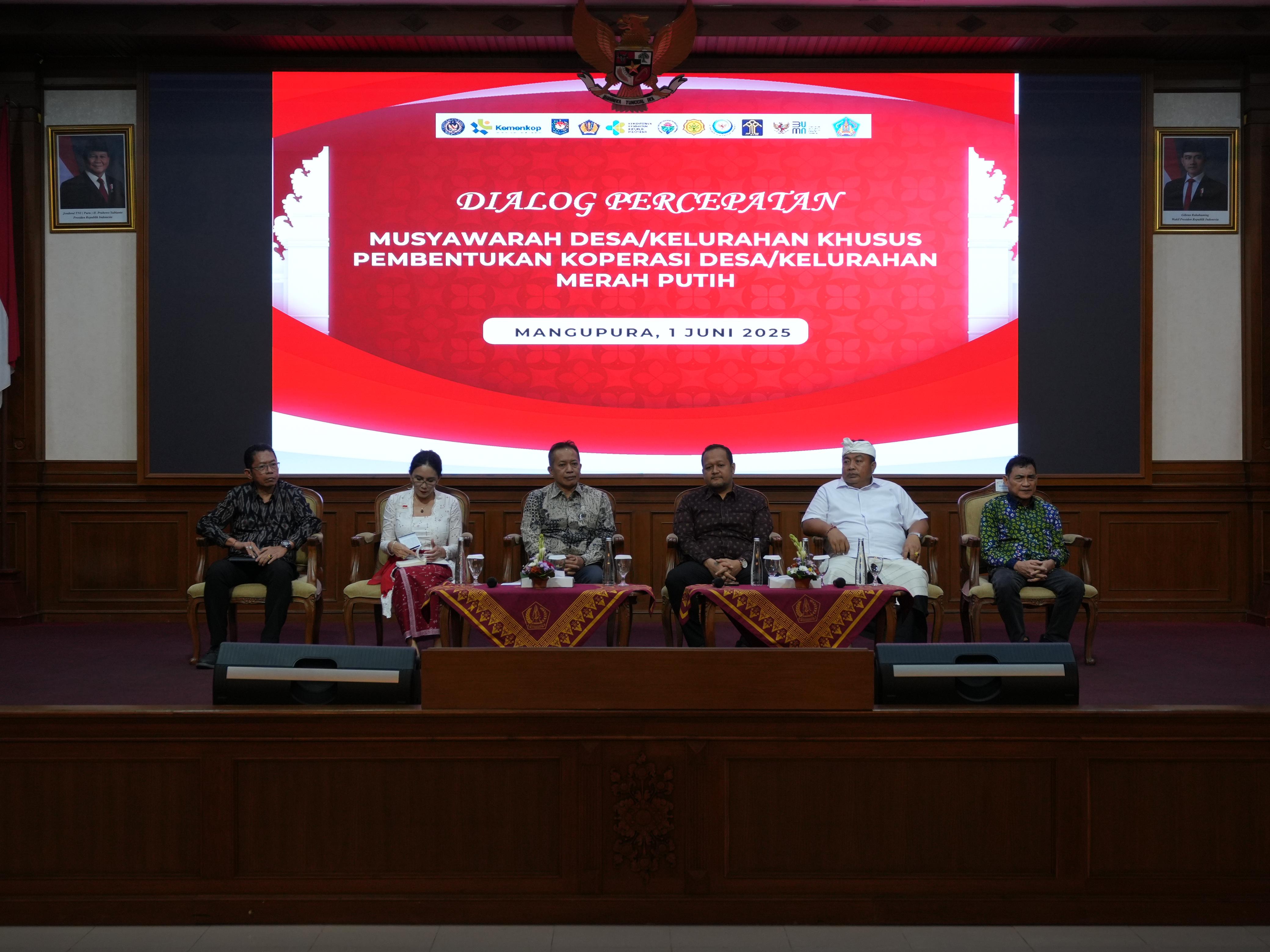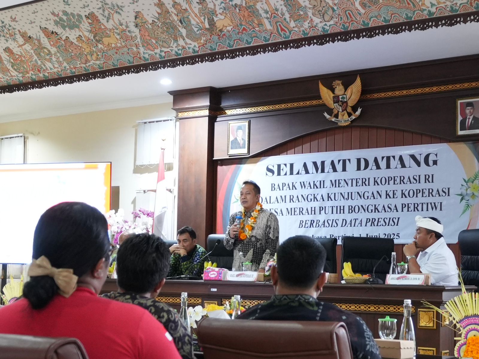 Acara dialog yang juga dihadiri oleh Wakil Bupati Badung, Direktur Utama LPDB KUMKM, Kepala Dinas Koperasi dan UKM Provinsi Bali, Sekretaris Daerah Kabupaten Badung, Kepala Dinas PMD Dukcapil Provinsi Bali, serta Kepala Desa dan Lurah di Kabupaten Badung ini juga dirangkaikan dengan peninjauan ke Koperasi Desa di Bongkasa Pertiwi yang dijadikan sebagai Koperasi Desa Merah Putih Percontohan.