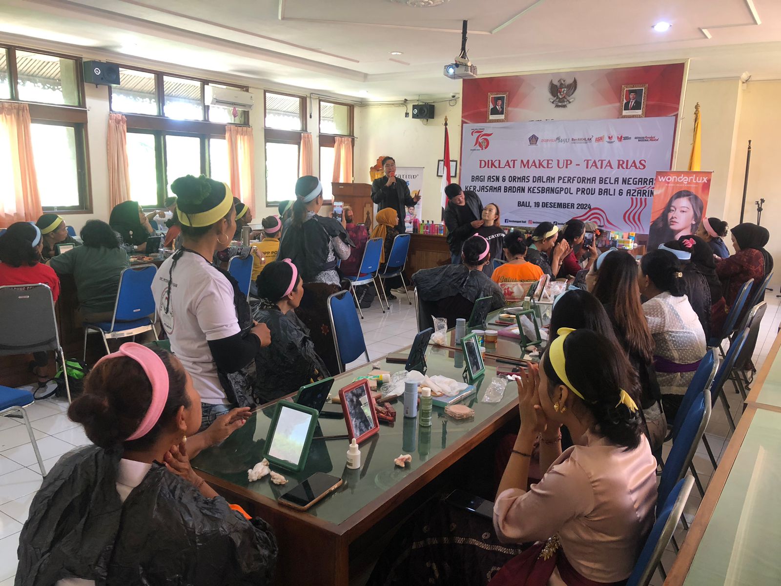 Diklat teknis ini bersifat gratis, tidak ada pemungutan biaya apapun, dengan diikuti 50 orang peserta dari pegawai perempuan Badan Kesbangpol Bali, perwakilan organisasi kemasyarakatan, Mahasiswi Universitas Warmadewa dan Pramuka Kwarda Bali. Peserta tampak antusias karena di pelatihan ini juga langsung dilaksanakan praktek make up perorangan.
