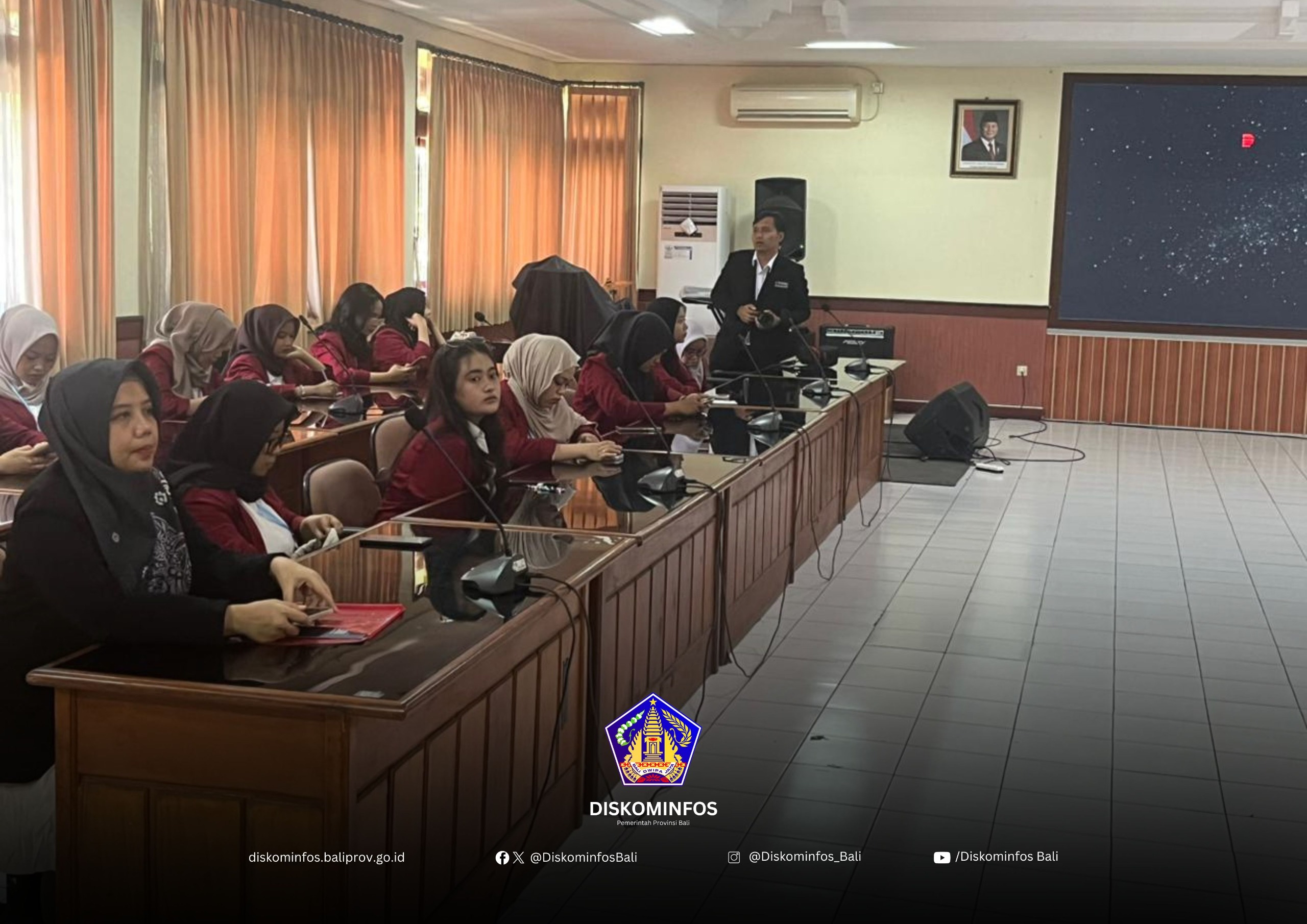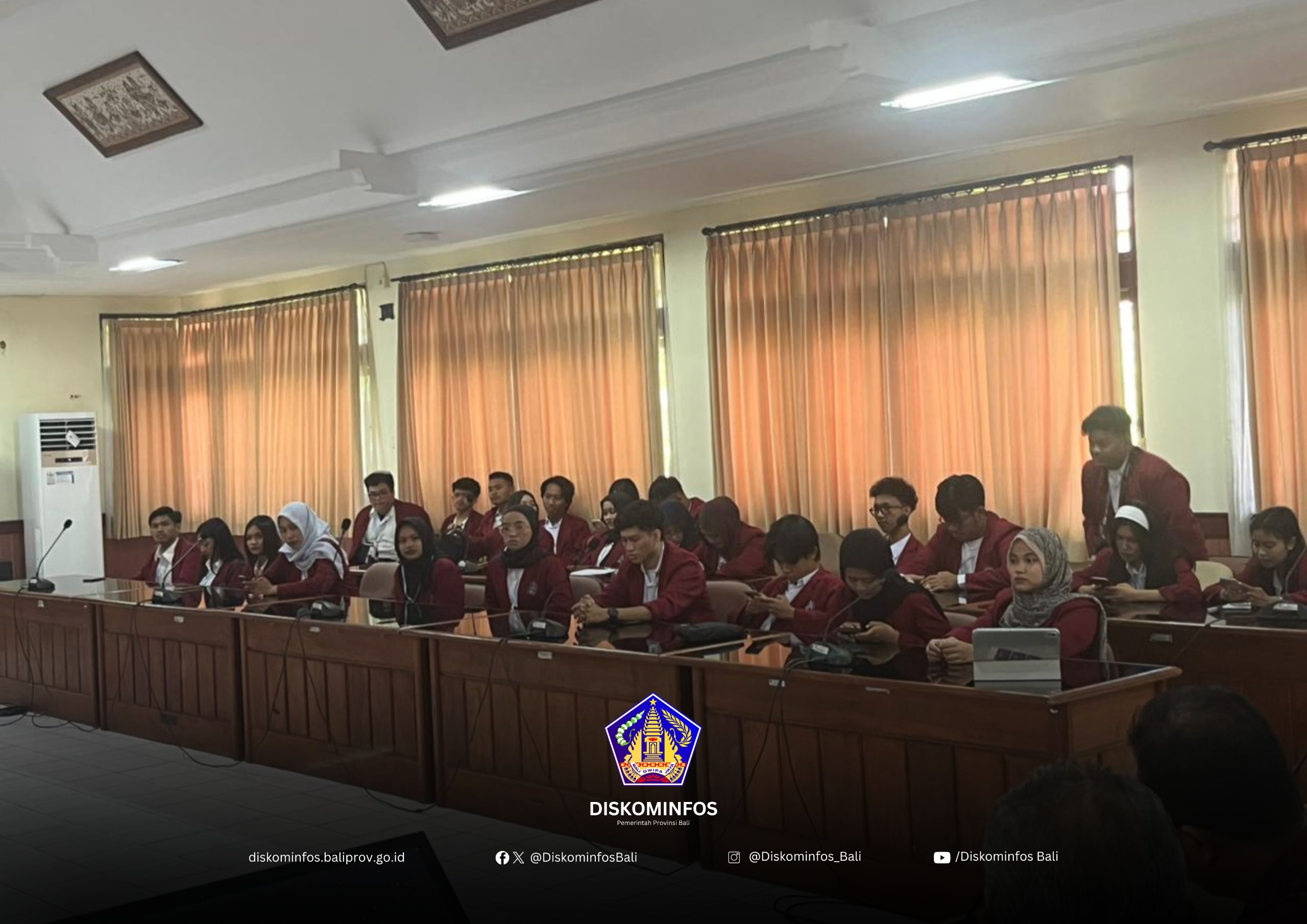 Denpasar, 4 November 2025 — Dinas Kominfos Provinsi Bali menerima kunjungan dari Fakultas Ilmu Sosial dan Ilmu Politik (FISIP) Universitas Slamet Riyadi. Kunjungan ini bertujuan untuk memperluas wawasan mahasiswa mengenai penerapan ilmu komunikasi di instansi pemerintahan yang relevan dengan bidang studi mereka.