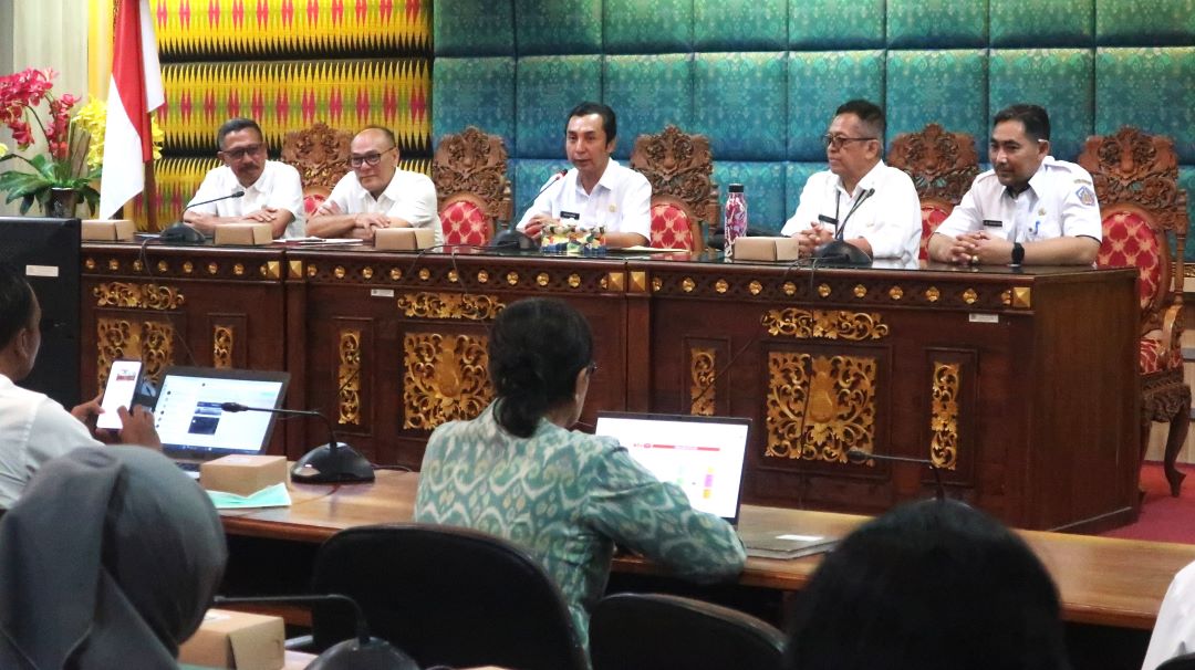 Denpasar, (31/7) — Dinas Komunikasi, Informatika, dan Statistik (Diskominfos) Provinsi Bali melalui Bidang Teknologi Informatika menggelar rapat evaluasi terkait progres pembangunan bangunan pendukung Menara Turyapada. Rapat berlangsung di Pusat Kendali Pemerintah Provinsi Bali dan dipimpin oleh Sekretaris Diskominfos, Gusti Ngurah Kama Wijaya, didampingi oleh Kepala Bidang Teknologi Informatika, I Gede Agus Arjawa Tangkas, dan Kepala UPTD Turyapada Tower, Novandika Dwipayana.