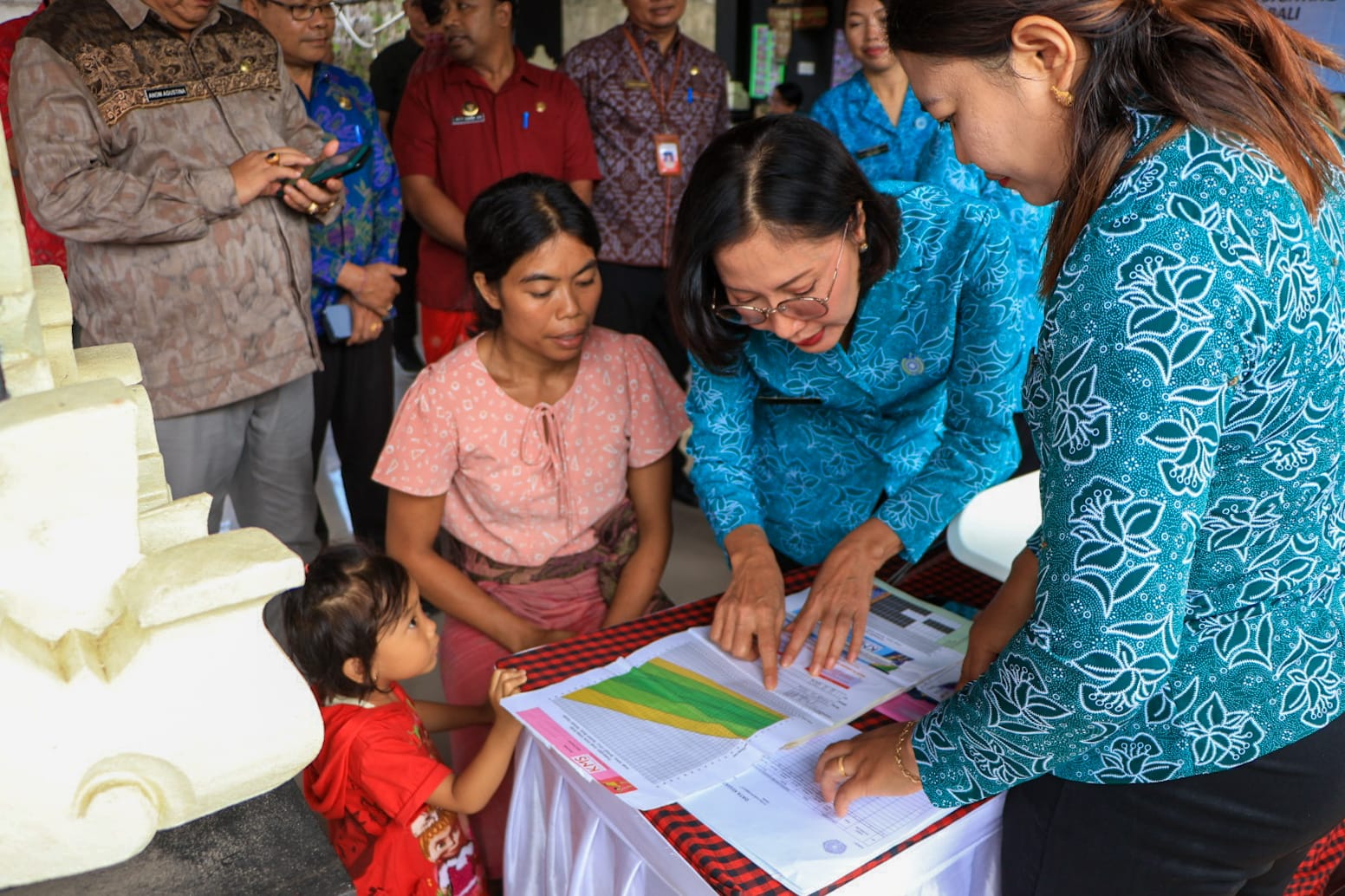 Pada kegiatan berkunjung dan berbagi kali ini, Ida Mahendra juga berkesempatan melihat layanan Posyandu Amerta Usadha Banjar Tumingal. Didampingi Ketua TP PKK Kabupaten Karangasem Ny. Nuriasih Gede Dana, Ida Mahendra mencermati perkembangan anak balita melalui KMS (Kartu Menuju Sehat). Ia pun langsung memberikan edukasi menakala mendapati anak balita dengan tinggi atau berat badan yang belum sesuai dengan usia mereka. “Tolong diperhatikan ya ibu, asupan gizinya dijaga,” ucapnya. Lebih dari itu, ia minta para orang tua membaca dan memahami pedoman tumbuh kembang anak yang sudah sangat jelas dimuat pada KMS.