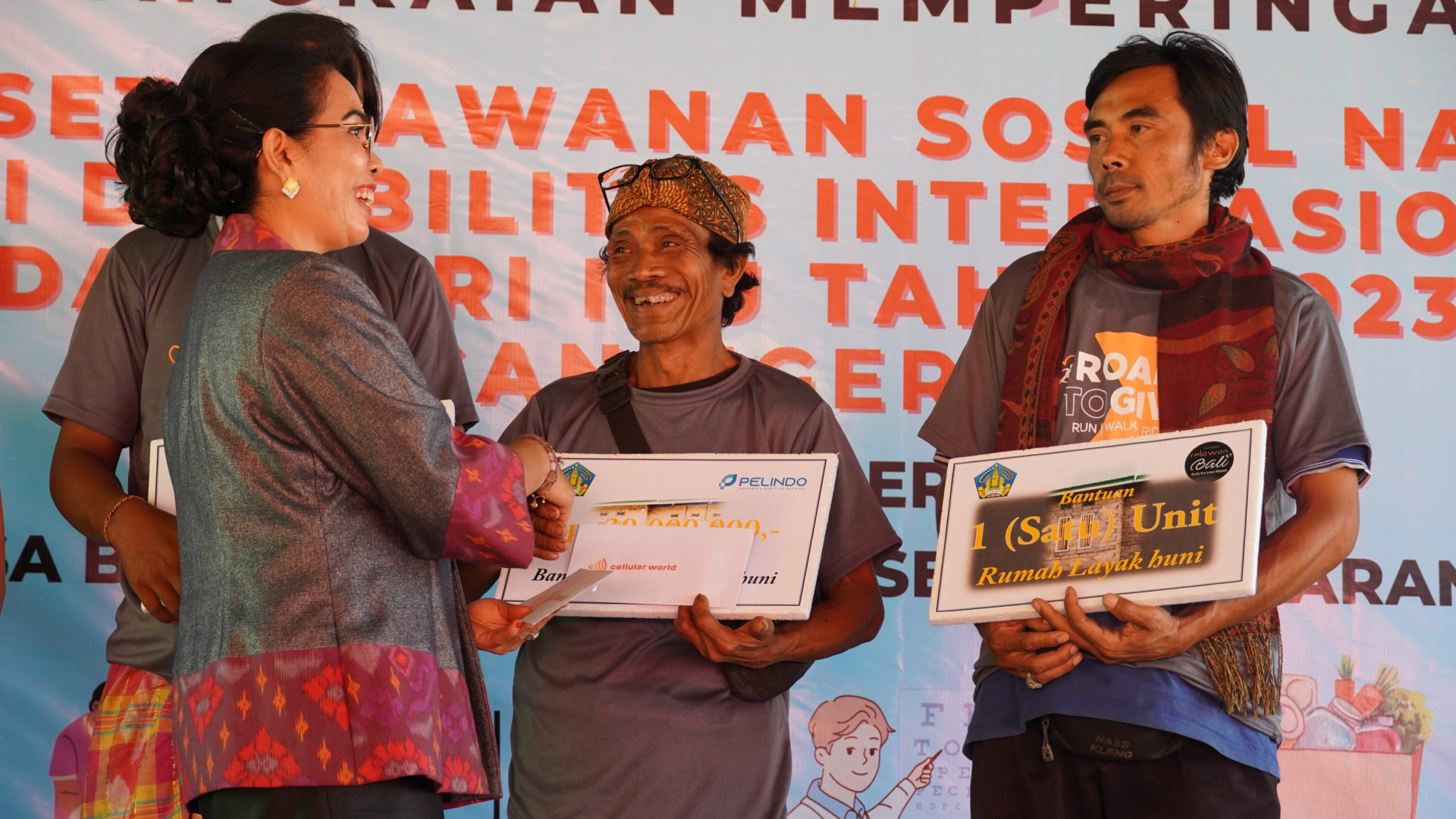 Aryani menyebut, dalam kesempatan tersebut untuk pemenuhan kebutuhan dasar atau sembako diserahkan 13 paket pada lansia miskin serta penyaluran bantuan lembaga kesejahteraan untuk anak berupa 180 paket makanan. Juga pembagian sembako pada 260 KK miskin, bantuan kursi roda pada penyandang disabilitas dan anak yatim piatu berisiko stunting juga 4 bedah rumah bagi KK miskin. “Selain itu pada KK miskin ekstrim juga diberikan 1 ekor bibit sapi serta modal usaha 1 juta rupiah. Selain itu juga diselenggarakan pemeriksaan mata dan kacamata gratis,” tambahnya.