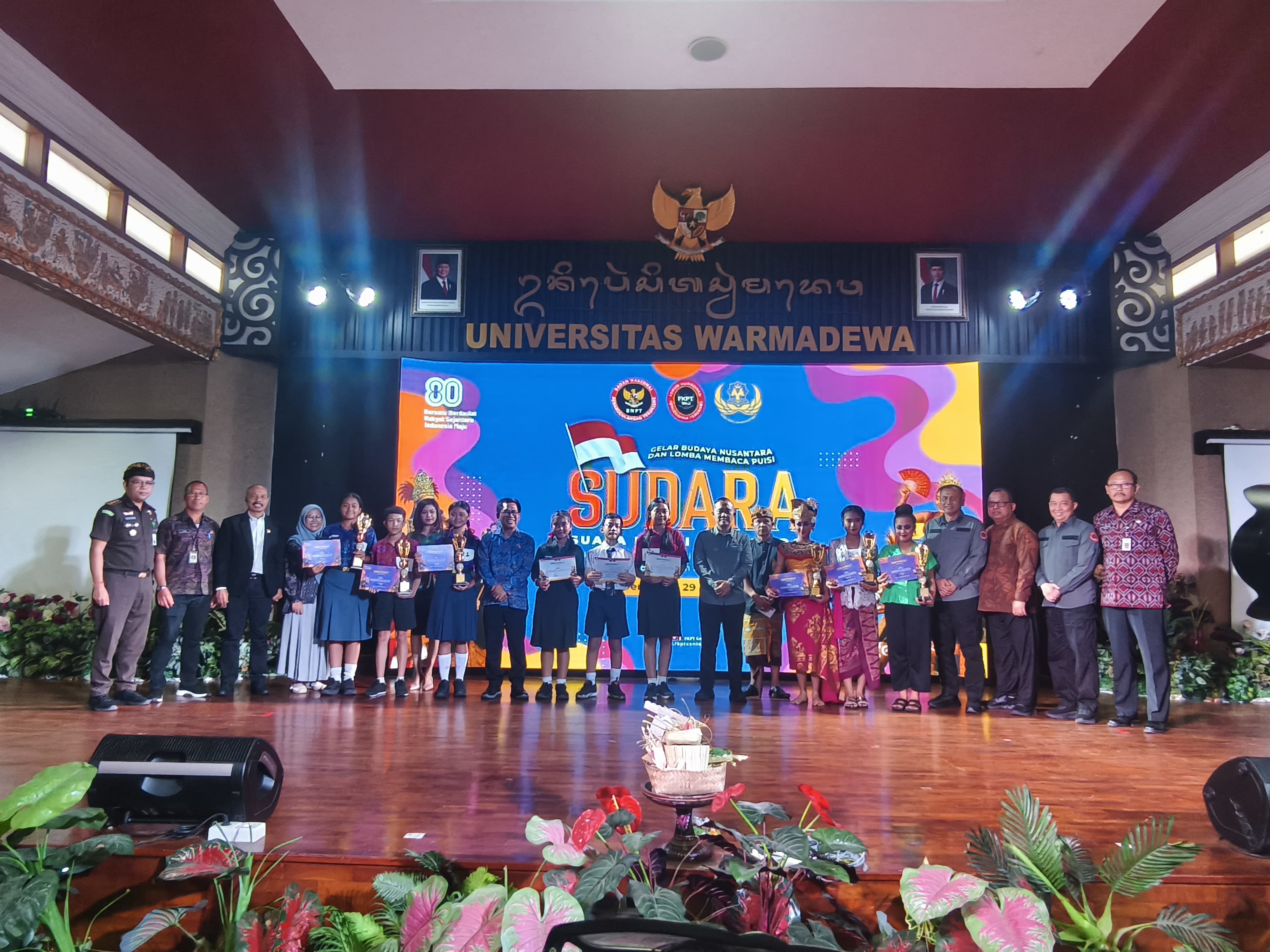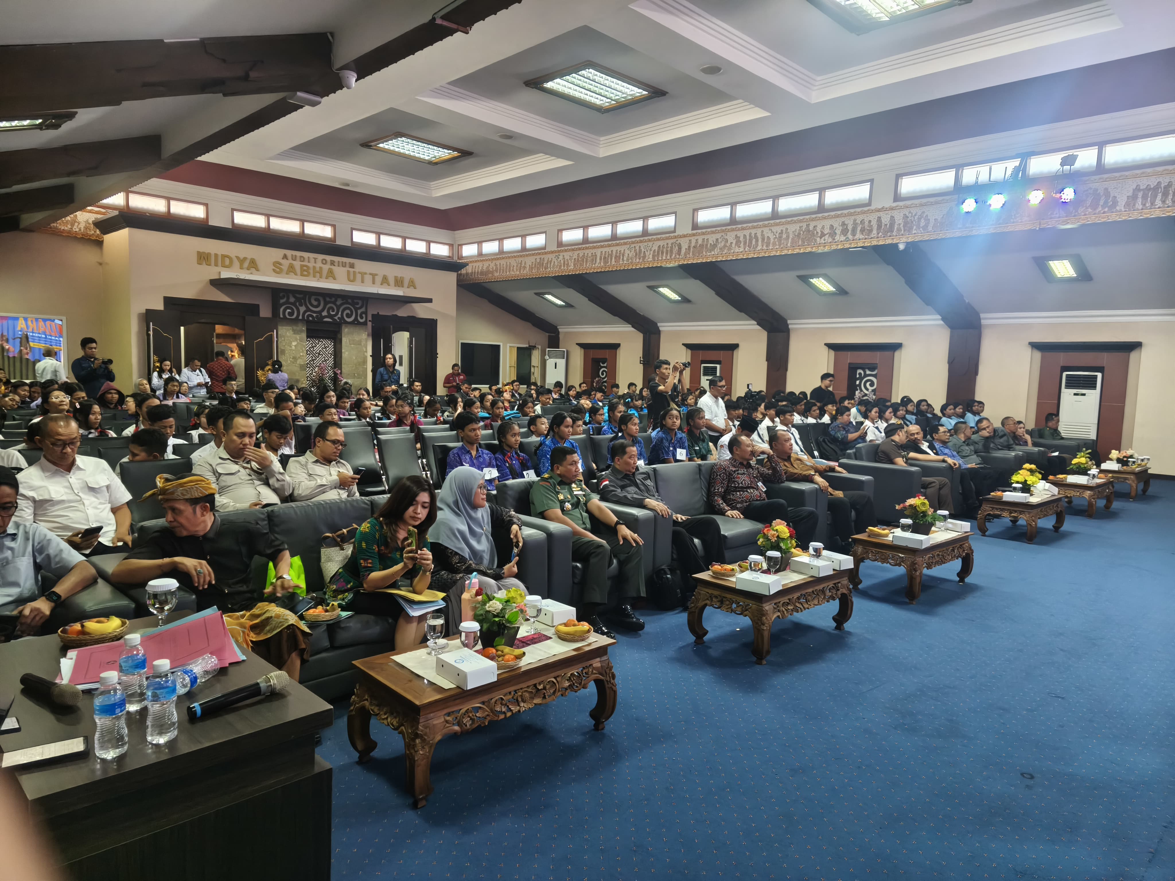 Kepala Badan Kesatuan Bangsa dan Politik Provinsi Bali, Gede Suralaga bacakan sambutan Gubernur Bali pada Kegiatan Suara Damai Nusantara (Sudara) Tahun 2025 bertempat di Auditorium Universitas Warmadewa, Selasa 29 Juli 2025. Kegiatan yang dilaksanakan oleh Badan Nasional Penanggulangan Terorisme (BNPT) RI bekerja sama dengan Forum Koordinasi Pencegahan Terorisme (FKPT) Provinsi Bali ini mengajak pelajar SMP, SMA/SMK sederajat dan Mahasiswa/Mahasiswi dalam edukasi, seni budaya, dan literasi digital.