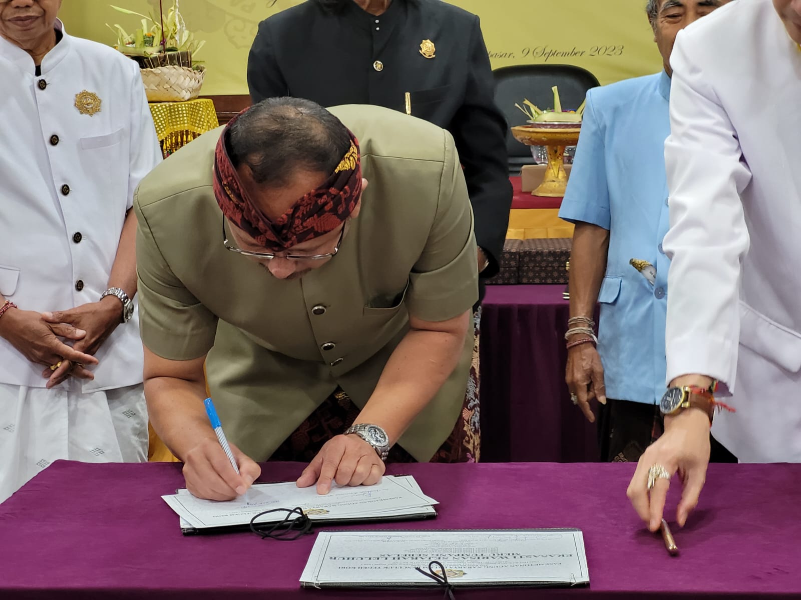 Denpasar - Pj. Gubernur Bali, S.M. Mahendra Jaya diwakili Kepala Badan Kesbangpol Provinsi Bali, I Gst. Ngr. Wiryanata membuka secara resmi Pesamuan Agung XII Pasemetonan Agung Nararya Dalem Benculuk Tegeh Kori, Sabtu (9/9). Pesamuan yg dilaksanakan di Gedung Keuangan Negara, Renon, Denpasar tersebut mengambil tema “Melalui Pesamuan Agung XII Kita Tingkatkan Persatuan dan Kesatuan Demi Kejayaan Nusantara”.
