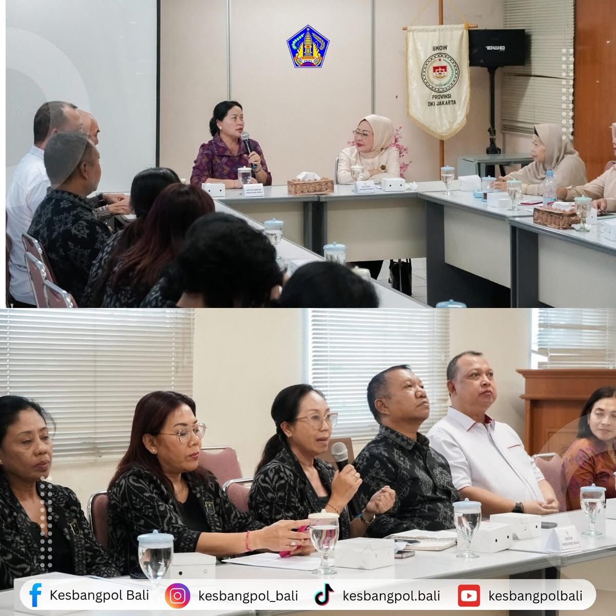 Jakarta - Dalam rangka Sinergi Kelembagaan dan Penguatan Peran Organisasi Perempuan di Tingkat Provinsi, Ketua BKOW Provinsi Bali, Ny. Seniasih Giriprasta bersama anggota didampingi Kepala Badan Kesbangpol Provinsi Bali melaksanakan koordinasi dan konsultasi ke Kongres Wanita Indonesia, BKOW DKI Jakarta serta Ditjen Politik dan Pemerintahan Umum Kemendagri.