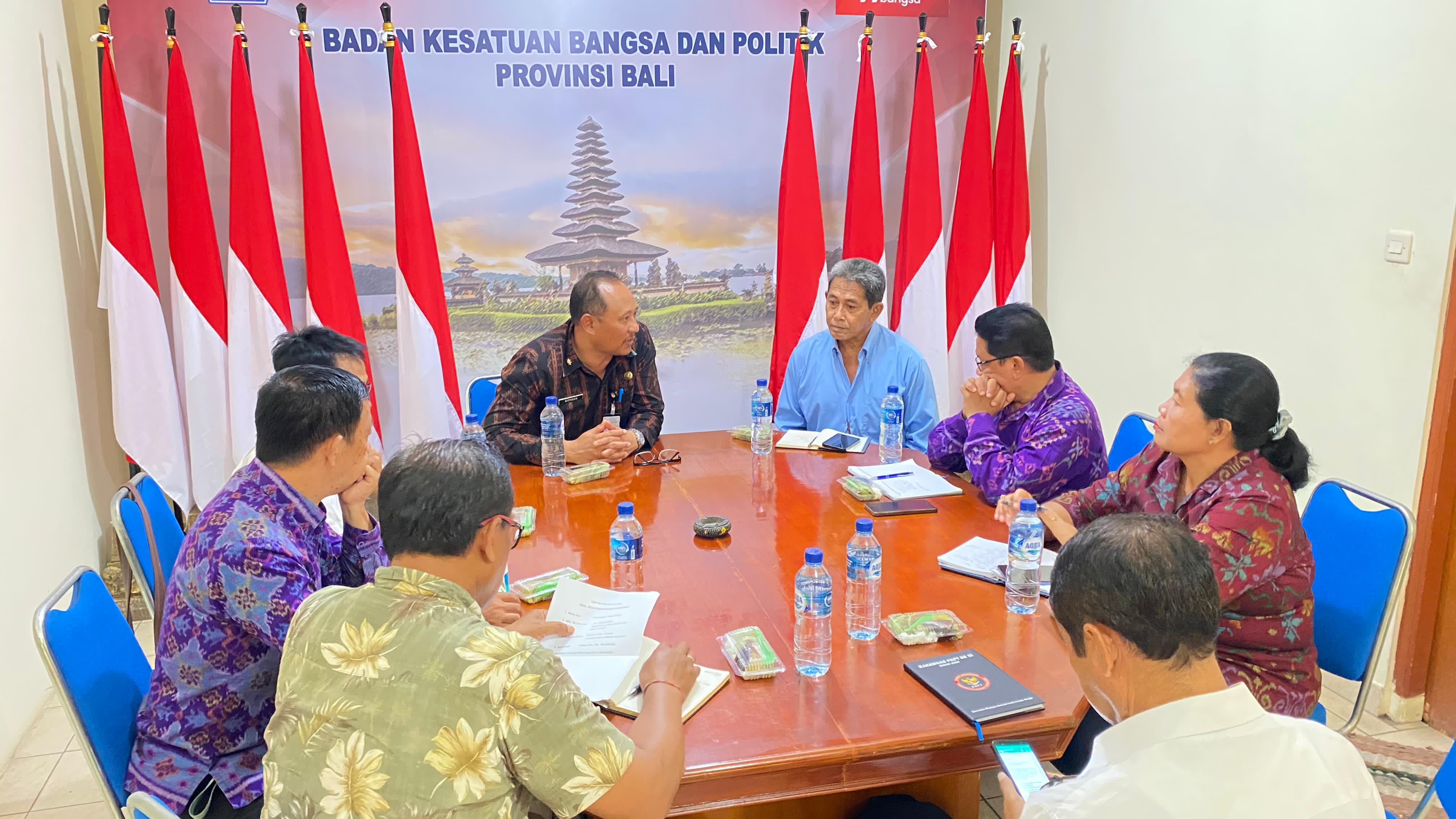Selasa, 16 April 2024. Kepala Badan Kesatuan Bangsa dan Politik (Kesbangpol) Provinsi Bali sebagai Ketua Forum Koordinasi Pencegahan Terorisme (FKPT) Bali, Drs. I Gusti Ngurah Wiryanata, M.Si. pimpin rapat FKPT Bali dalam rangka persiapan Monitoring dan Evaluasi Badan Nasional Penanggulangan Terorisme (BNPT) RI. Rapat dihadiri segenap pengurus FKPT Bali bertempat di ruang rapat timur Badan Kesbangpol Bali, membahas kegiatan-kegiatan yang telah terlaksana di tahun 2023 serta kendala kendala dilapangan yang dihadapi untuk disampaikan ke BNPT RI.