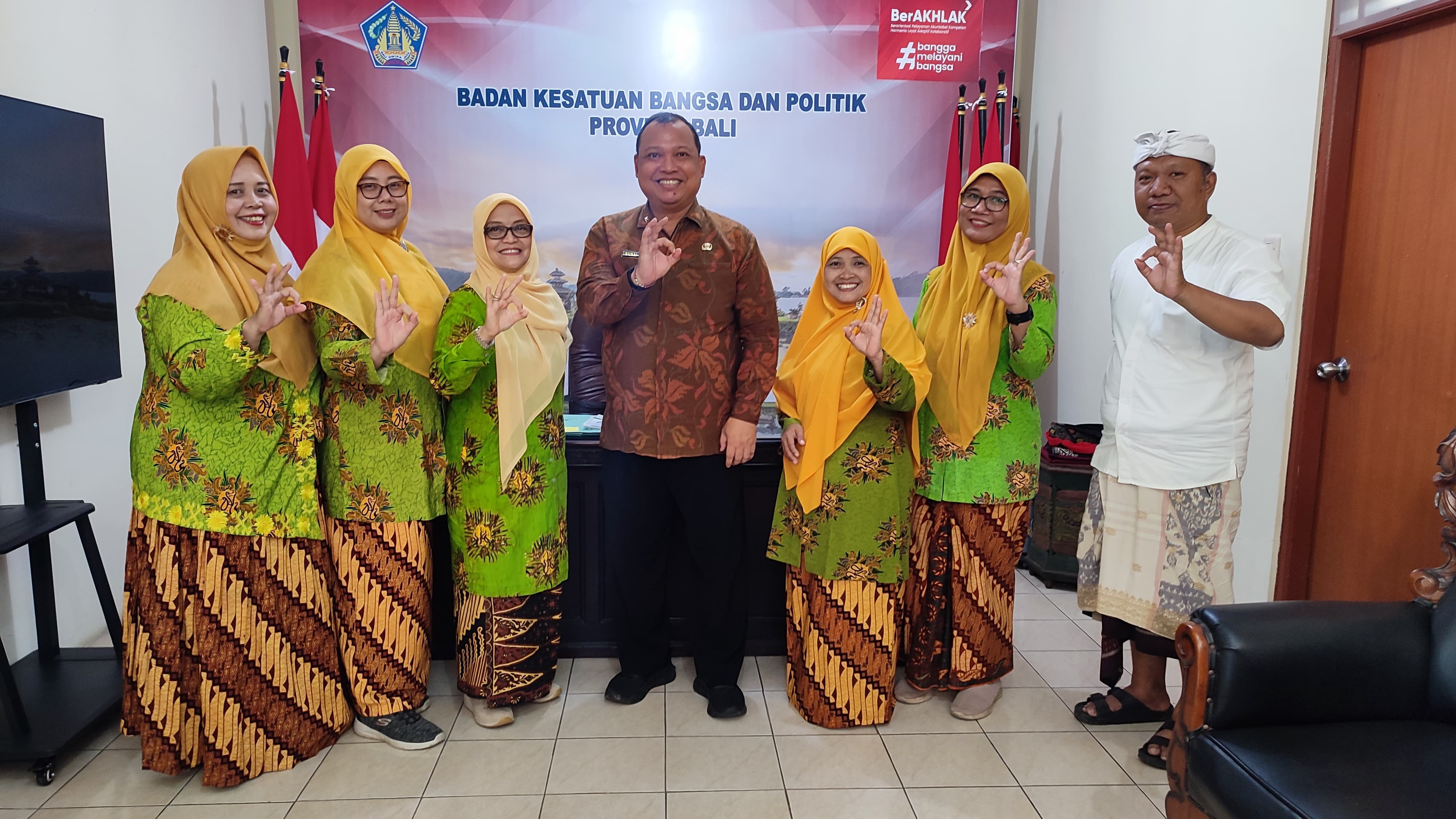 Denpasar, 16 Juni 2025, Kepala Badan Kesatuan Bangsa dan Politik (Kaban Kesbangpol) Provinsi Bali, Gede Suralaga menerima audensi lembaga Aisyiyah ( perempuan Muhammadiyah) bertempat di Rapat kecil Badan Kesbangpol Bali dengan didampingi Kepala Bidang Ketahanan Ekonomi, Sosial Budaya, Agama dan Organisasi Kemasyarakatan, Gede Adhi Tiana Putra. Dalam audensi ini Lembaga Aisyiyah menyampaikan akan melaksanakan kegiatan FGD dibulan Agustus dan berkeinginan mengundang Ibu Gubernur beserta Kesbangpol Bali untuk hadir pada kegiatan nanti. Lembaga ini juga melaporkan telah melaksanakan edukasi di LP perempuan Kerobokan dari PSBS dan pengelolaan sampah plastik berdaya guna, serta mendukung PSBS tempat ibadah dengan 3 tempat percontohan dan pergerakan sampai level desa baik perekonomian, lingkungan maupun bencana.