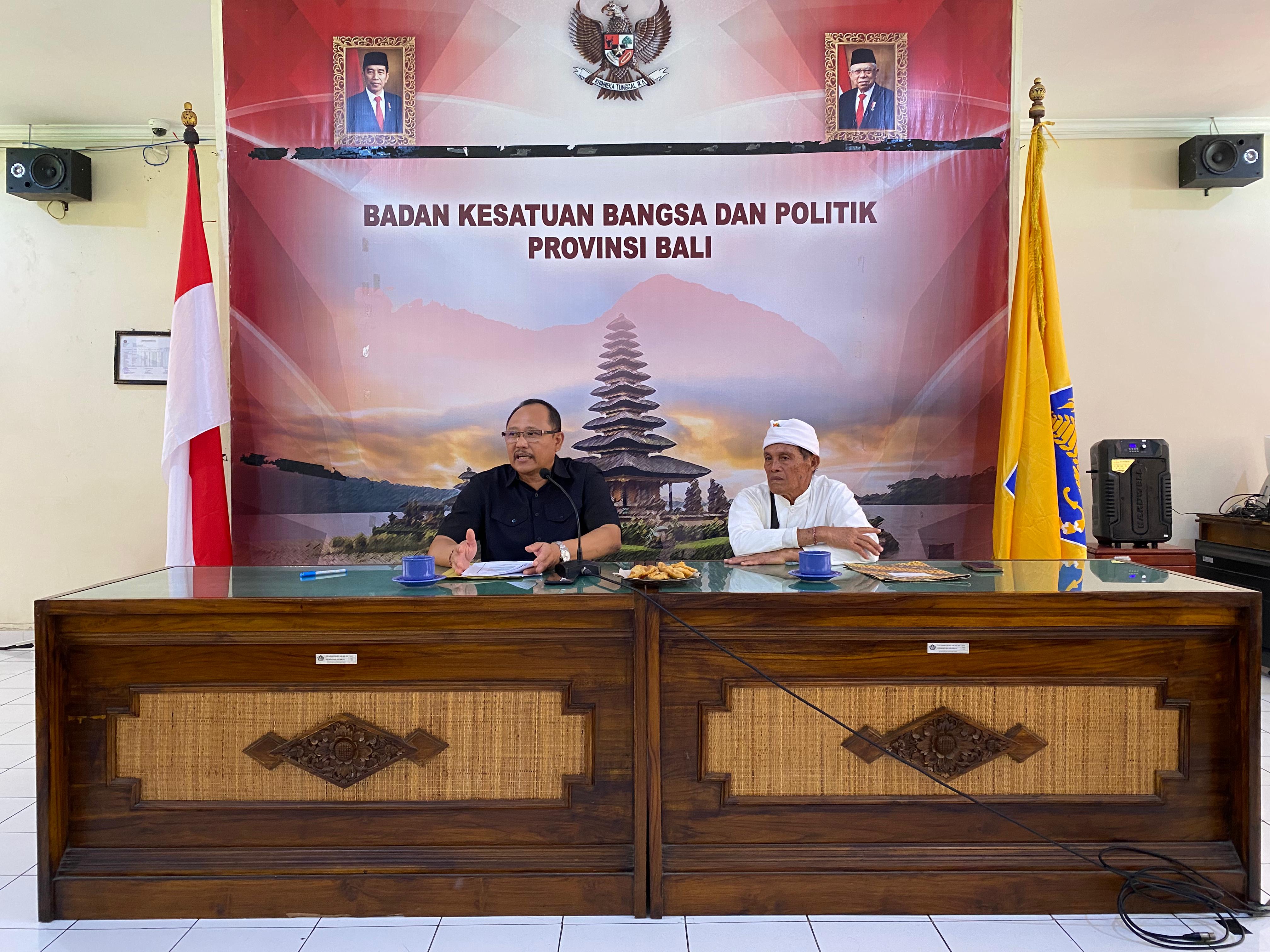 Jumat, 19 Juli 2024. Kepala Badan Kesatuan Bangsa dan Politik (Kesbangpol) Provinsi Bali, I Gusti Ngurah Wiryanata, menerima audensi Perwakilan dari Warga Desa Besakih Karangasem bertempat di Ruang Rapat Utama Badan Kesbangpol Bali. Tampak hadir Plt. Sekretaris I Komang Kusumaedi, Kepala Bidang Kewaspadaan Nasional dan Penanganan Konflik Daerah, Ni Nyoman Cahayawati serta Plt. Kepala Bidang Ketahanan Ekonomi, Sosial Budaya, Agama dan Organisasi Kemasyarakatan, I Made Artanegara.
