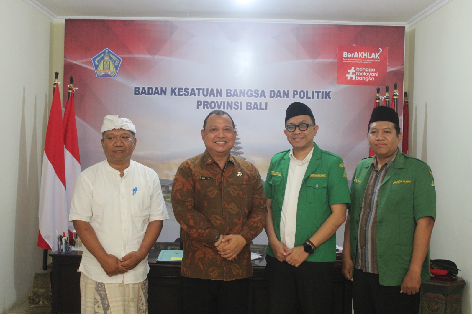 Denpasar, 16 Juni 2025 — Kepala Badan Kesatuan Bangsa dan Politik (Kaban Kesbangpol) Provinsi Bali, Gede Suralaga, menerima kunjungan resmi dari Pimpinan Wilayah Gerakan Pemuda (PW GP) Ansor Provinsi Bali pada Senin, 16 Juni 2025, pukul 14.00 WITA, bertempat di Kantor Kesbangpol Provinsi Bali.