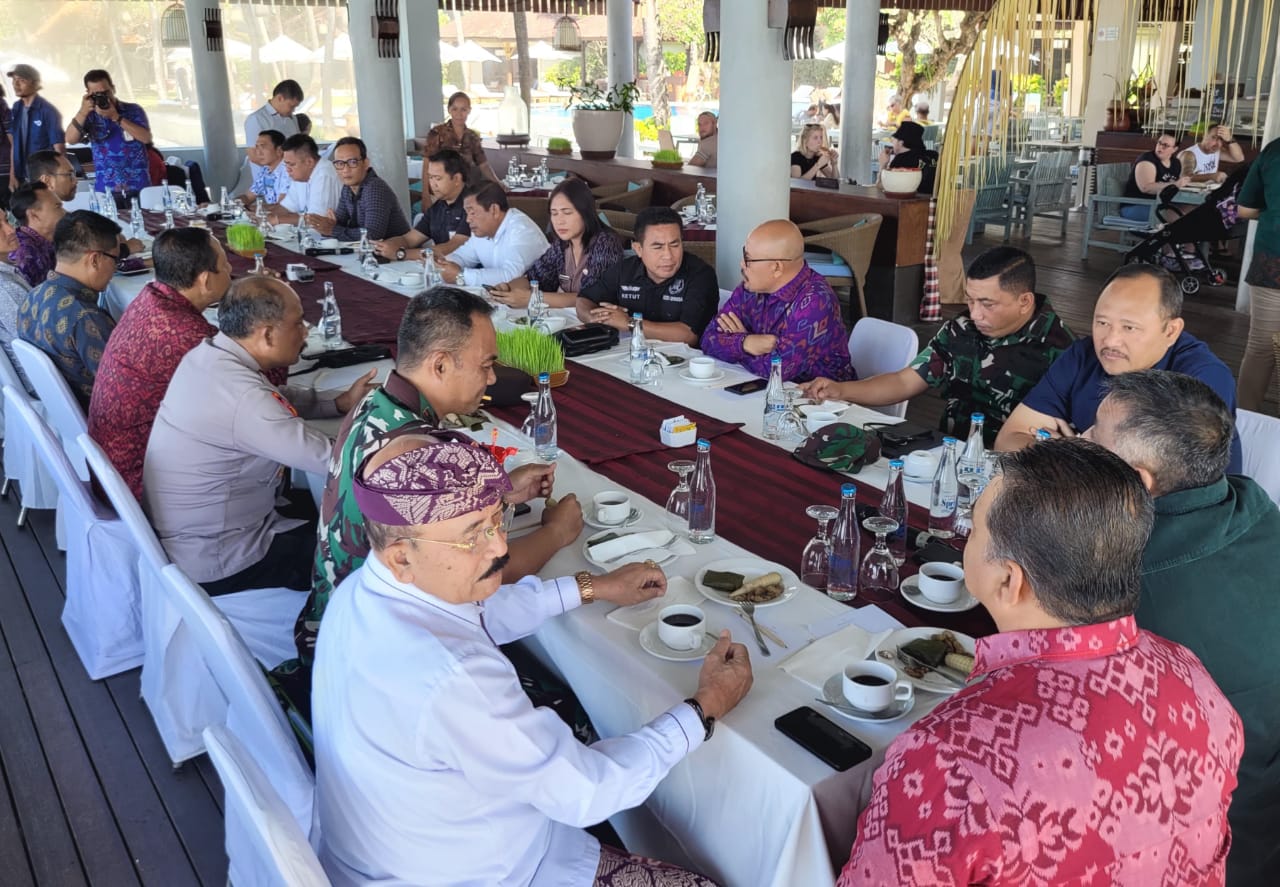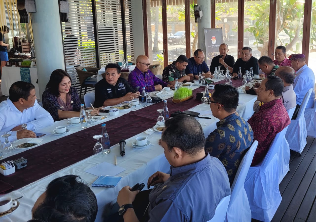 Jumat, 18 Oktober 2024. Kepala Badan Kesatuan Bangsa dan Politik (Kesbangpol) Provinsi Bali, I Gusti Ngurah Wiryanata hadiri Coffee Morning Tahapan Pemilihan Serentak Tahun 2024 bersama Plt. Kepala Bidang Politik Dalam Negeri, Kadek Rudiani. yang dilaksanakan oleh Komisi Pemilihan Umum (KPU) Provinsi Bali bertempat di Ramayana Candidasa, Jl. Raya Sengkidu, Kecamatan Manggis, Kabupaten Karangasem. Kegiatan ini dilaksanakan dalam rangka penyampaian informasi pelaksanaan tahapan Pemilihan Gubernur dan Wakil Gubernur, Bupati dan Wakil Bupati, serta Walikota dan Wakil Walikota Tahun 2024 dengan mengundang Ketua Dewan Perwakilan Daerah Provinsi Bali; Panglima Daerah Militer IX/Udayana; Kepala Kepolisian Daerah Bali; Kepala Kejaksaan Tinggi Bali; Ketua Pengadilan Tinggi Denpasar; Komandan Resor Militer 163/ Wira Satya; Kepala Badan Intelijen Negara Daerah Bali; Komandan Pangkalan TNI Angkatan Laut Denpasar; Komandan Pangkalan TNI Angkatan Udara I Gusti Ngurah Rai Denpasar; Ketua Badan Pengawas Pemilu Provinsi Bali; Kepala Satuan Polisi Pamong Praja Provinsi Bali beserta Ketua Tim Dukungan Elemen Satuan Kerja Pemilihan Kepala Daerah dan Pemantauan Perkembangan Politik di Daerah Provinsi Bali Tahun 2024.