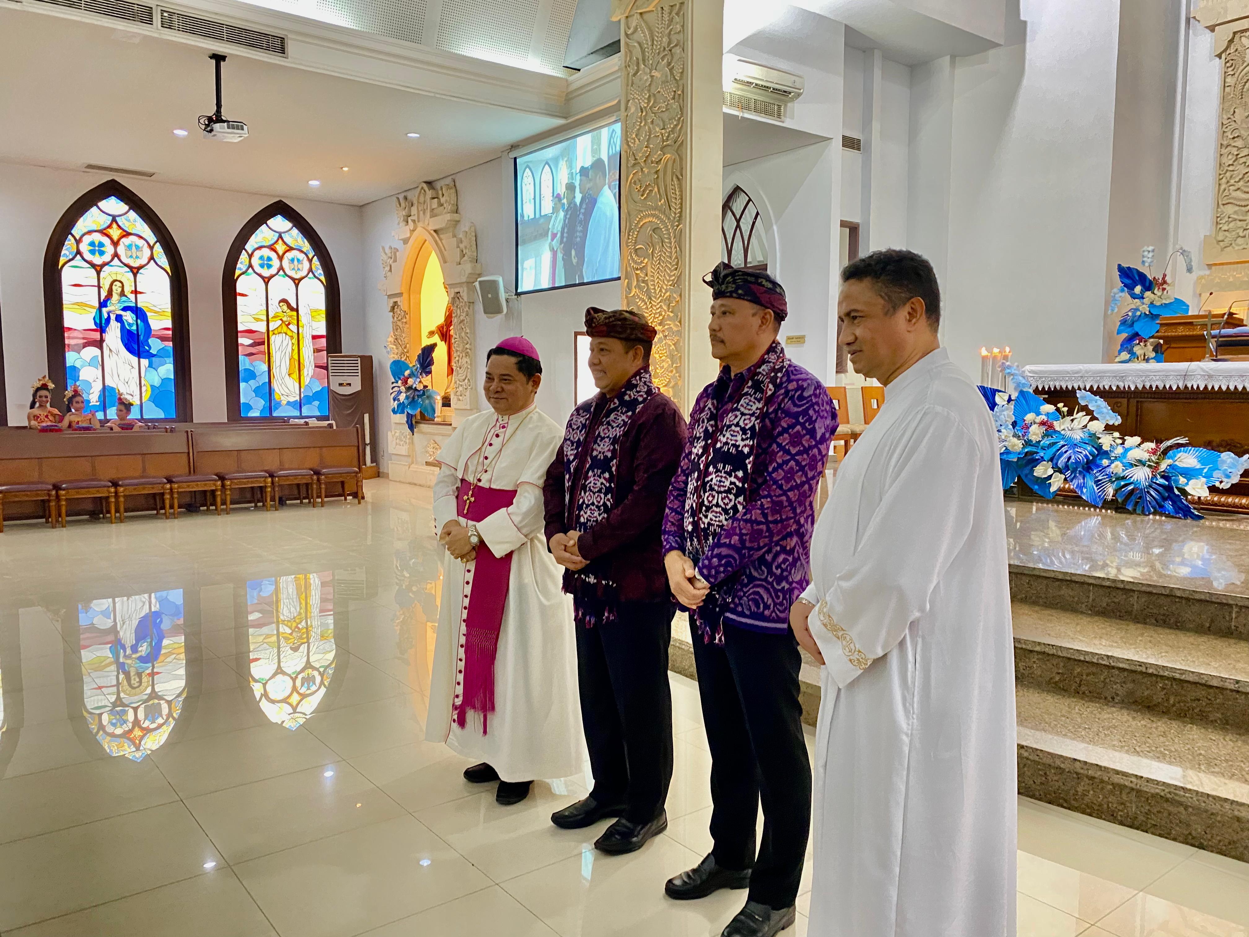 Dalam kesempatan ini, Pj. Gubernur Bali dalam sambutannya mengajak semua pihak termasuk para pemuka agama dan umat untuk turut serta berperan sebagai ‘cooling system’, guna mendinginkan suasana yang kian dinamis di tahun politik. “Besok (28 November 2023) akan dimulai tahapan penting pemilihan umum. Selama 75 hari akan berlangsung masa kampanye hingga Februari 2024 mendatang. Mari kita sambut dengan sukacita, gembira dan damai,” ungkapnya. Perbedaan pandangan serta pilihan merupakan hal yang lumrah terlebih dalam masa pemilihan umum seperti saat ini. “Karena itu saya harap semua elemen-elemen bangsa punya komitmen sama. Perbedaan adalah hal biasa, dan saya harap semua berperan jadi cooling system,” katanya. “Agar masyarakat tidak dalam suasana panas terus. Uskup yang saya hormati, para romo, pemuka agama bisa berperan sebagai pendingin suasana. Membawa damai dan sukacita bagi kita semua.”