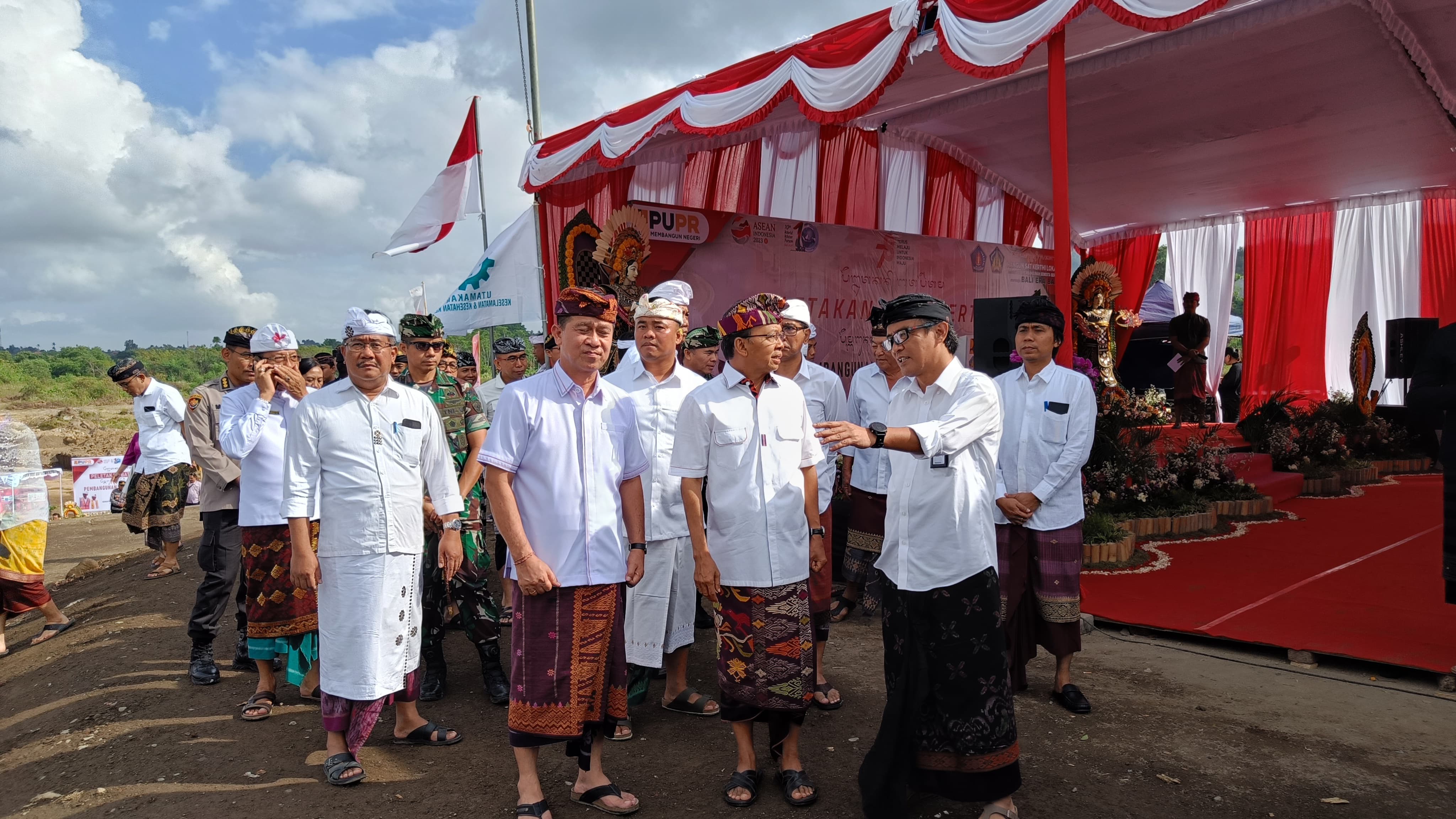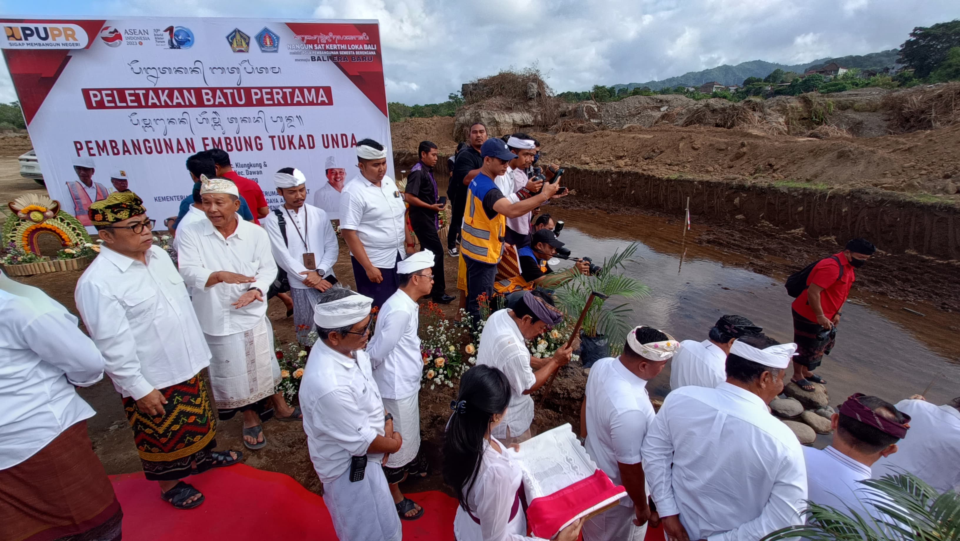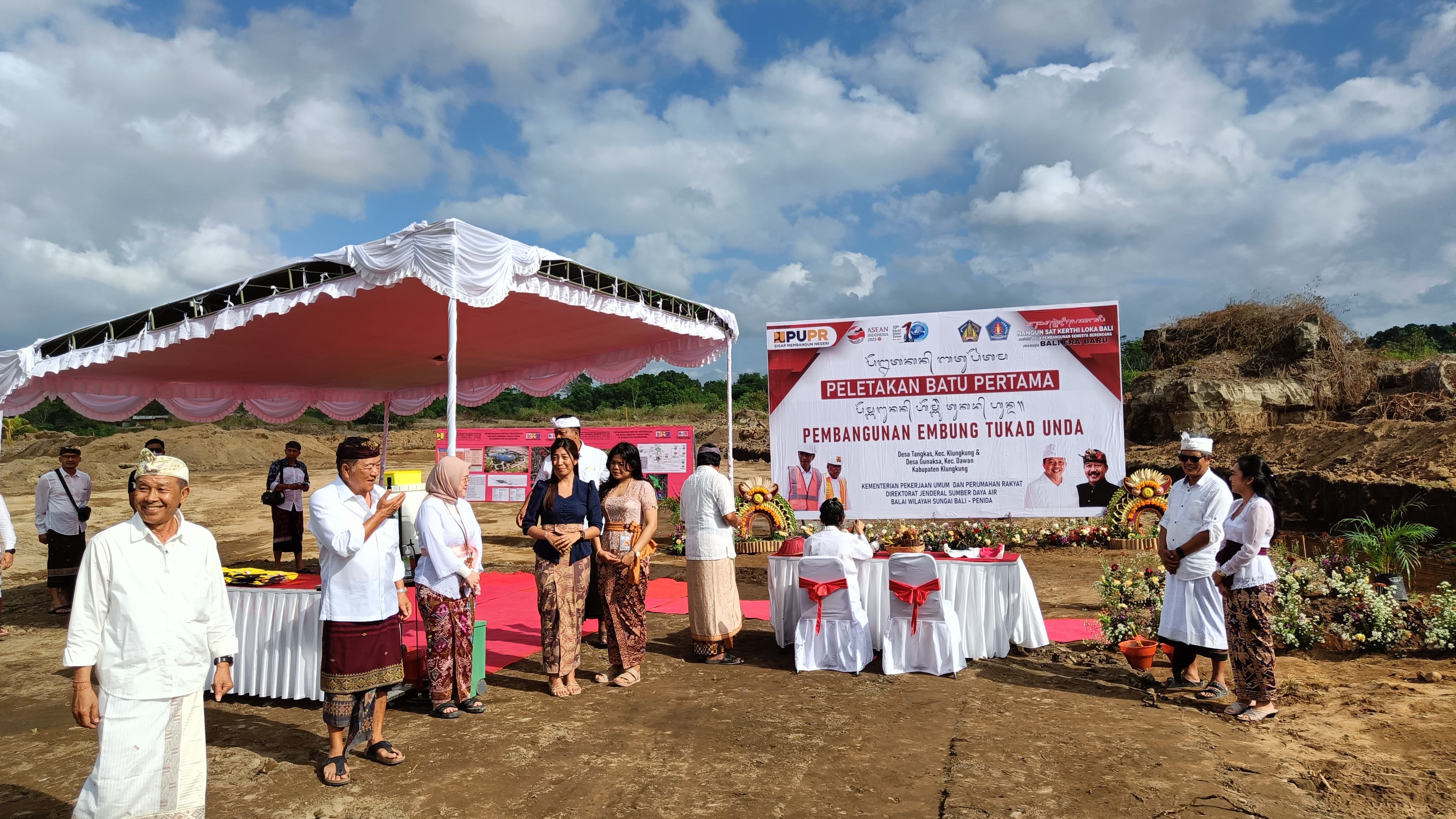 Kamis, 31 Agustus 2023 Kepala Dinas PUPRKIM Provinsi Bali, Nusakti Yasa Wedha didampingi oleh Kelompok Ahli Bidang Pembangunan Infrastruktur Pemerintah Provinsi Bali menghadiri Peletakan Batu Pertama Pembangunan Sistem Penyediaan Air Baku Embung Tukad Unda Area lokasi Ds. Tangkas Kec. Klungkung dan Ds. Gunaksa Kec. Dawan Kab. Klungkung dan kegiatan tersebut diselenggarakan oleh Kementerian Pekerjaan Umum Dan Perumahan Rakyat Direktorat Jenderal Sumber Daya Air Balai Wilayah Sungai Bali Penida.
