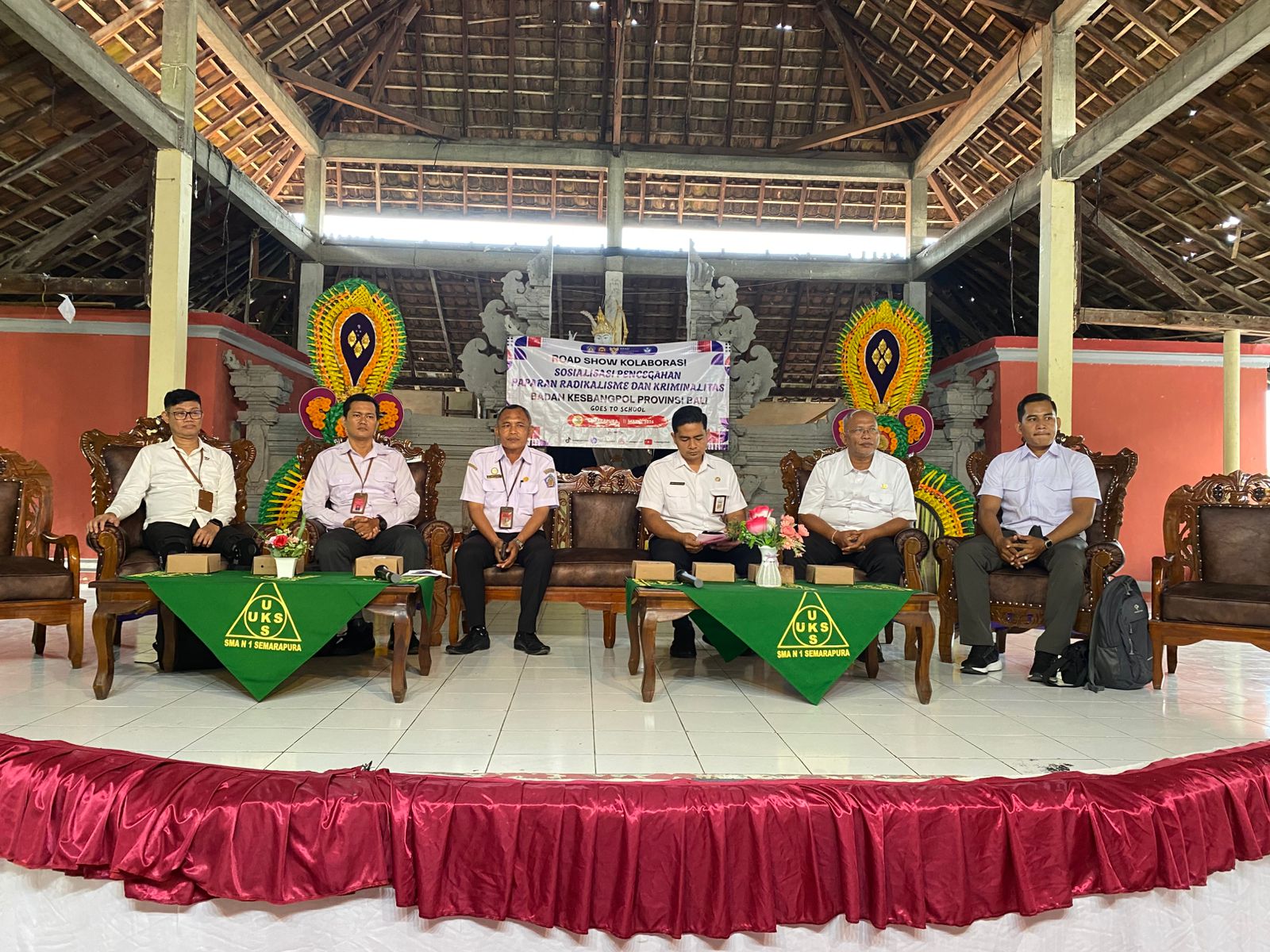 Klungkung – Badan Kesatuan Bangsa dan Politik (Kesbangpol) Provinsi Bali menggelar kegiatan Road Show Kolaborasi Sosialisasi Pencegahan Paparan Radikalisme dan Kriminalitas kepada kalangan pelajar di Aula SMAN 1 Semarapura, Jalan Flamboyan No. 63, Kelurahan Semarapura Kelod, Kecamatan Klungkung, Rabu (12/3/2026).