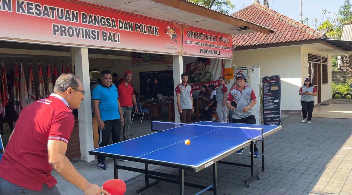 Ada yang spesial juga di kegiatan jumat ini, Badan Kesbangpol mendapatkan 1 set perangkat Tenis Meja yang disumbangkan oleh, I Gusti Bagus Hadipta Sukarna sebagai kenang-kenangan Pensiunnya Beliau.