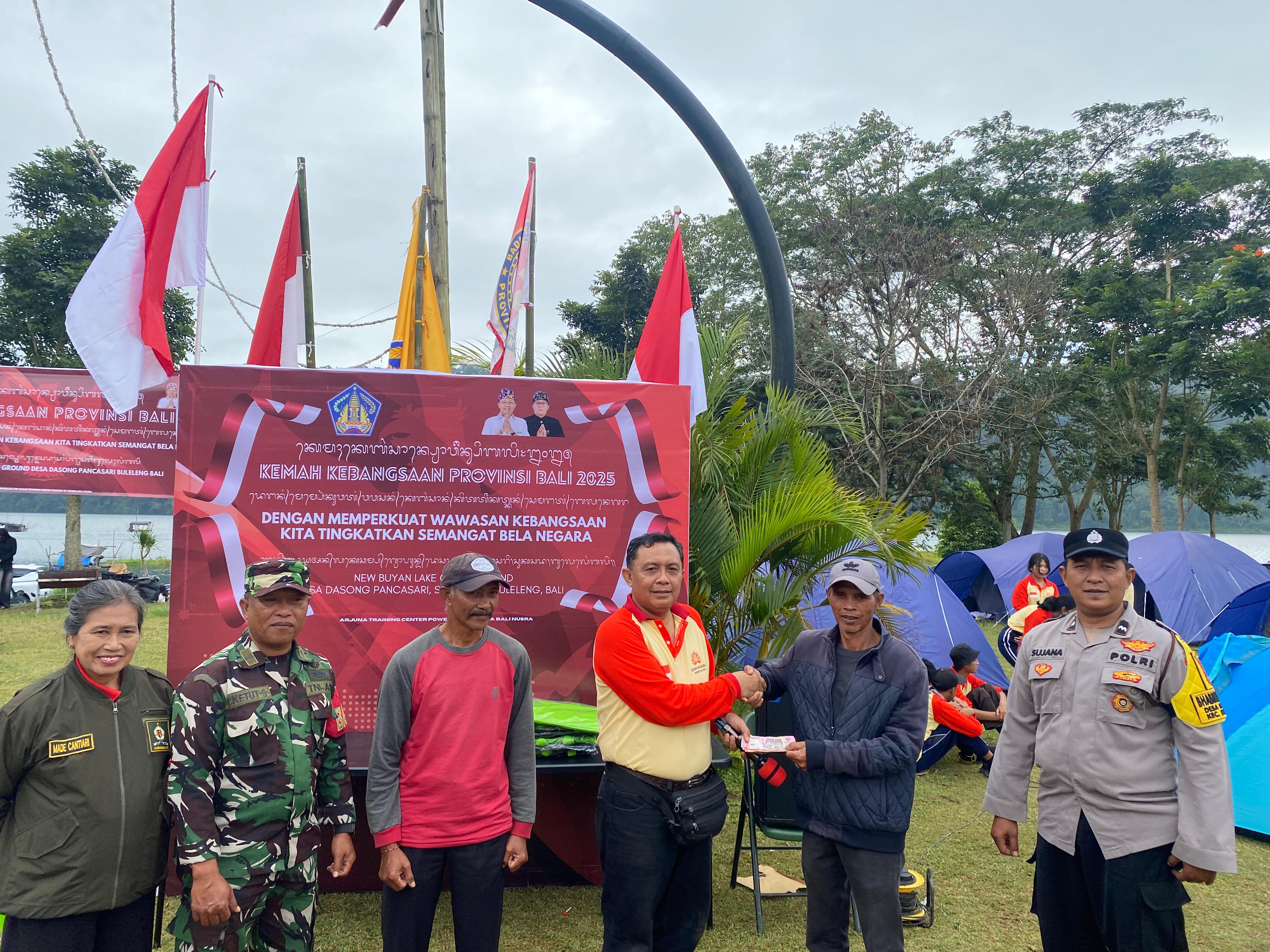 Sabtu, 5 Juli 2025. Badan Kesatuan Bangsa dan Politik (Badan Kesbangpol )Provinsi Bali laksanakan Kemah Kebangsaan Provinsi Bali Tahun 2025 bertempat di New Buyan Lake Banjar Dasong Desa Pancasari, Kecamatan Sukasada, Kabupaten Buleleng. Kemah (Persami ) yang dilaksanakan dari Sabtu 5 Juli sampai Minggu 6 Juli ini diikuti 150 peserta dari unsur Kepolisian Daerah Bali; Komando Resor Militer 163/Wira Satya; Inspektorat Daerah Provinsi Bali; Dinas Perindustrian dan Perdagangan Provinsi Bali; Badan Pengelolaan Keuangan dan Aset Daerah Provinsi Bali; Badan Narkotika Nasional Provinsi Bali; Badan Kesatuan Bangsa dan Politik Kabupaten/Kota se-Bali; Densus 88 Anti Teror Provinsi Bali; Forum Pembauran Kebangsaan Provinsi Bali dan Kabupaten/Kota se-Bali; UPTD. Kesehatan Tradisional Dinas Kesehatan Provinsi Bali; Pramuka; Purna Paskibraka Provinsi Bali Tahun 2024; serta Menwa Ugrasena Provinsi Bali.