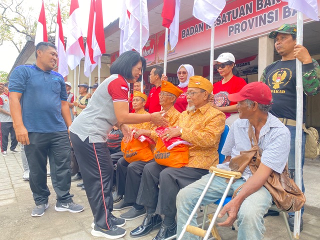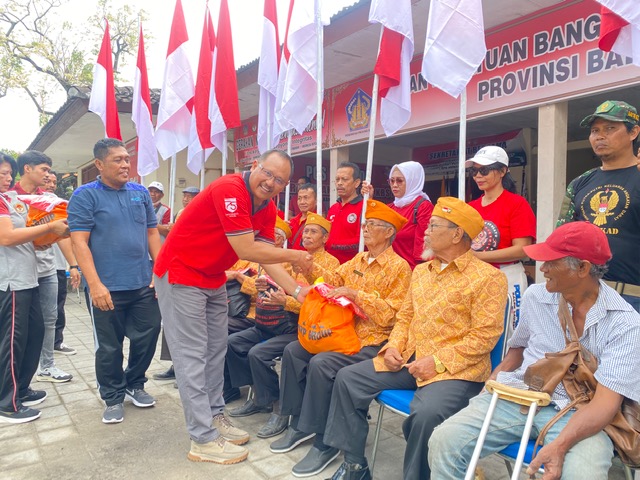 Pada kegiatan kali ini, Kepala Badan Kesbangpol Bali, Ngurah Wiryanata menyerahkan bantuan paket Sembako dan Bendera Merah Putih kepada para veteran, Orang dengan berkebutuhan khusus serta masyarakat, dengan melibatkan Organisasi Kemasyarakatan, Paguyuban, Yayasan serta Kelompok Sosial Masyarakat lainnya. Hari ini juga dilaksanakan Vaksinasi Rabies Binatang Peliharaan secara gratis.