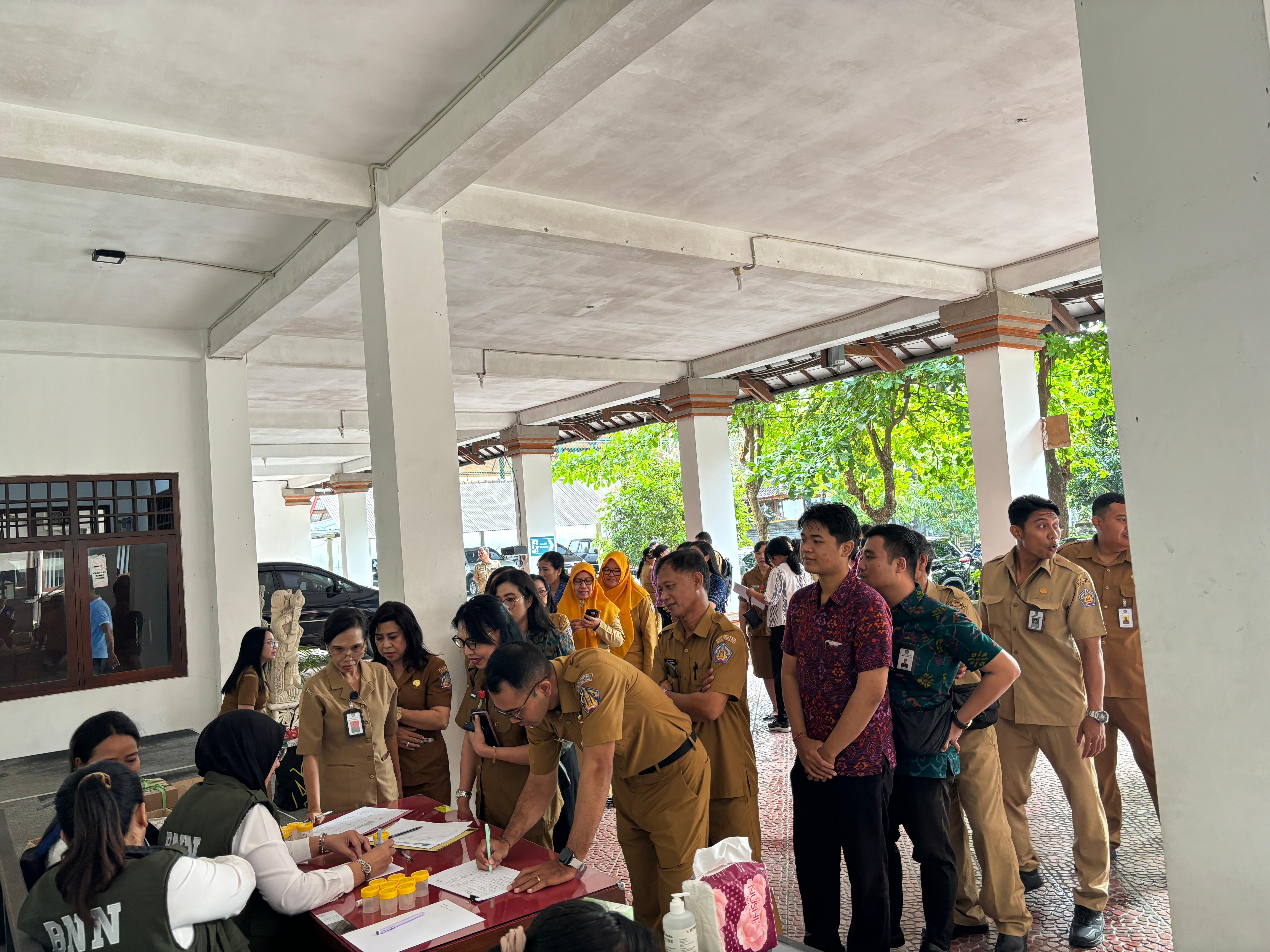 Badan Kesatuan Bangsa dan Politik (Kesbangpol) Provinsi Bali bekerja sama dengan Badan Narkotika Nasional Provinsi (BNNP) Bali menggelar Tes Urine secara mendadak bagi pegawai di lingkungan Pemerintah Provinsi (Pemprov) Bali. Kegiatan yang berlangsung pada Senin (29/9/2025) ini merupakan implementasi dari Program Pencegahan dan Pemberantasan Penyalahgunaan dan Peredaran Gelap Narkoba (P4GN).