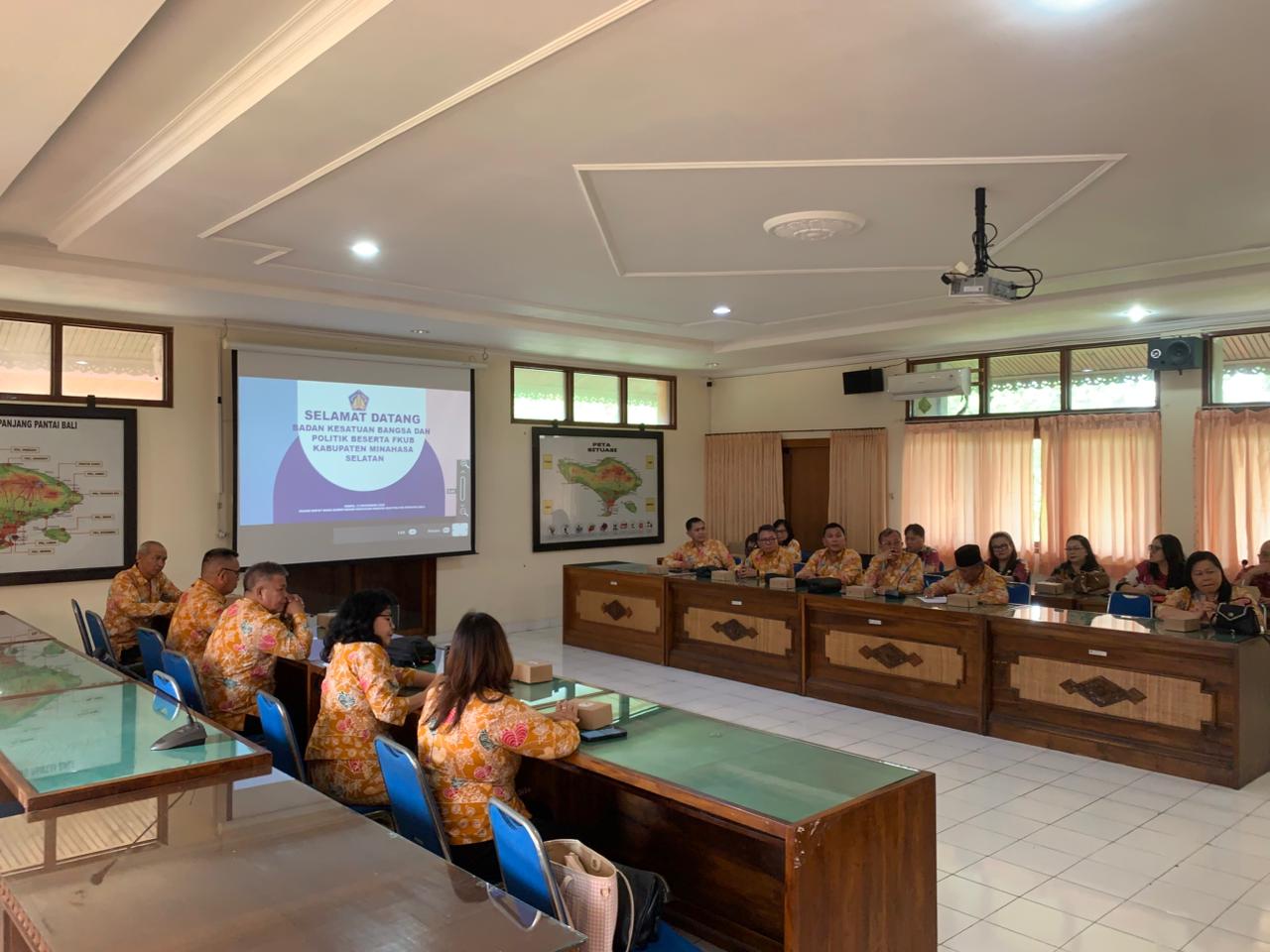 Kamis, 13 Nopember 2025. Badan Kesatuan Bangsa dan Politik (Badan Kesbangpol) Provinsi Bali menerima kunjungan Badan Kesatuan Bangsa dan Politik Kabupaten Minahasa Selatan dengan mengajak Forum Kerukunan Umat Bergama (FKUB) Kabupaten Minahasa Selatan.