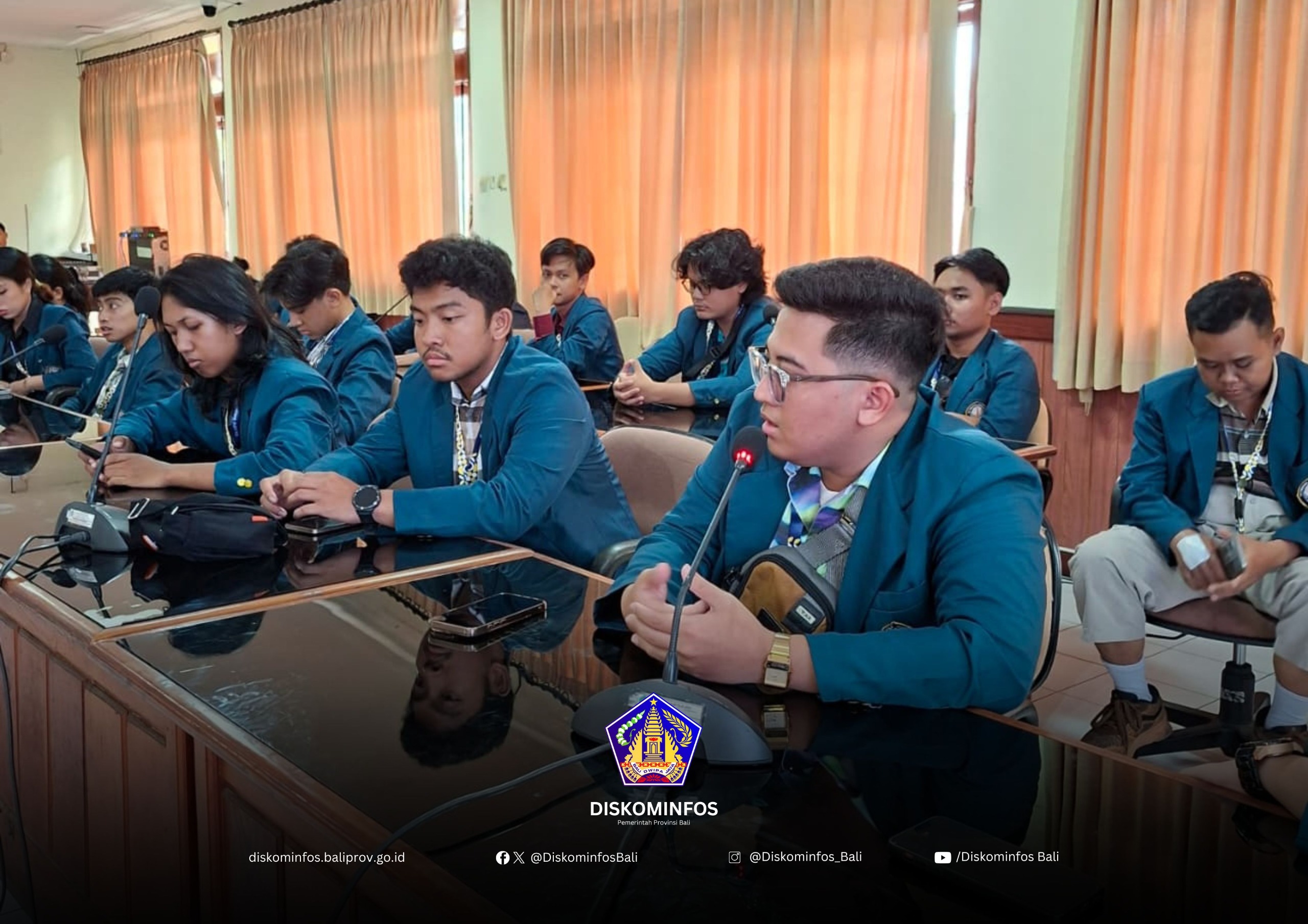 Rombongan Teknik Elektro Undip yang tiba di kantor Diskominfos Bali pukul 14.30 WITA, diterima di Ruang Sandat. Mereka disambut oleh Sekretaris Diskominfos Provinsi Bali, Gusti Ngurah Kama Wijaya, didampingi oleh JF Pranata Komputer Ahli Pertama I Putu Gede Surya Hadi Kusuma dan Penata Layanan Operasional Putu Indra Dananjaya.