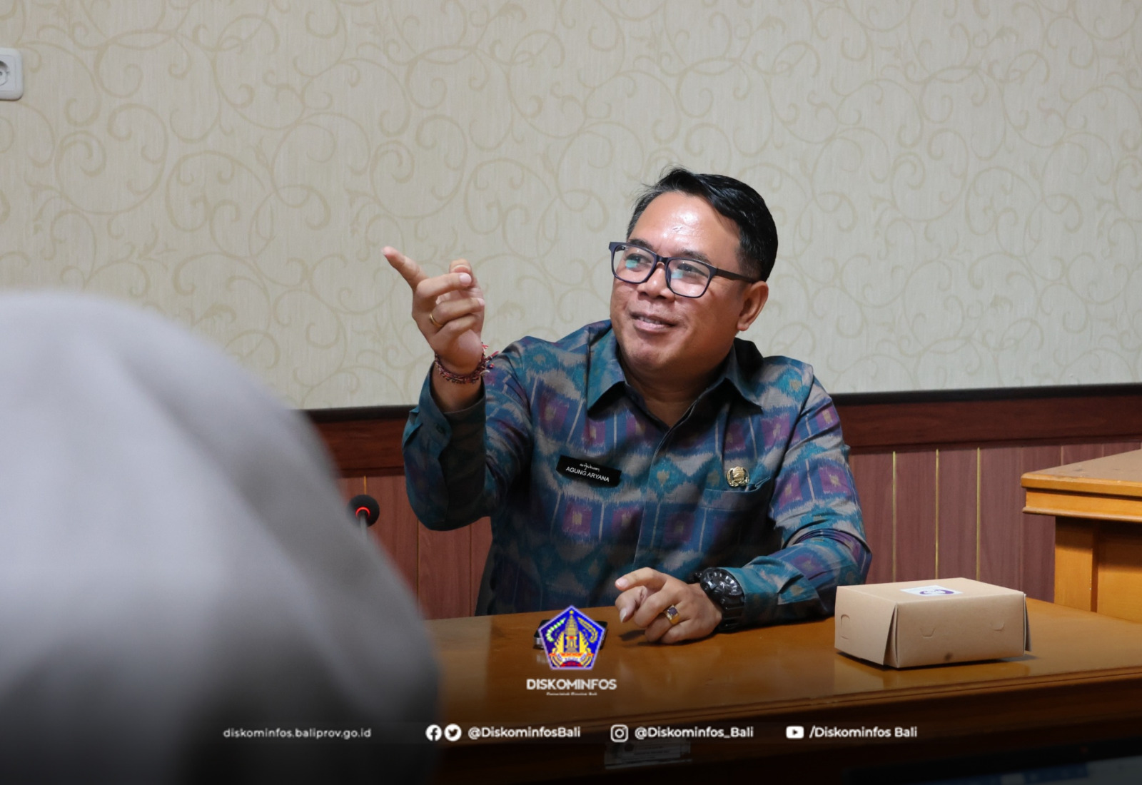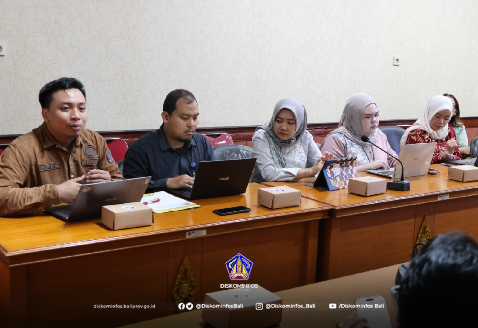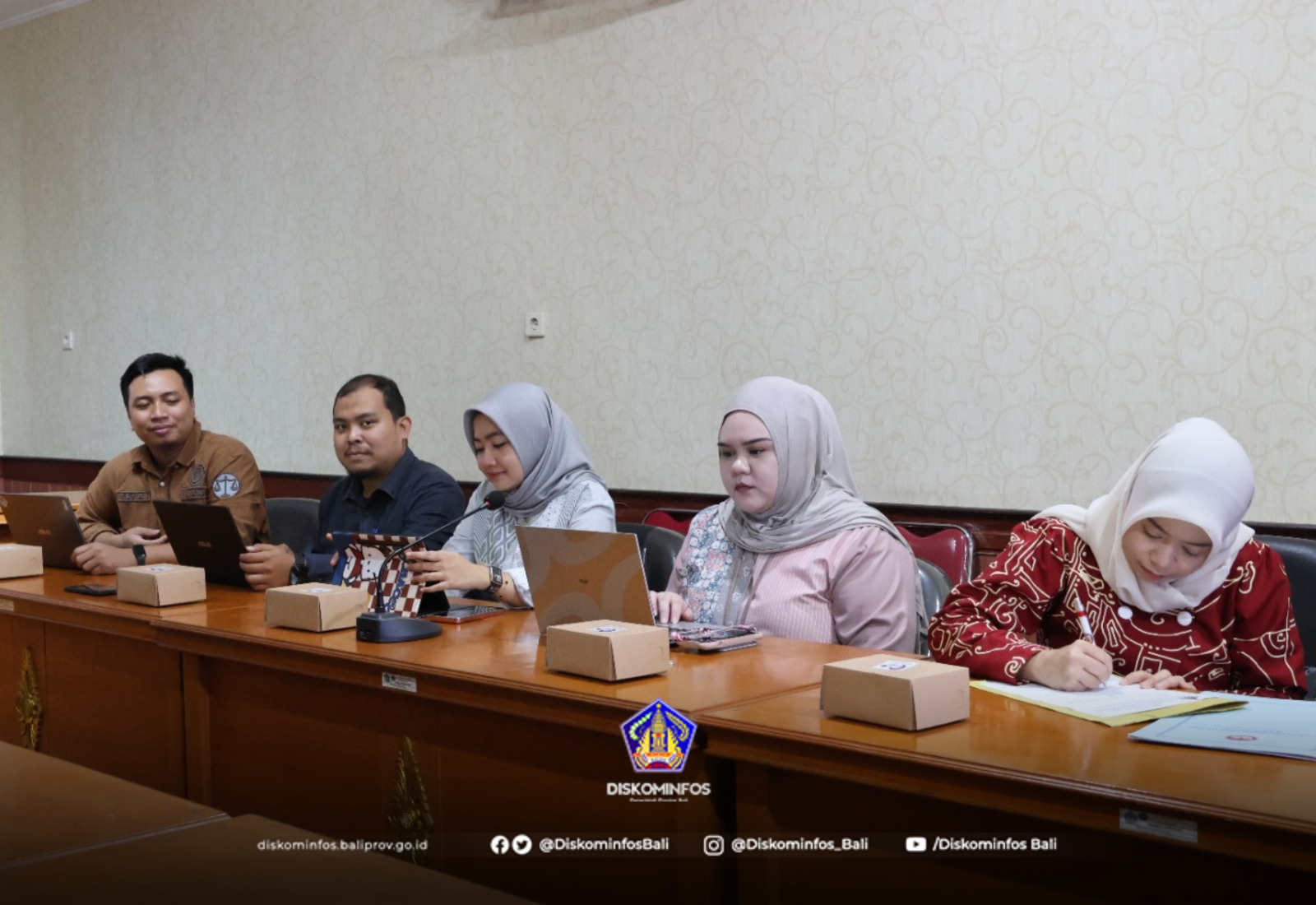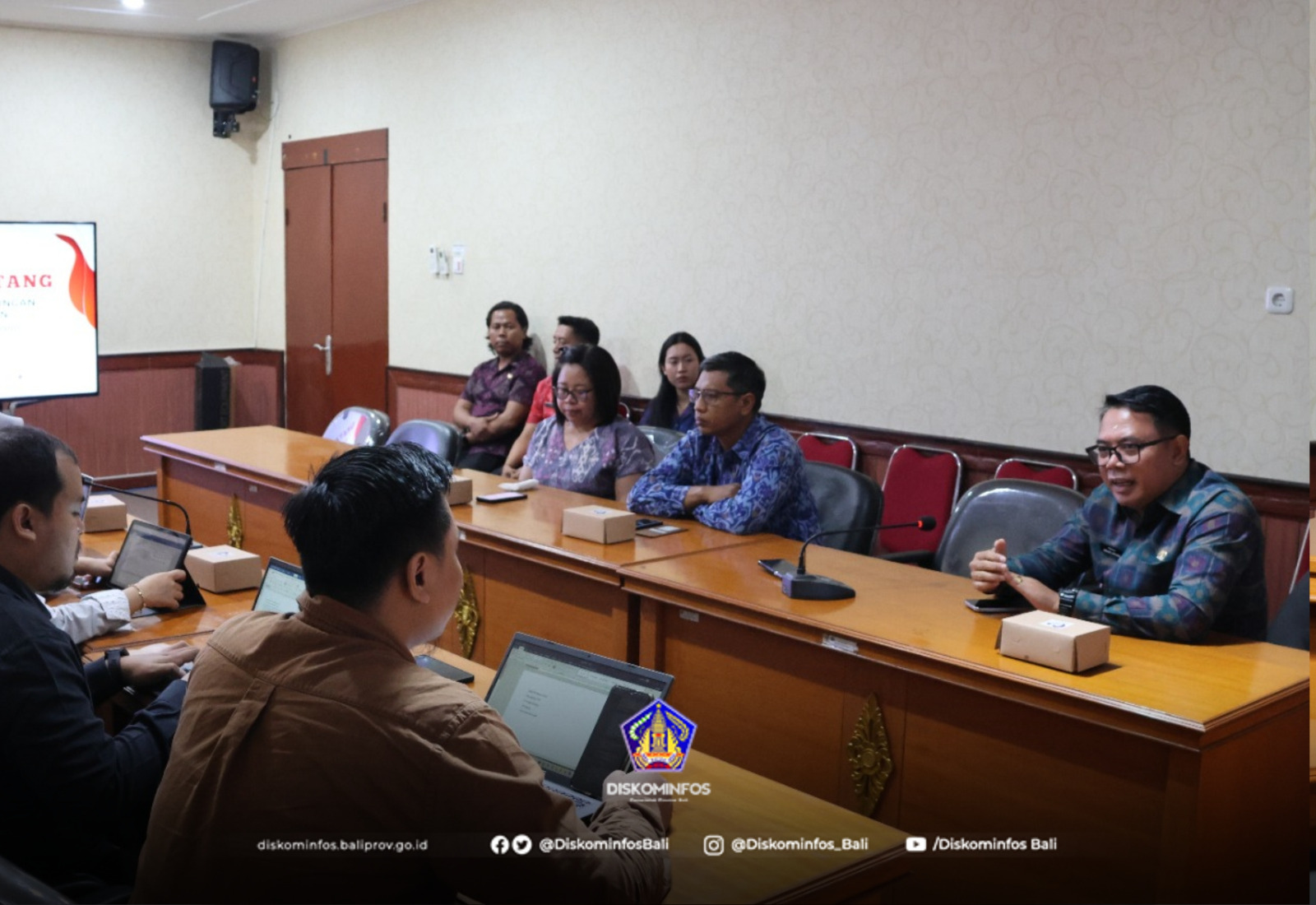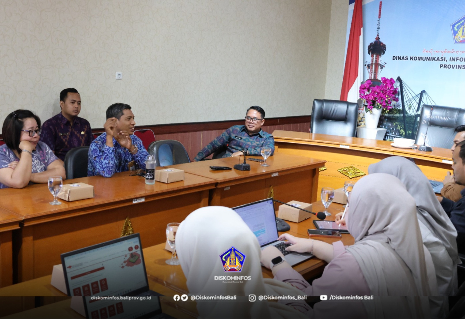 Tim LPSK diterima oleh Kepala Bidang Informasi dan Komunikasi Publik, Agung Aryana, didampingi oleh Ketua Tim Layanan dan Pengelolaan Informasi Publik, Made Sudiarta, serta Ketua Tim Monitoring Informasi Kebijakan, Opini, dan Aspirasi Publik, Gusti Ayu Sukmawati, bertempat di Ruang Rapat Vidcon 1 Diskominfos Provinsi Bali.