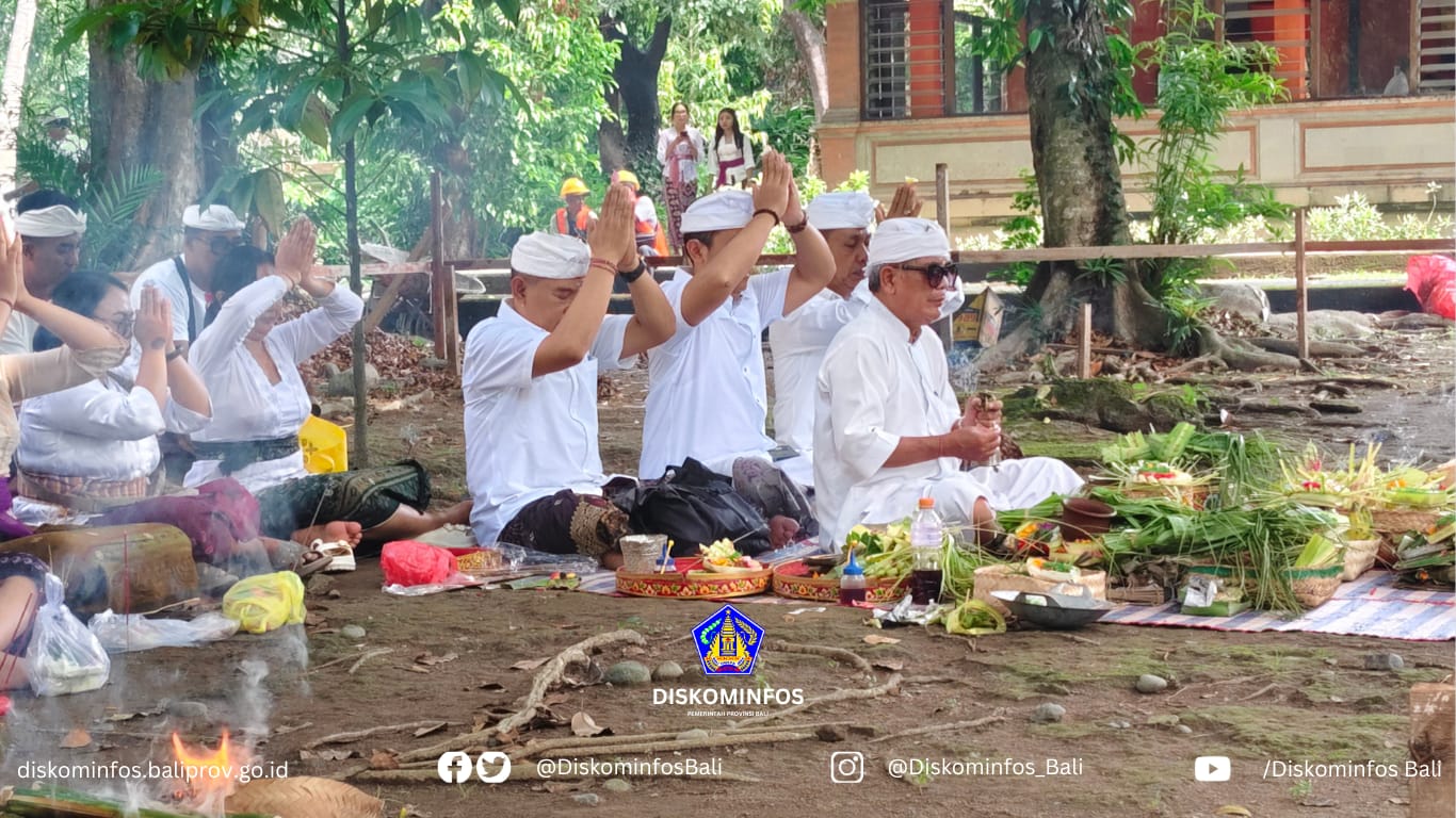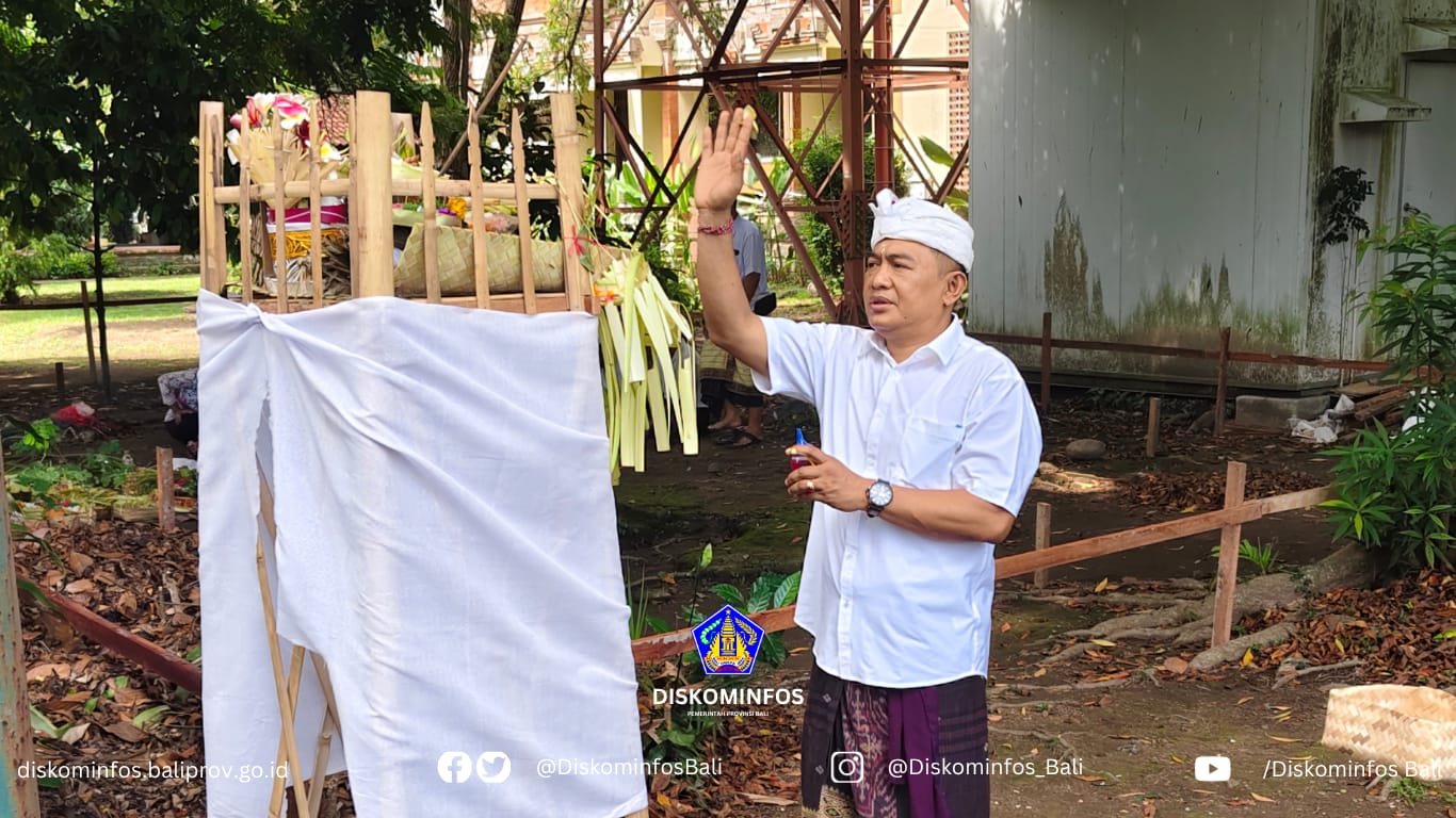Denpasar, 5 Nopember 2025 - Dinas Komunikasi, Informatika, dan Statistik (Diskominfos) Provinsi Bali menggelar prosesi Ngruak sebagai awal dimulainya pembangunan Power House yang dilaksanakan tepat pada hari suci Purnama Sasih Kelima, Rabu, 5 November 2025 bertempat di areal kantor Gubernur Bali. Prosesi ini merupakan bentuk penghormatan atau upacara pembersihan area saat peletakan batu pertama sebelum pembangunan dimulai