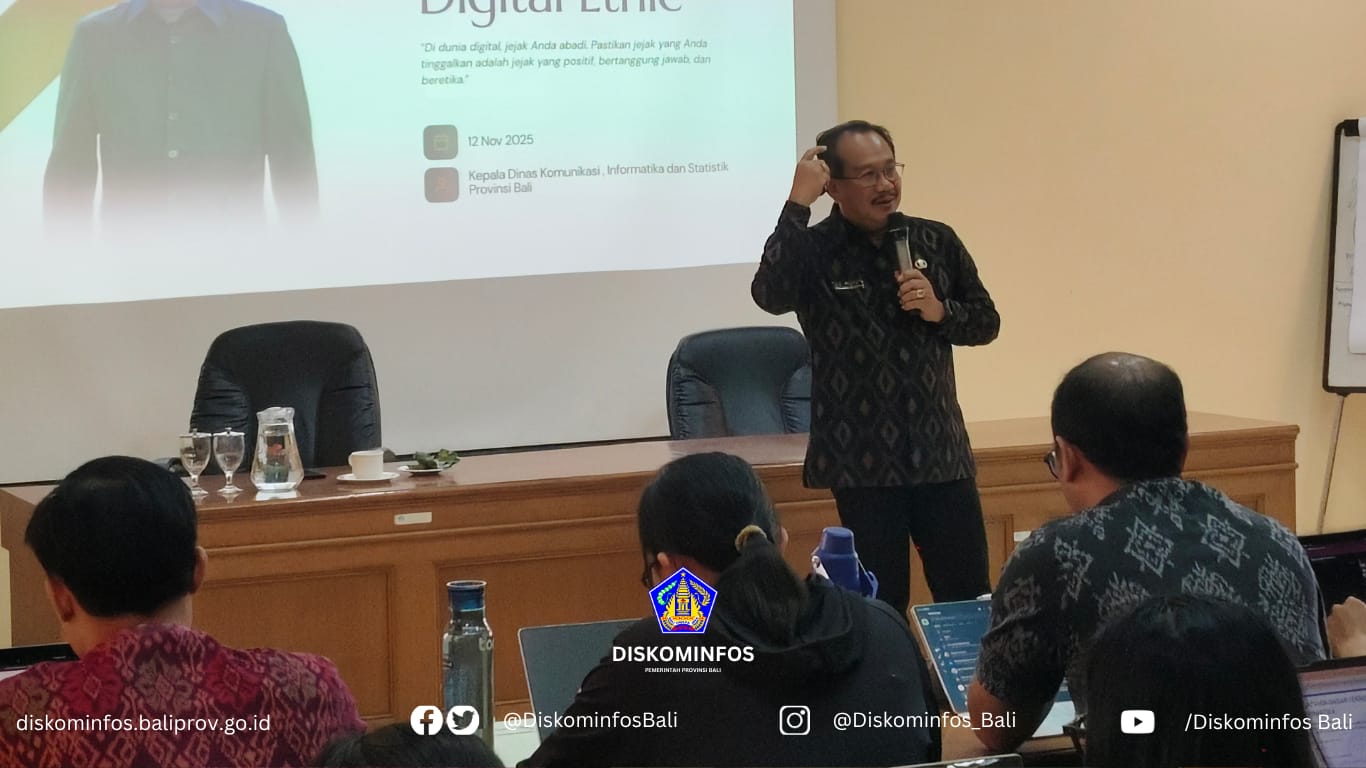 Materi pelatihan mencakup digitalisasi birokrasi, etika digital, strategi komunikasi visual, serta praktik aplikasi Microsoft Office hingga tata naskah dinas yang dibawakan oleh Narasumber, termasuk Kepala Dinas Kominfos Provinsi Bali Ir. Gede Pramana ST., MT serta Dr. I Made Suciani, M.Pd, dan I Made Gde Partha Kesuma Setiawan, S.STP., M.Si.