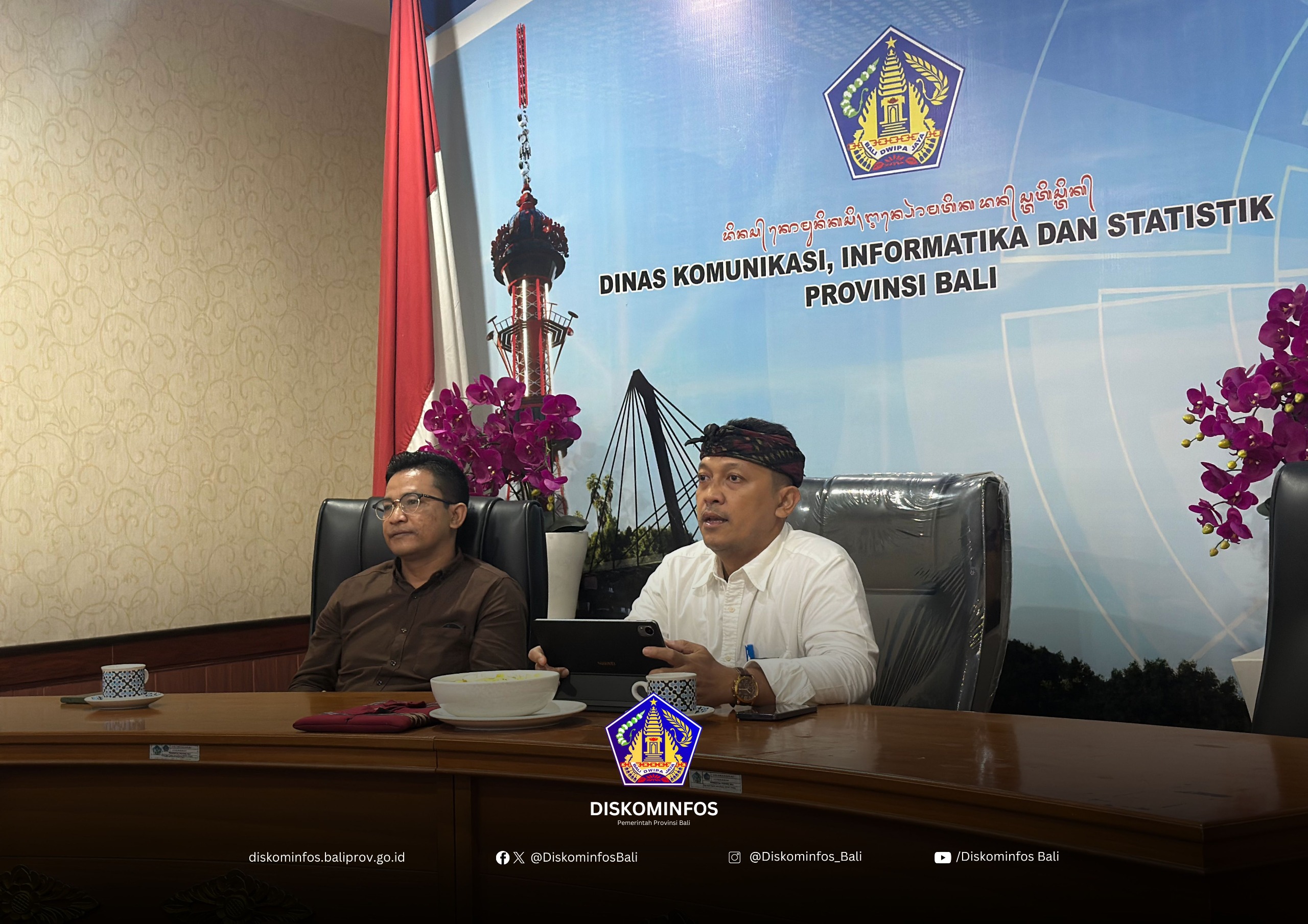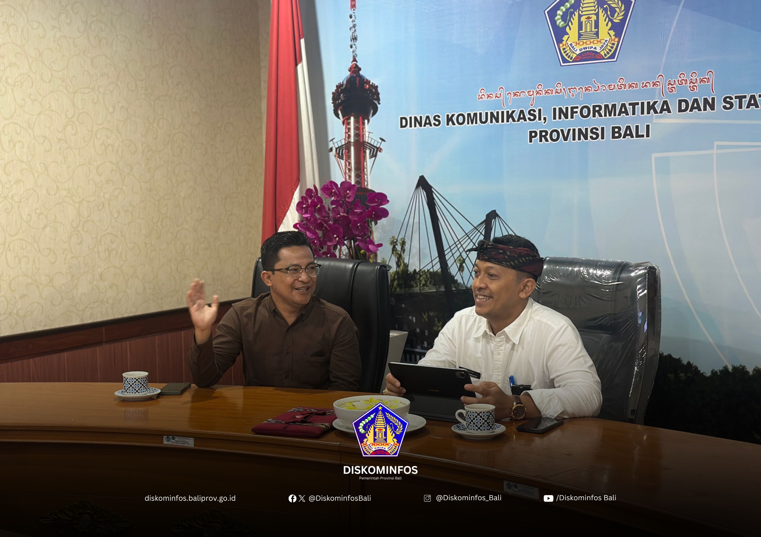 Rombongan Komisi III DPRD Kota Mataram yang dipimpin oleh Herman Fanani diterima langsung oleh Sekretaris Dinas Kominfos Provinsi Bali, Ngurah Kama Wijaya, didampingi jajaran Bidang Informasi dan Komunikasi Publik (IKP) serta Unit Pelaksana Teknis Daerah (UPTD) Pengembangan dan Integrasi Layanan Digital.
