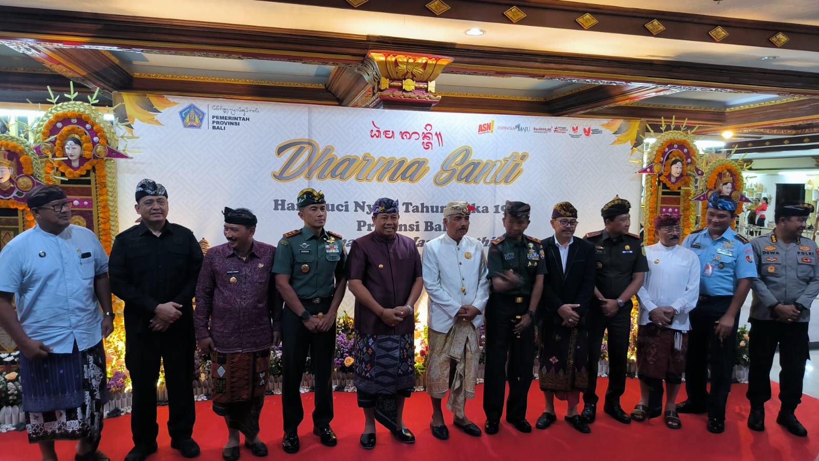 Kamis, 18 April 2024. Pemerintah Provinsi Bali melalui Badan Kesatuan Bangsa dan Politik (Kesbangpol) Provinsi Bali bekerjasama dengan Organisasi Perangkat Daerah di Provinsi Bali laksanakan Dharma Santi Nyepi Tahun Saka 1946, bertempat di Gedung Ksirarnawa, Art Center. Laporan Ketua Panitia Dharma Santi Nyepi Provinsi Bali dalam hal ini Kepala Badan Kesatuan Bangsa dan Politik Provinsi Bali Drs. I Gusti Ngurah Wiryanata, M.Si. menyampaikan bahwa Dharma Santi Hari Suci Nyepi kembali dapat dilaksanakan di Tahun 2024 setelah hampir 5 tahun, tepatnya dari tahun 2019 - 2023, tidak dilaksanakan karena adanya kebijakan Pemerintah terkait Pemberlakuan Pembatasan Kegiatan Masyarakat (PPKM) akibat Covid-19. Sebagaimana diketahui bersama, Dharma Santi merupakan ajang pertemuan atau silaturahmi untuk dapat saling memaafkan kesalahan masing-masing, serta tentunya mengupayakan untuk tidak membuat kesalahan lagi di kemudian hari. Dharma Santi juga dapat dimaknai sebagai inti moderasi beragama yang patut dijadikan acuan dalam kehidupan beragama di masyarakat, yaitu dengan memberikan penekanan pemaknaan bahwa agama harus menjadi sumber inspirasi dalam kehidupanberbangsa dan bernegara. Dengan pemahaman seperti ini diharapkan dalam beragama tidak hanya akan terwujud kedekatan makhluk / manusia dengan Tuhan, namun juga memunculkan sikap saling menghormati, toleransi dan sekaligus memuliakan alam beserta isinya.