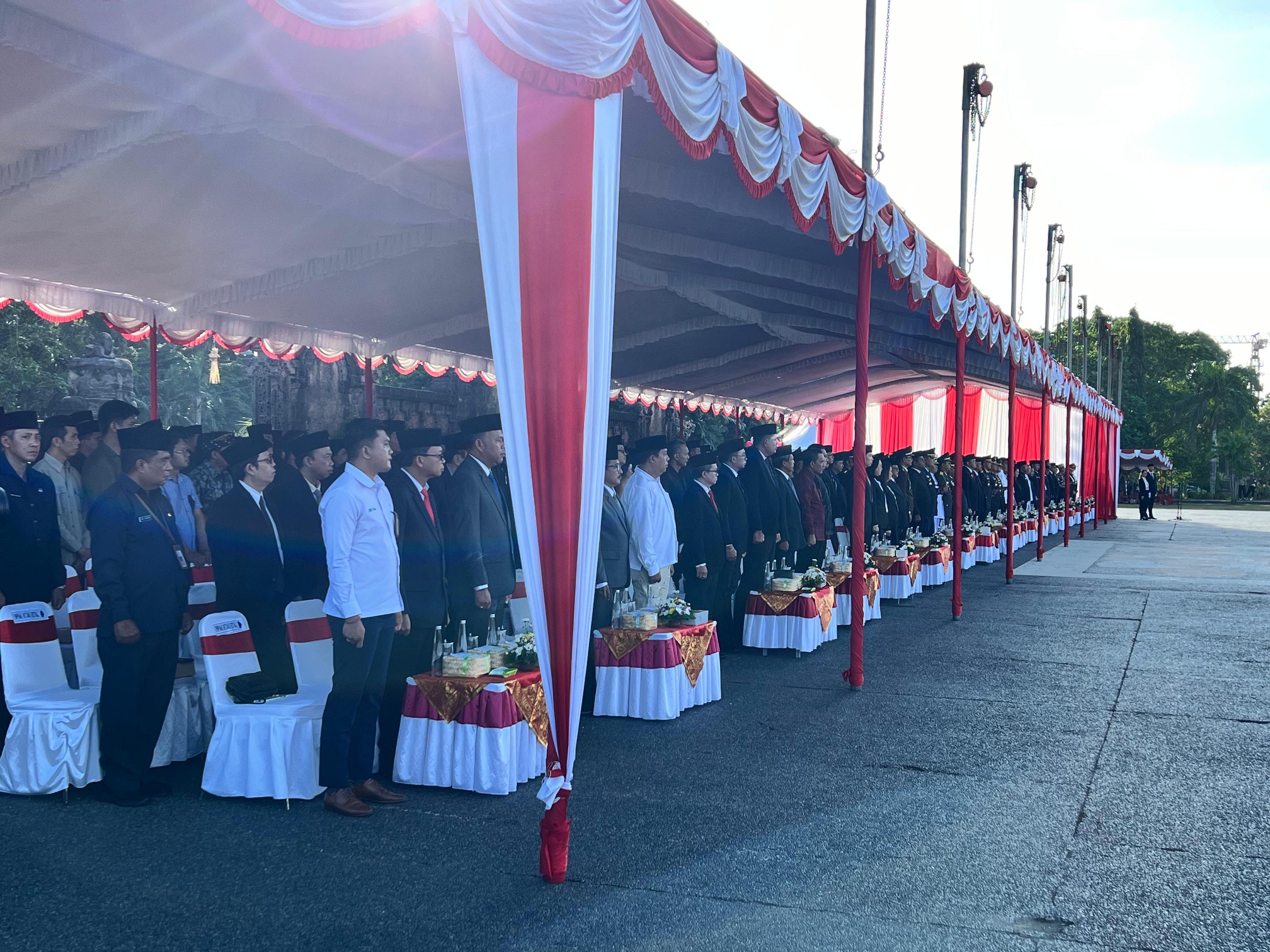 Sabtu, 1 Juni 2024. Badan Kesatuan Bangsa dan Politik (Kesbangpol) Provinsi Bali bekerjasama dengan Perangkat Daerah terkait, sukses laksanakan Upacara Peringatan Hari Lahir Pancasila Tahun 2024 di Provinsi Bali yang dirangkaikan dengan Pembukaan Bulan Bung Karno VI serta Launching Gerakan Pembagian Bendera Merah Putih Tahun 2024 di Provinsi Bali. Pj. Gubernur Bali, S.M. Mahendra Jaya bertindak selaku Inspektur Upcara membacakan Pidato Kepala Badan Pembinaan Ideologi Pancasila (BPIP) Republik Indonesia, mengajak seluruh komponen bangsa untuk bersama-sama bergotong royong merawat anugerah Pancasila melalui Peringatan Hari Lahir Pancasila 1 Juni.