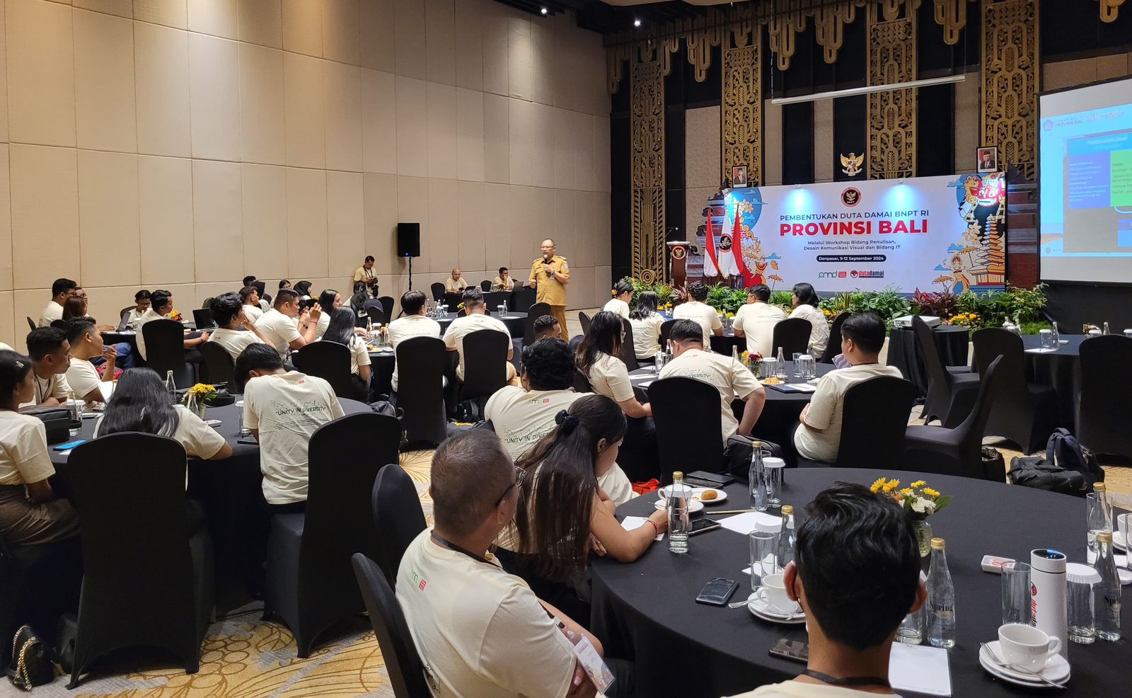 Sebanyak 64 anak muda dari 120an lebih yang mengikuti seleksi Duta Damai dinyatakan lolos dan selanjutnya mengikuti pelatihan selama 4 hari, mulai tanggal 9 – 12 September 2024 di Hotel The Stones, Badung, Bali.
