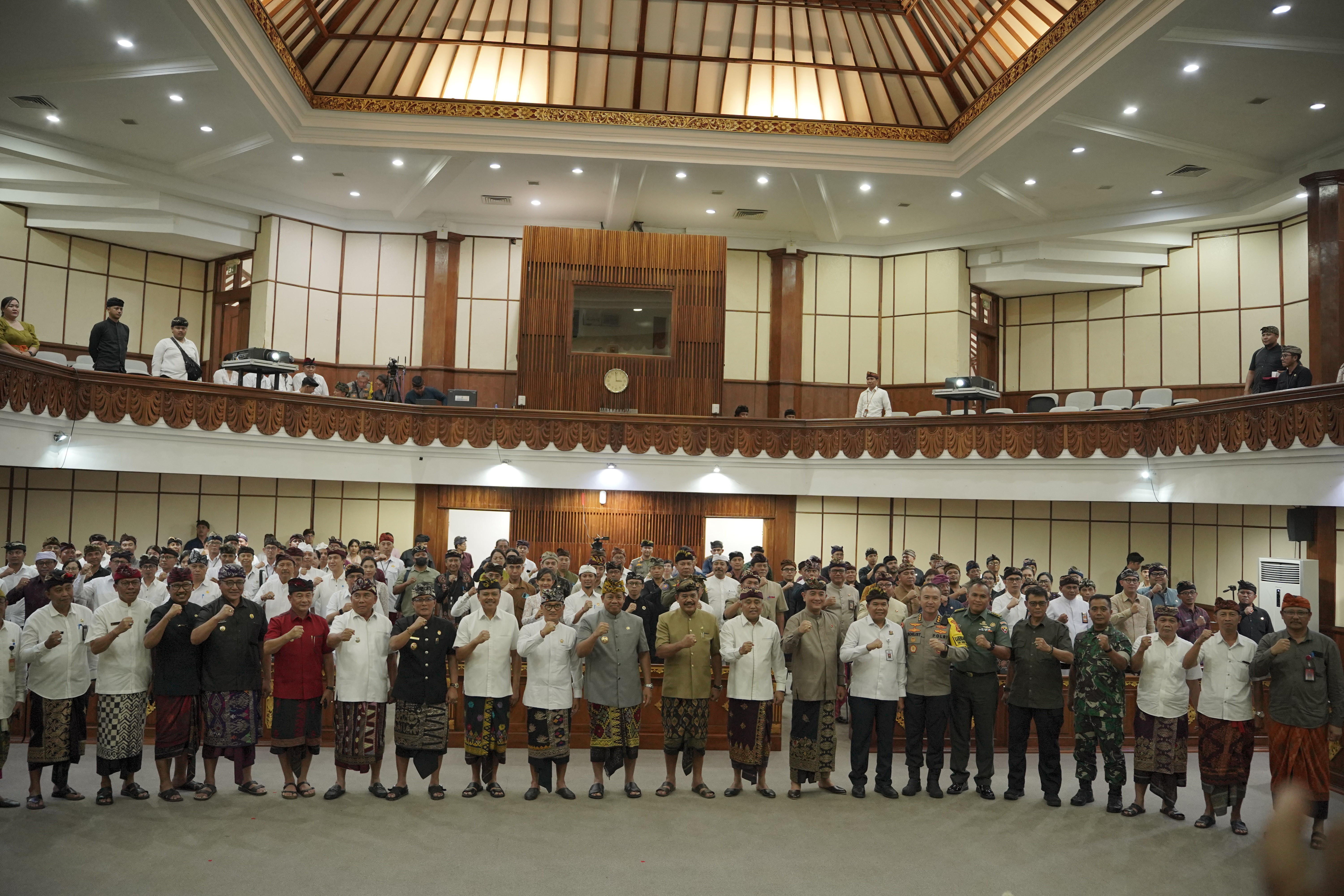 Pj. Gubernur Bali, S.M. Mahendra Jaya dalam sambutannya menyampaikan apresiasi atas terselenggaranya penandatangan NPHD pendanaan Pemilukada Tahun 2024 serentak di Provinsi Bali. S.M. Mahendra Jaya juga mengajak seluruh elemen Bangsa untuk turut serta mensukseskan Pemilu dan Pemilukada Serentak Tahun 2024. Pharama Shanti dan Ngrombo adalah kearifan lokal yang dimiliki Bali dapat dimaknai sebagai spirit untuk bekerja bersama