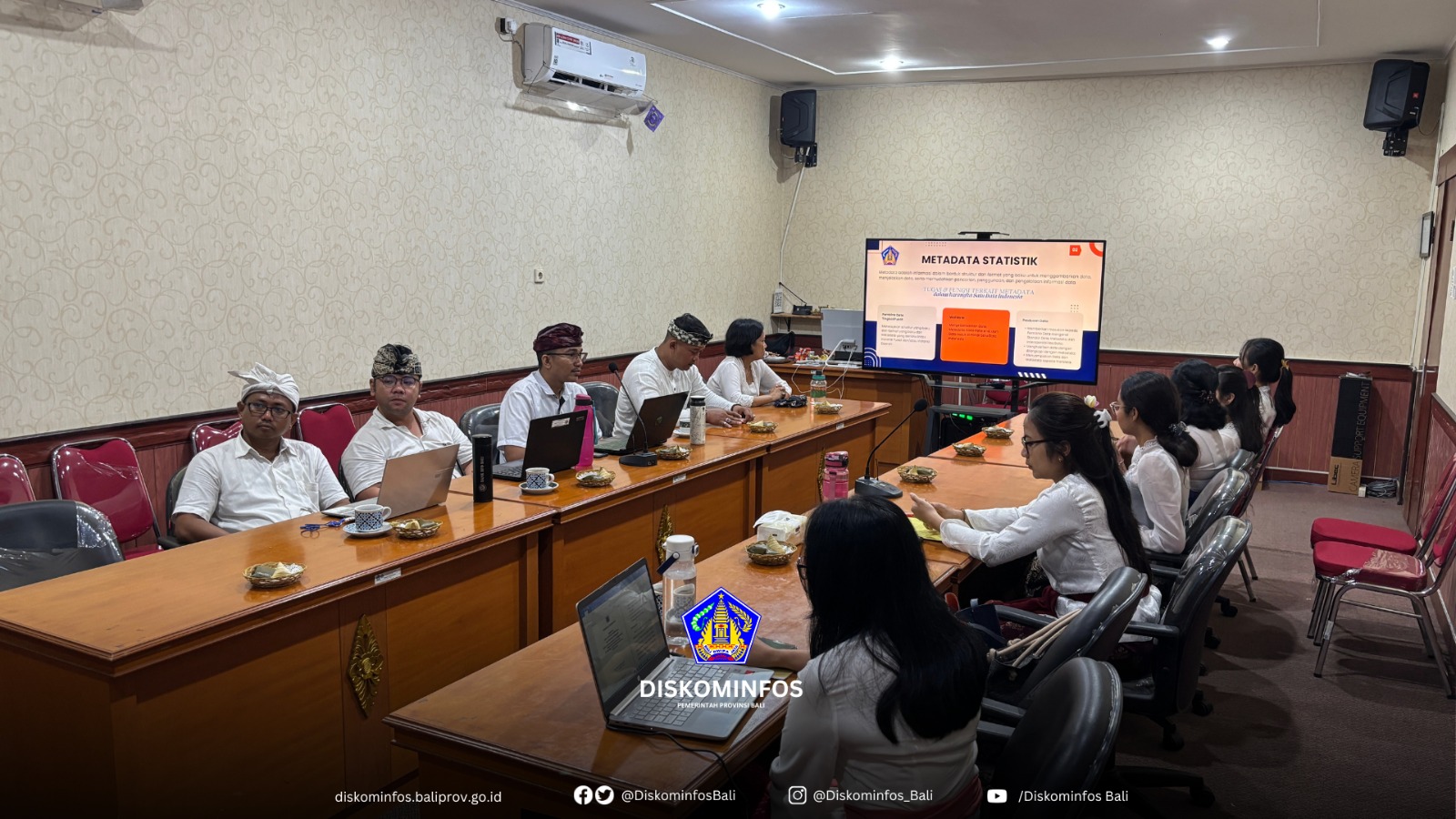 Diskominfos Bali mengadakan rapat identifikasi metadata pada 14 Maret di Denpasar dengan tujuan meningkatkan akurasi dan kredibilitas data. Rapat ini melibatkan Dinas Pariwisata dan Dinas Kesehatan sebagai produsen data untuk membahas penyusunan metadata yang meliputi kegiatan, variabel, dan indikator.