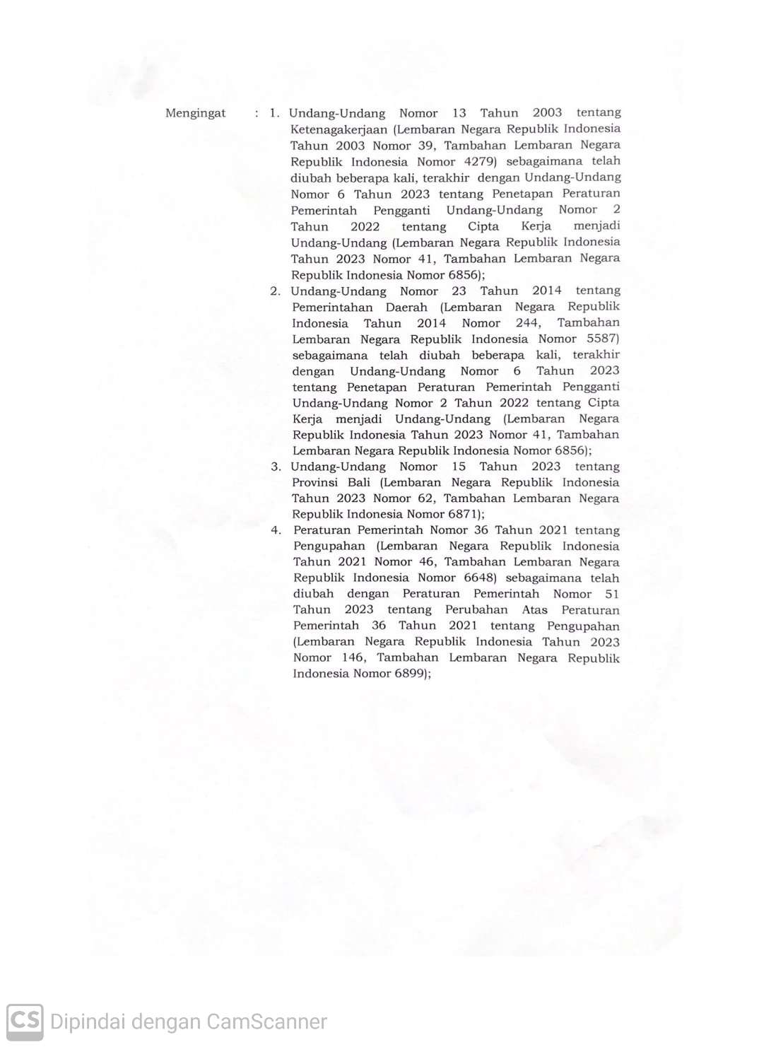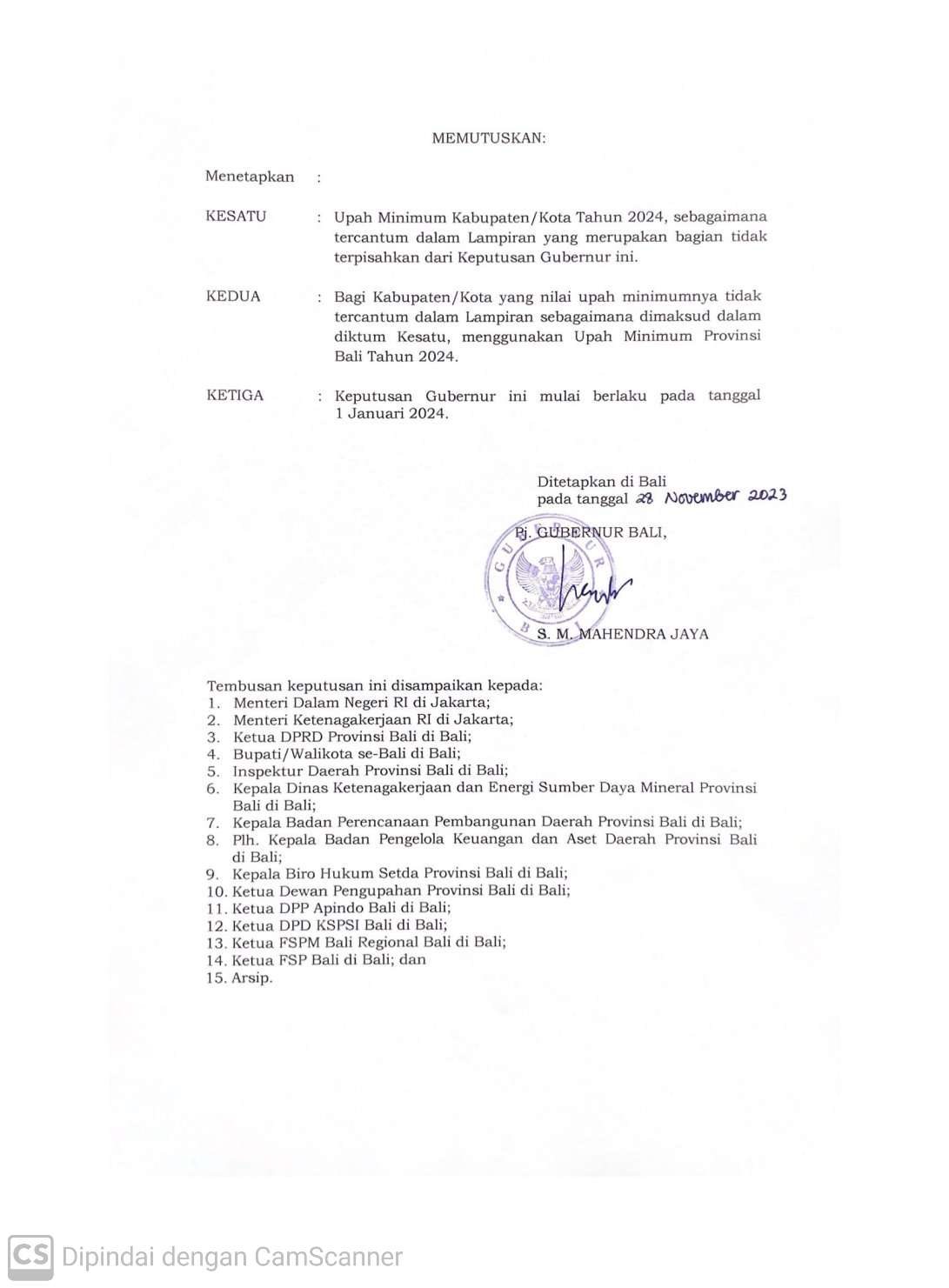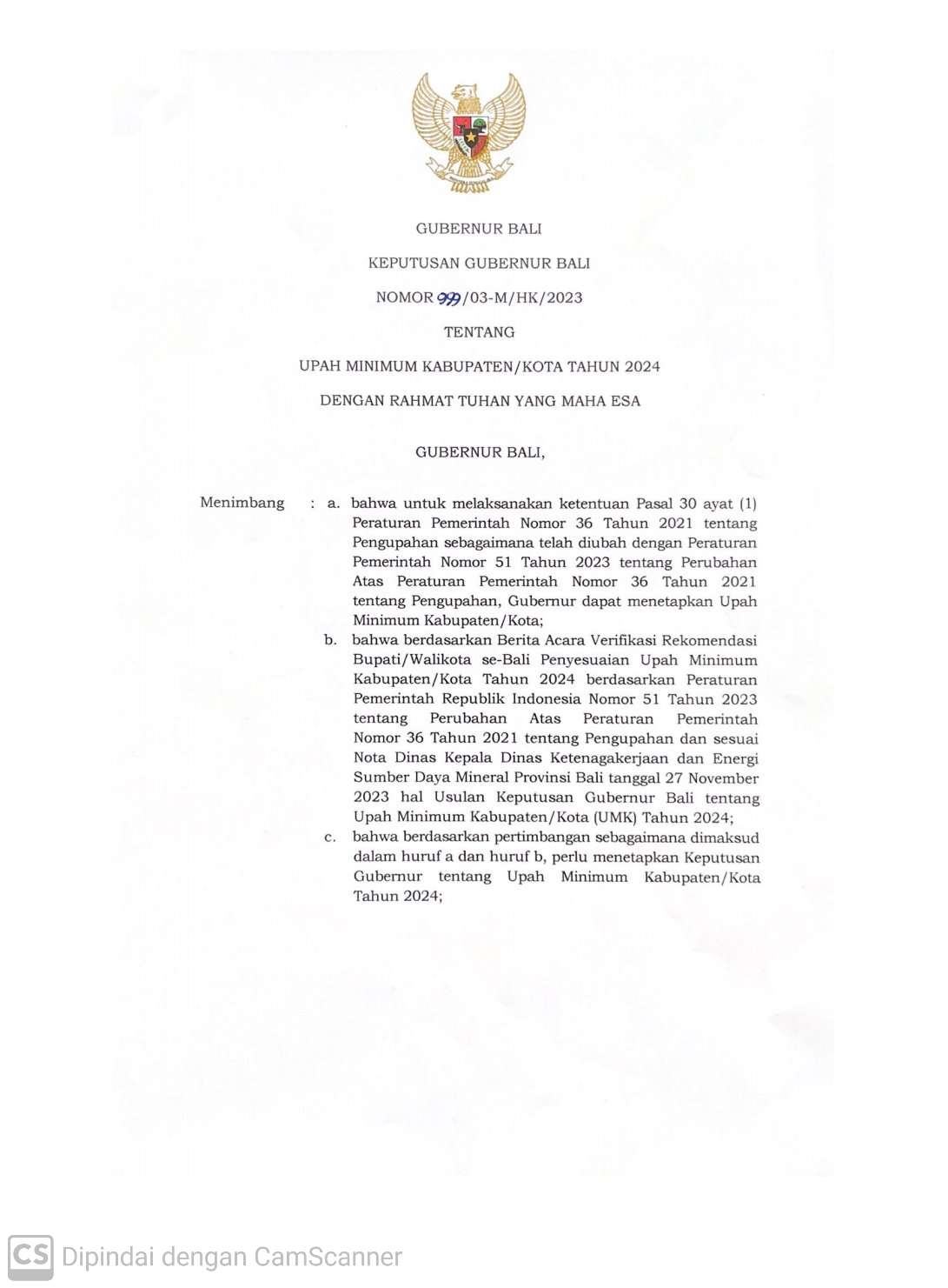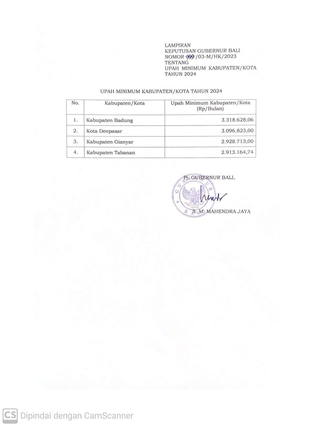 Pengumuman Upah Minimum Kabupaten/Kota Tahun 2024 Di Provinsi Bali