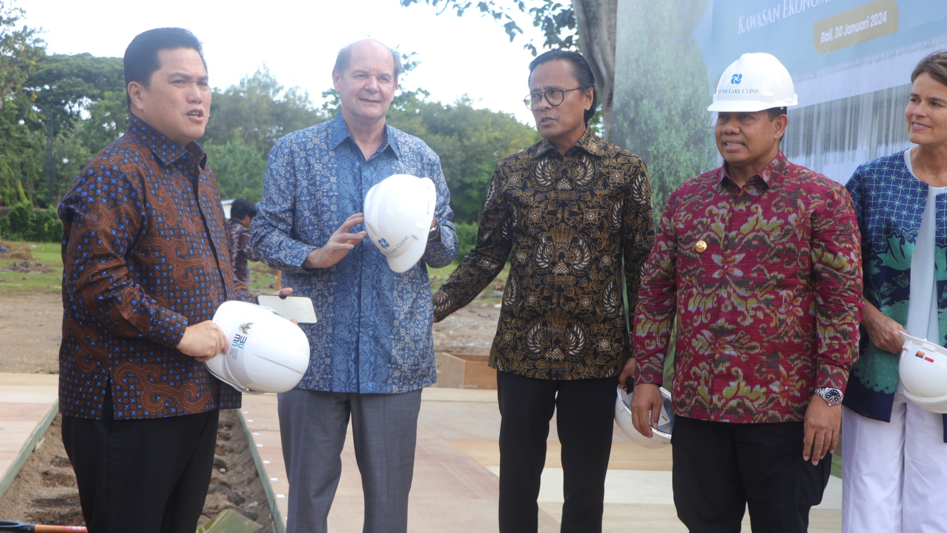 DENPASAR - Penjabat (PJ) Gubernur Bali S.M Mahendra Jaya bersama Menteri Badan Usaha Milik Negara (BUMN) Erick Thohir, Founder of Alster Lake Clinic Fred Fandrich, Direktur Utama InJourney Dony Oskaria serta undangan terkait lainnya menghadiri dan turut melaksanakan Peresmian Bali Beach Convention dan Groundbreaking Alster Lake Clinic di Kawasan Ekonomi Khusus (KEK) Kesehatan Sanur, pada Selasa (30/1).