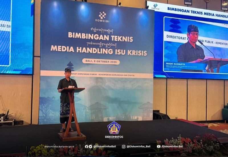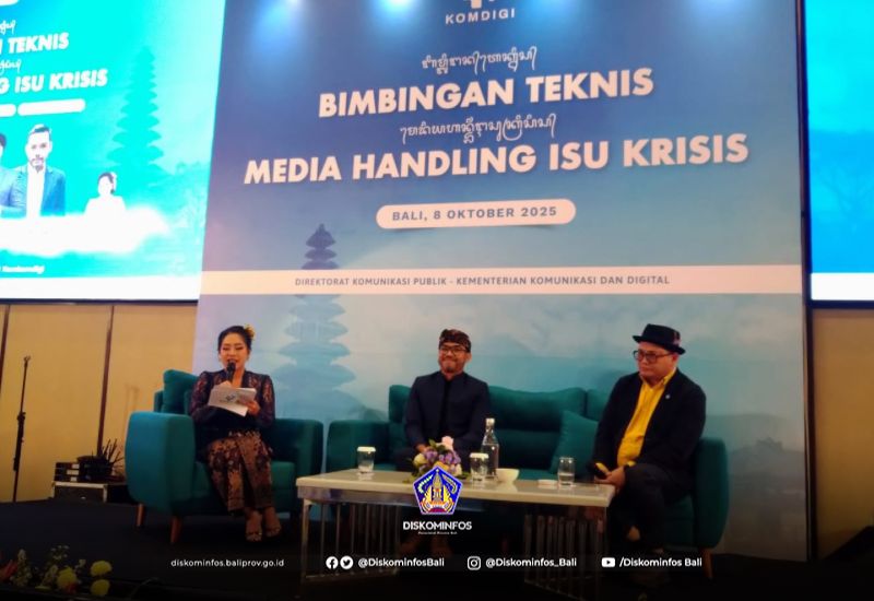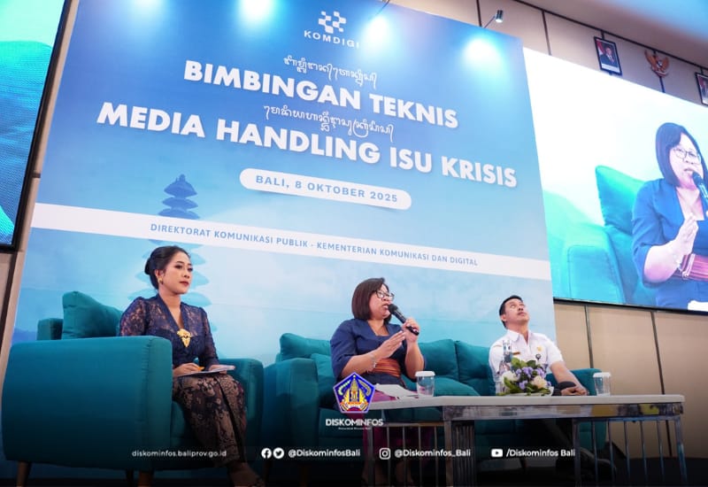 Kuta, Badung – Pemerintah Provinsi Bali melalui Dinas Komunikasi, Informatika, dan Statistik (Diskominfos) bersama Direktorat Komunikasi Publik, Kementerian Komunikasi dan Digital (Komdigi), memperkuat sinergi penanganan isu dan komunikasi krisis. Kolaborasi ini diwujudkan melalui Bimbingan Teknis (Bimtek) Pengelolaan Komunikasi Krisis yang digelar di Hotel Aryaduta Bali, Kuta, pada Rabu, 8 Oktober 2025.