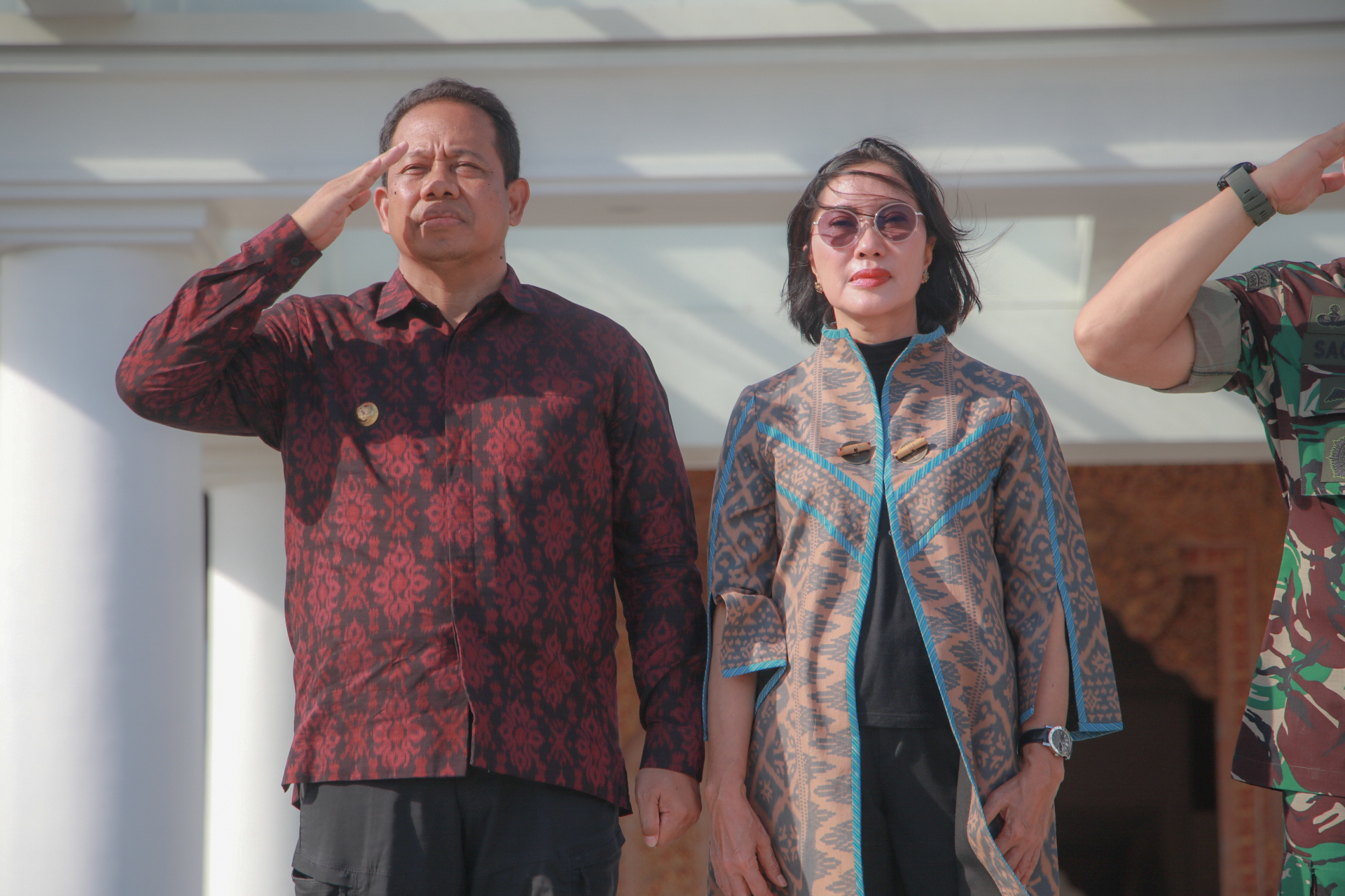 Pj. Gubernur Bali S. M. Mahendra Jaya didampingi Ny. drg. Ida Mahendra Jaya melepas keberangkatan Ibu Wapres RI Ny. Wury Ma’ruf Amin, di landasan Terminal VVIP Kreta Nhawana Sanggraha Bandara Internasional I Gusti Ngurah Rai, Tuban, Badung, Rabu (Buda Umanis, Dukut) 6 Desember 2023.