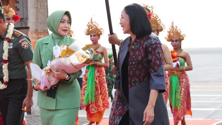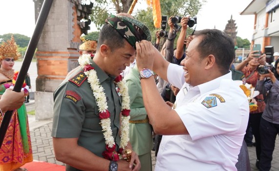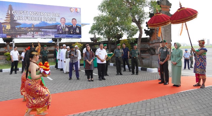 Upacara penyambutan diawali dengan pemakaian udeng oleh Pj. Gubernur Bali kepada Pangdam IX/ Udayana dan pemakaian selendang kepada Ketua Persit KCK Daerah IX/ Idayana oleh Ny. Ida Mahendra Jaya.