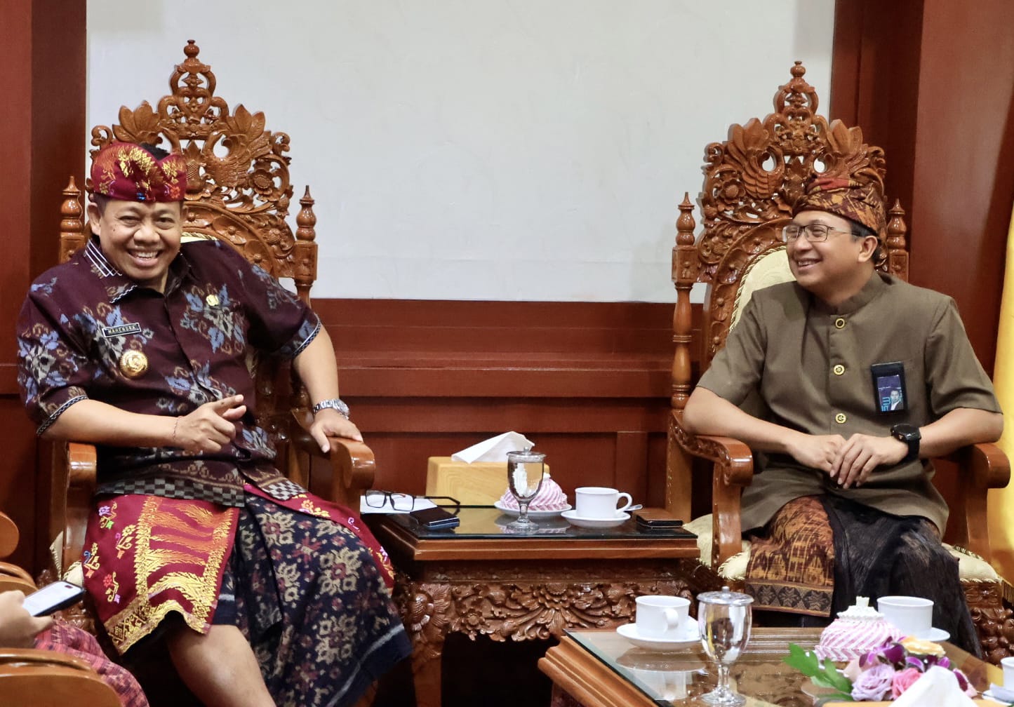 DENPASAR - Mewujudkan Bali yang seimbang, cerdas, sejahtera, bebas dari kemiskinan dan stunting, sekaligus Bali yang tertata tidak mampu dikerjakan sendiri tanpa sinergitas pihak lain. "Sinergitas antara pemerintah dengan pihak swasta, BUMN, BUMD dan masyarakat adalah kekuatan nyata yang dapat mewujudkannya. Saya ditugaskan oleh pusat untuk membangun Bali beberapa bulan ke depan. Sehingga sudah menjadi kewajiban saya untuk bekerjasama dengan banyak pihak dalam mewujudkan kesejahteraan masyarakat Bali, terutama menyentuh kemiskinan dan stunting, karena seperti yang kita ketahui bersama bahwa semua makhluk yang hidup diatas bumi berhak untuk hidup layak dan sejahtera. Dan kita pemerintah wajib hadir di tengah mereka, termasuk hadir sebagai penyedia layanan informasi dan jaringan yang bermanfaat untuk mempermudah teknologi informasi, sehingga tumbuh generasi yang cerdas dan berkualitas sekaligus siap bersaing menggenggam dunia,” tegas Penjabat Gubernur Bali S.M Mahendra Jaya saat menerima audiensi dari General Manager Witel Denpasar - PT. Telkom Indonesia Bali, Ismono Adi Jatmiko dan rombongan, di Ruang Tamu Gubernur Bali, Kamis, Wraspati Kliwon-Menail (26/10).