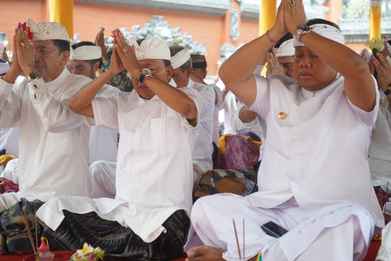 Pj. Gubernur Bali mengikuti persembahyangan bersama warga setempat, yang dipimpin Pemangku setempat. Seusainya, S.M Mahendra Jaya jugaberkesempatan melaksanakan penandatanganan prasasti pengeling - eling.