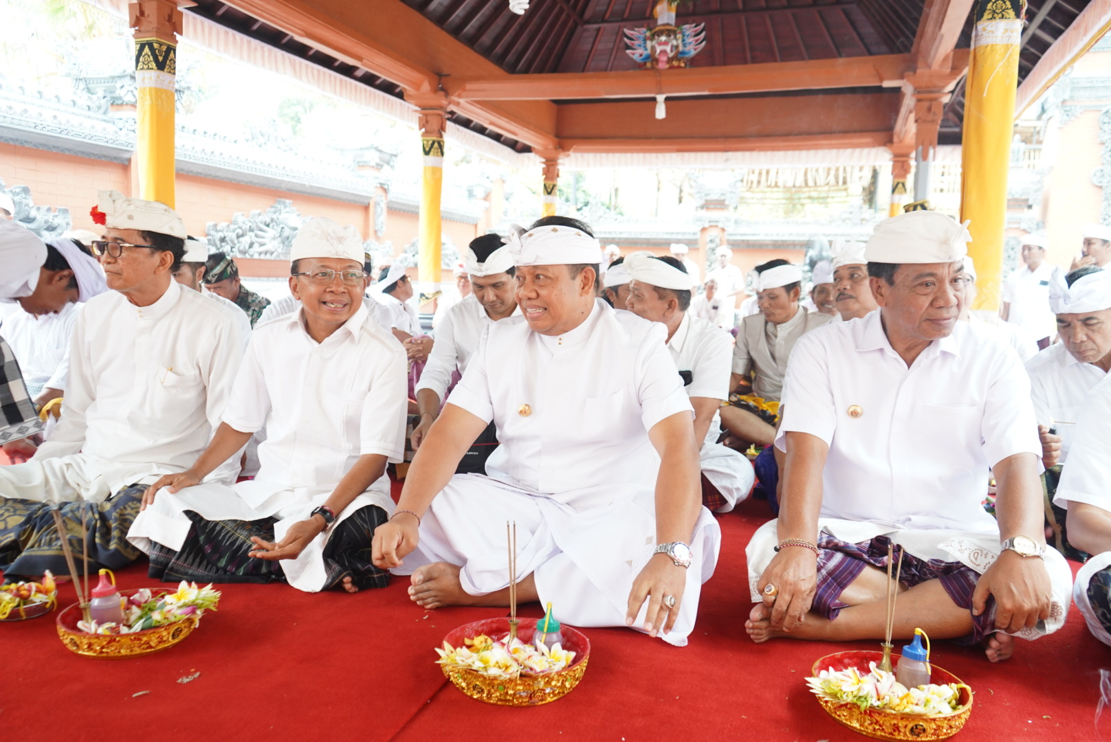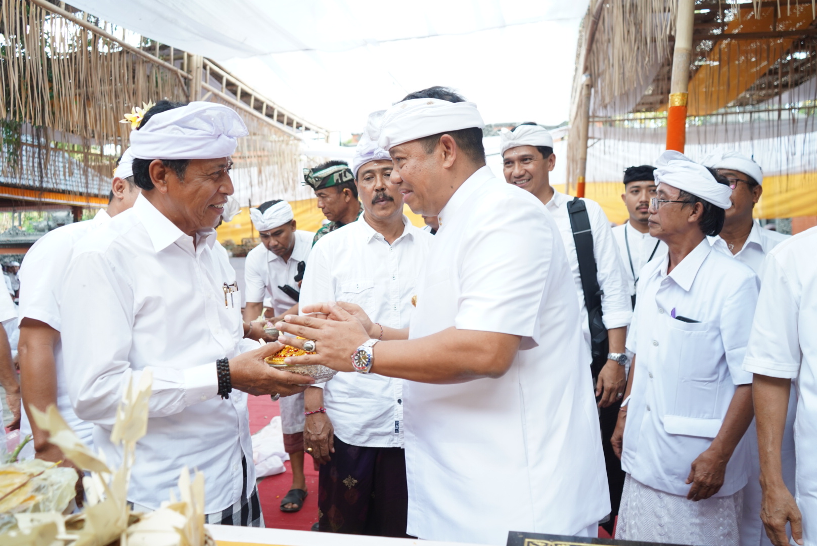 Buleleng - Pj. Gubernur Bali Sang Made Mahendra Jaya menghadiri Upacara Karya Melaspas Mupuk Pedagingan Ngenteg Linggih di Pura Dalam Desa Adat Bondalem, Tejakula, Buleleng, Sabtu (Saniscara Kliwon, Wayang) 25 November 2023, yang bertepatan dengan rahinan Tumpek Wayang.