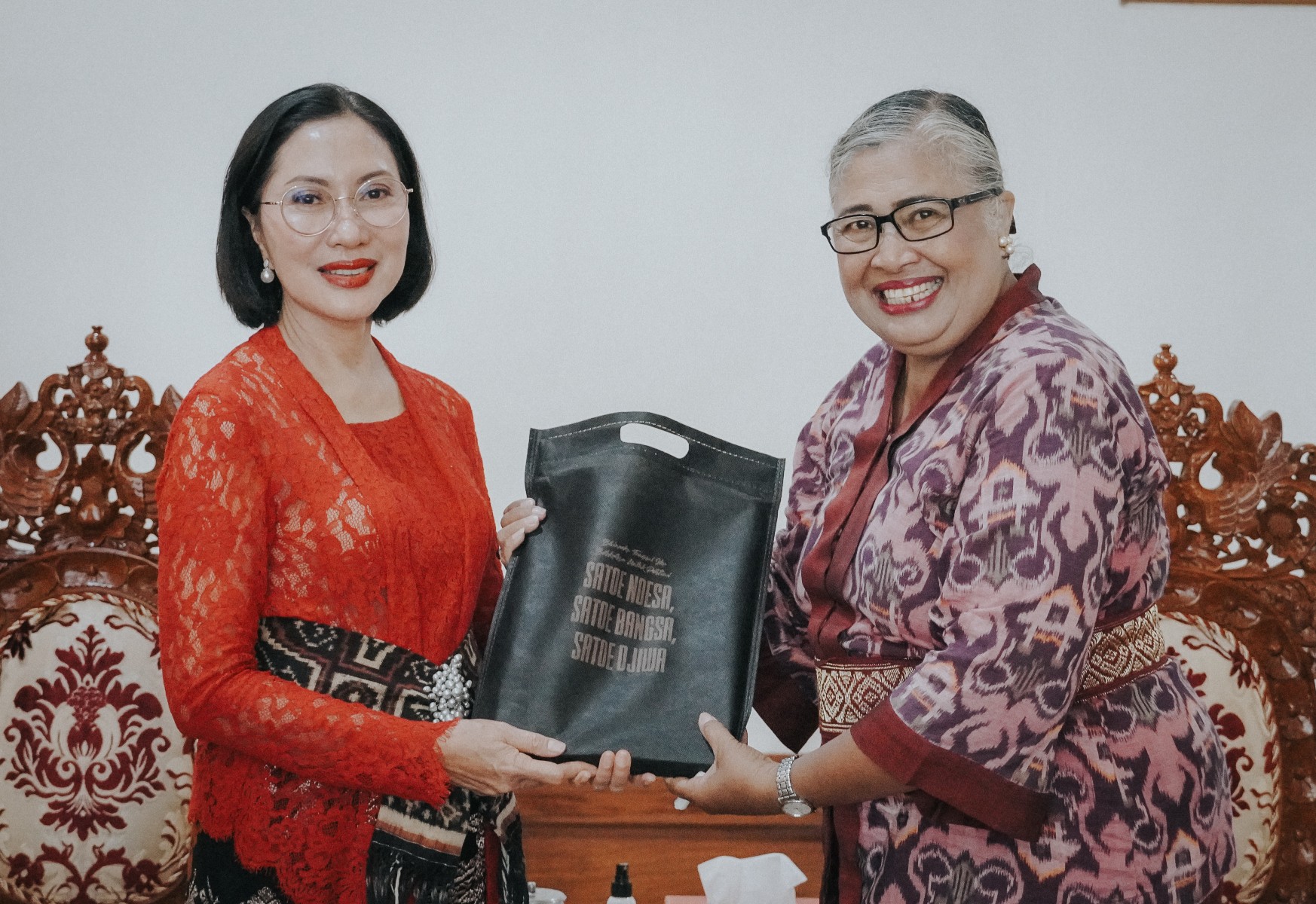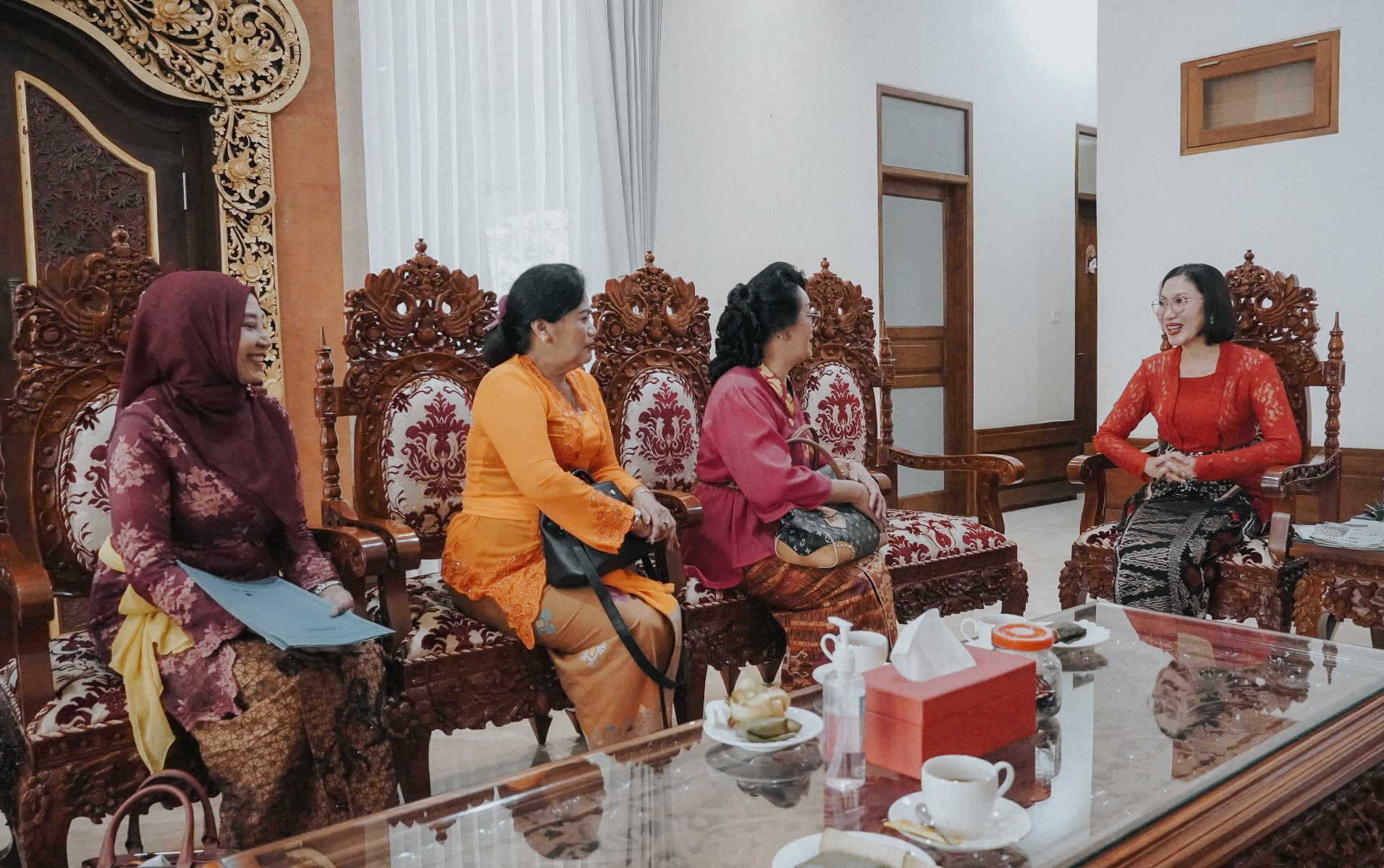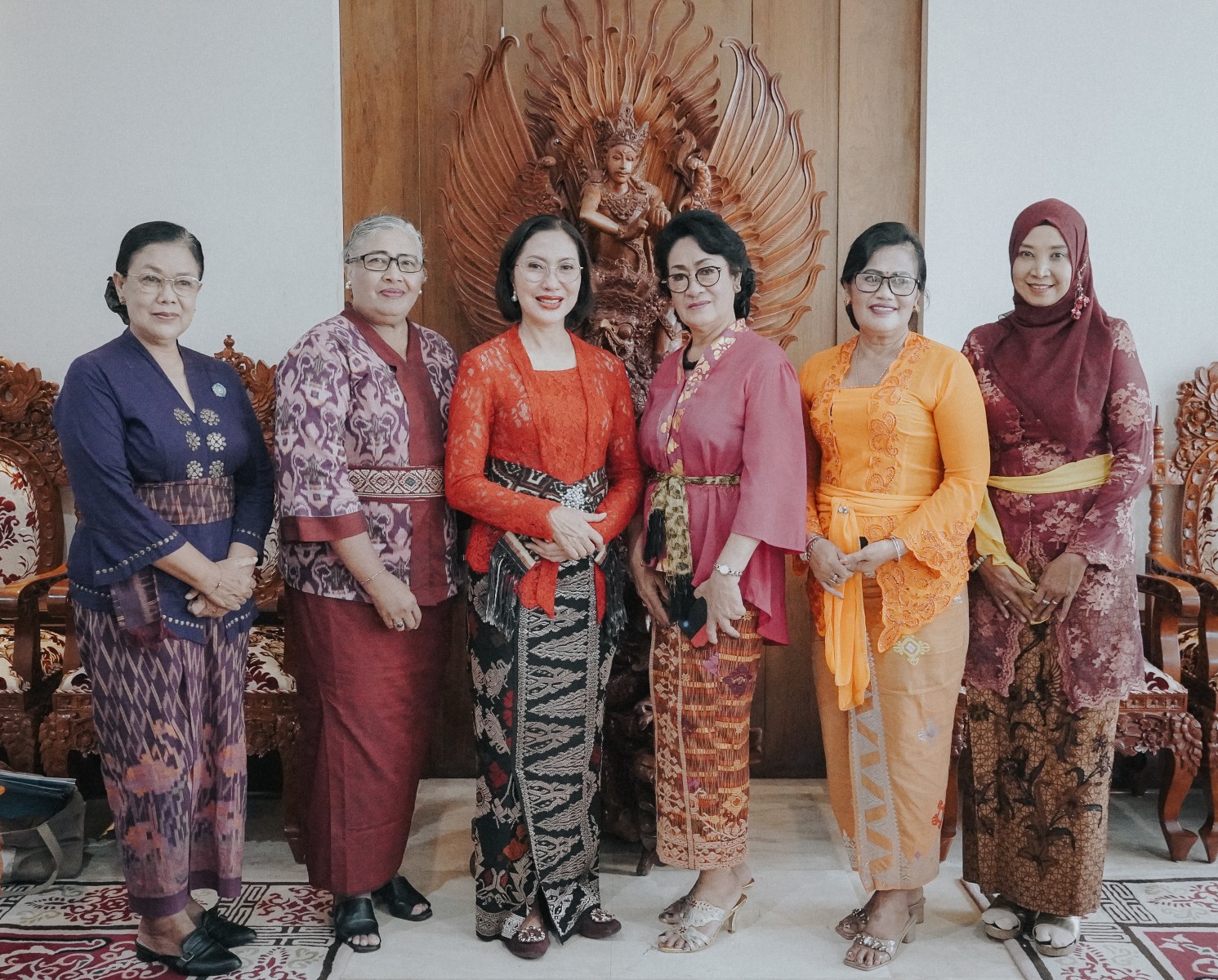 Pj. Ketua TP PKK Prov Bali Ny. drg. Ida Mahendra Jaya menerima audiensi dari New Aksi Pesona Bintang yang diketuai oleh Ni Made Lily Wiryani, bertempat di Kediaman Gubernur Bali, Jaya Sabha, di Denpasar pada Kamis (7/12).
