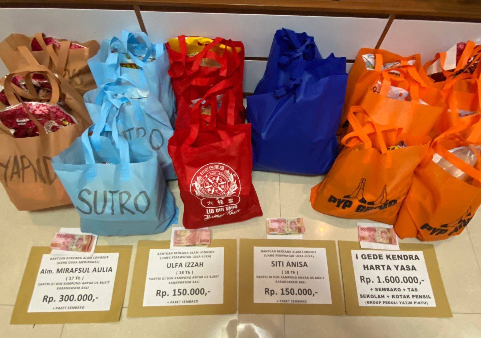 Jumat 8 Desember 2023. Badan Kesatuan Bangsa dan Politik (Kesbangpol) Provinsi Bali, kembali laksanakan kegiatan Karya Bhakti Sosial di Pos Terpadu NGROMBO Badan Kesbangpol Bali dengan mengajak Organisasi Kemasyarakatan di Provinsi Bali. Kegiatan yang rutin dilaksanakan setiap hari jumat ini, saat ini merupakan kegiatan yang ke-30 kalinya dan untuk jumat ini kegiatan yang dilaksanakan seperti pemeriksaan kesehatan, pijat, cukur gratis dan pembagian sembako utk warga tak mampu lemah ekonomi. pembagian sembako tidak hanya dilaksanakan di Badan Kesbangpol saja, melainkan juga ke Desa Bukit Karangasem menyerahkan Bantuan Uang Duka dan Luka-luka bagi Korban Bencana Longsor di Pondok Pesantren Setempat, bantuan kepada korban kebakaran rumah tinggal, menyerahkan bantuan Uang Sekolah + Tas + Sembako kepada anak yatim piatu di Desa Tumbu Karangasem, Menyerahkan 10 Paket Sembako kepada 10 warga masyarakat Desa Nongan Karangasem Bali.