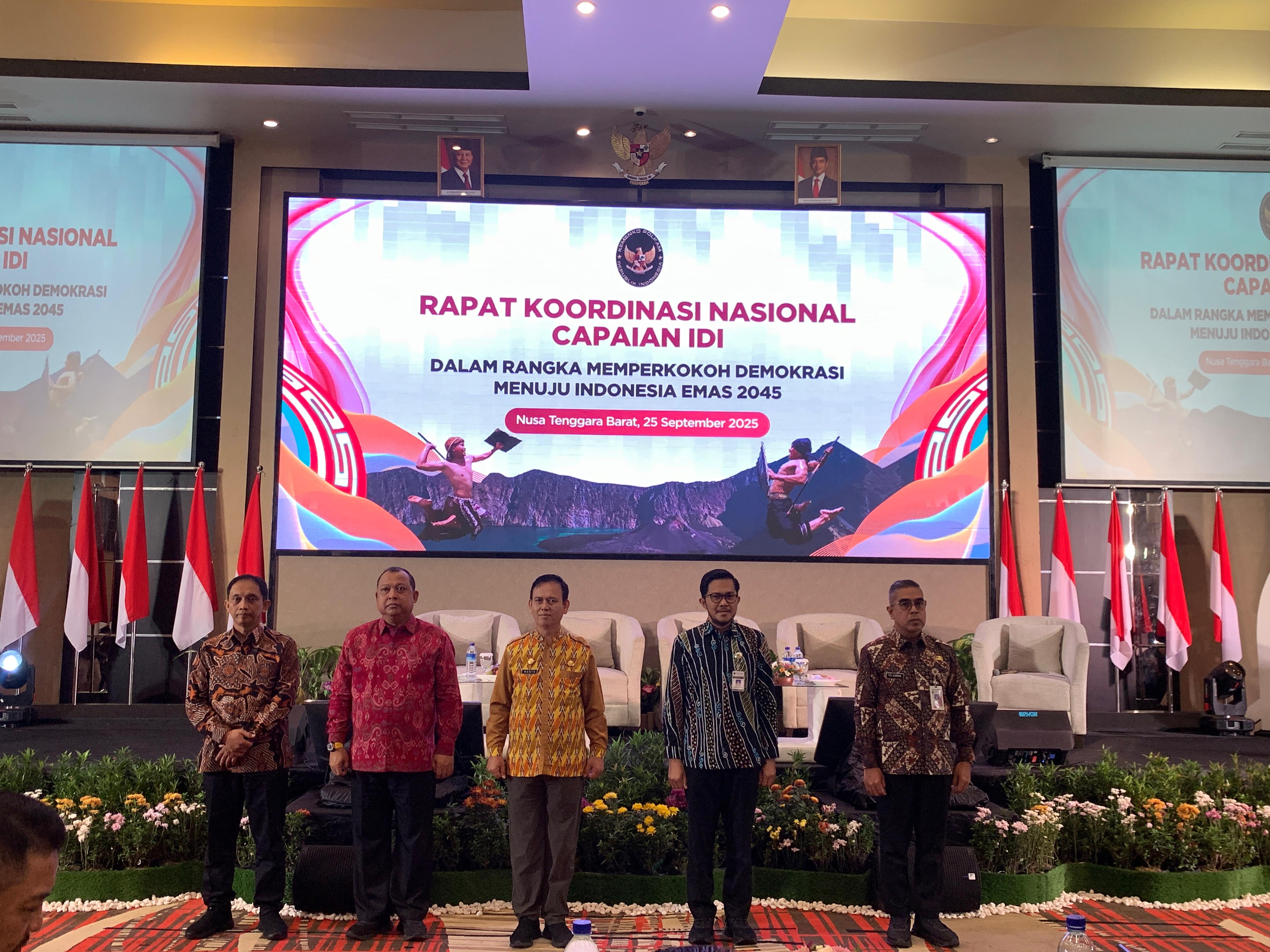 Kamis, 25 September 2025. Kepala Badan Kesatuan Bangsa dan Politik (Kaban Kesbangpol) Provinsi Bali, Gede Suralaga mewakili Sekretaris Daerah ikuti Acara Rapat Koordinasi Nasional Capaian Indeks Demokrasi Indonesia (IDI) Dalam Rangka Memperkokoh Demokrasi Menuju Indonesia Emas 2045 sekaligus menerima Penghargaan Indeks Demokrasi Indonesia (IDI) untuk Provinsi Bali terbaik ke-2 Tahun 2024 bertempat di Garuda Ballroom, Golden Palace Hotel Lombok, Mataram, Nusa Tenggara Barat