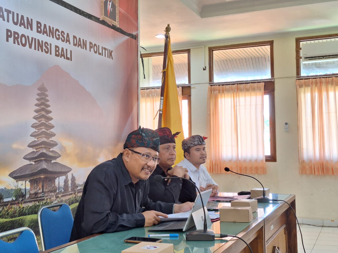 Kamis, 10 Agustus 2023, Badan Kesatuan Bangsa dan Politik (Kesbangpol) Provinsi Bali laksanakan Rapat Final Peringatan HUT ke-78 Kemerdekaan RI Tahun 2023, bertempat di Ruang Rapat lantai 2 Badan Kesbangpol Provinsi Bali. Kepala Badan Kesbangpol, Ngurah Wiryanata menyampaikan agar semua turut mensukseskan Apel Kehormatan, Renungan Suci, Upacara Peringatan HUT ke-78 Kemerdekaan Republik Indonesia Tahun 20223 sampai dilaksanakannya Upacara Penurunan Bendera Merah Putih. Tampak hadir pada rapat kali ini Panglima Daerah Militer IX/Udayana; Kepala Kepolisian Daerah Bali; Komandan Resor Militer 163/Wira Satya; Komandan Pangkalan TNI Angkatan Laut Denpasar; Komandan Pangkalan TNI Angkatan Udara I Gusti Ngurah Rai; Komandan Distrik Militer 1619/Tabanan; Komandan Rindam IX/Udayana; Kepala Kepolisian Resor Tabanan; Kepala Kantor Wilayah Kementerian Agama Provinsi Bali; serta Organisasi Perangkat Daerah Provinsi Bali, Kota Denpasar dan Kabupaten Tabanan.